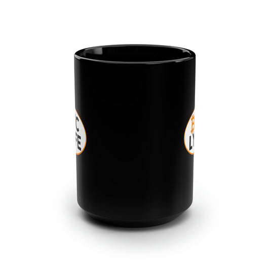 Bitcoin LYFE (Oval) Black Mug, 15oz