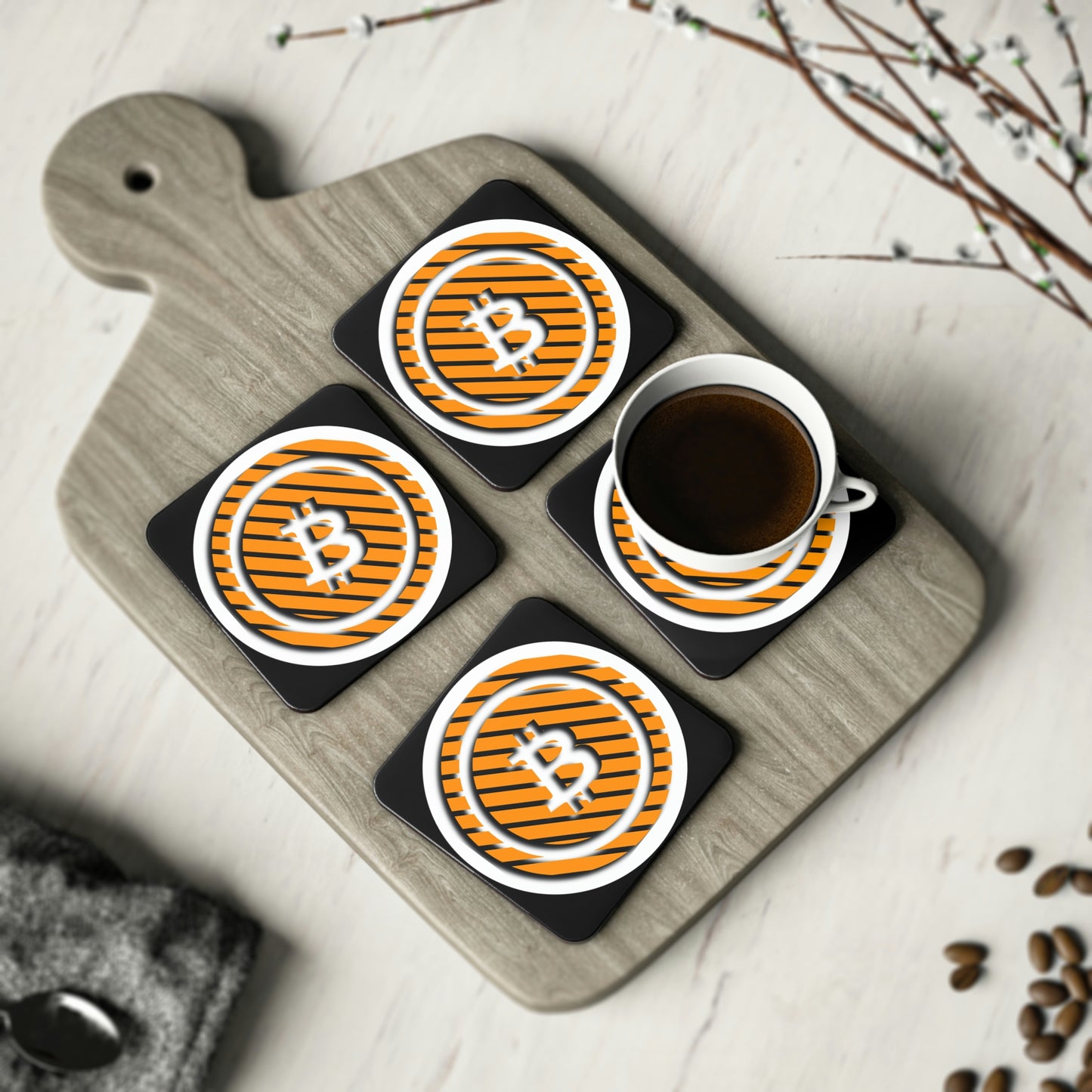 Who wouldn't want a set of Bitcoin coasters to use and have on display beneath you favorite beverages?!