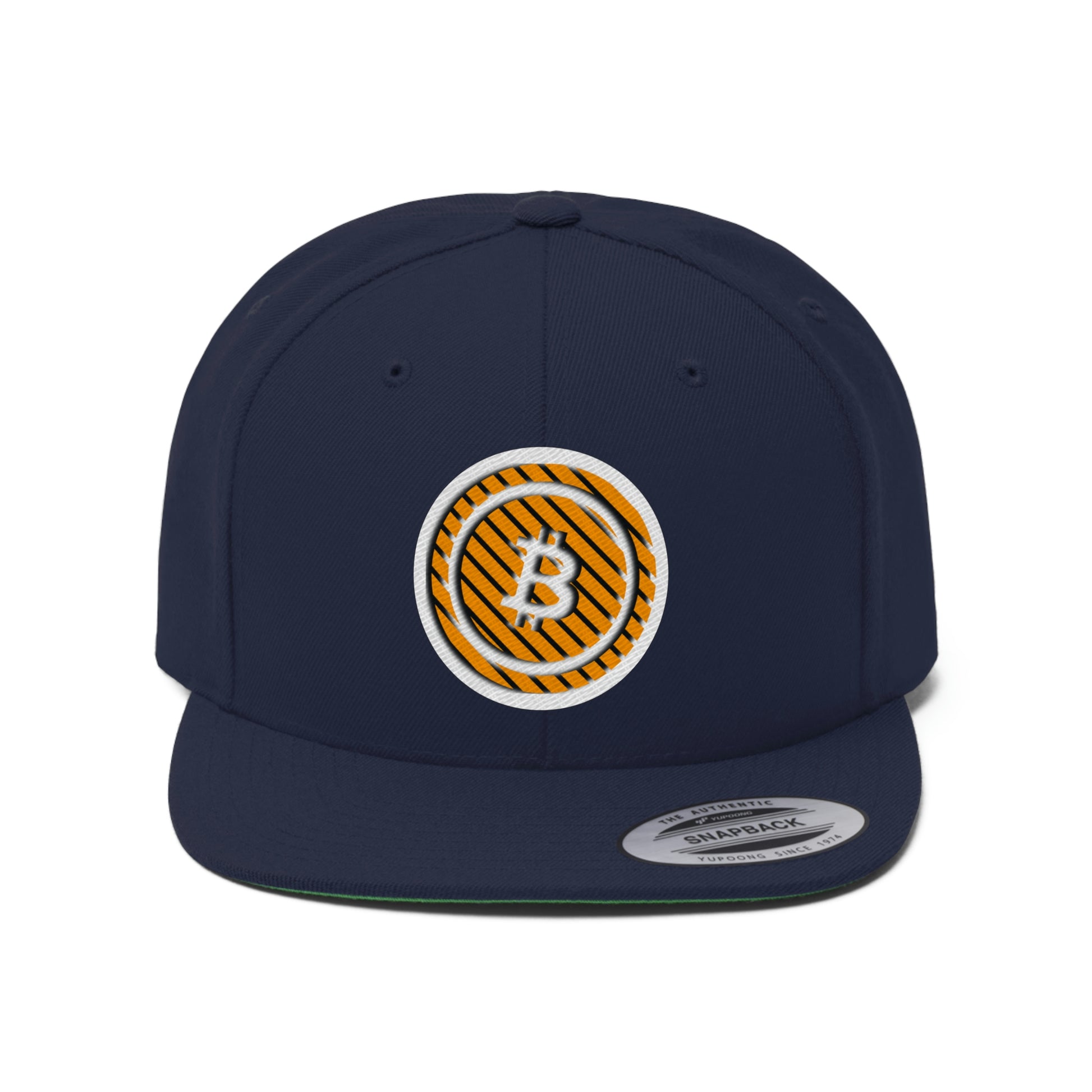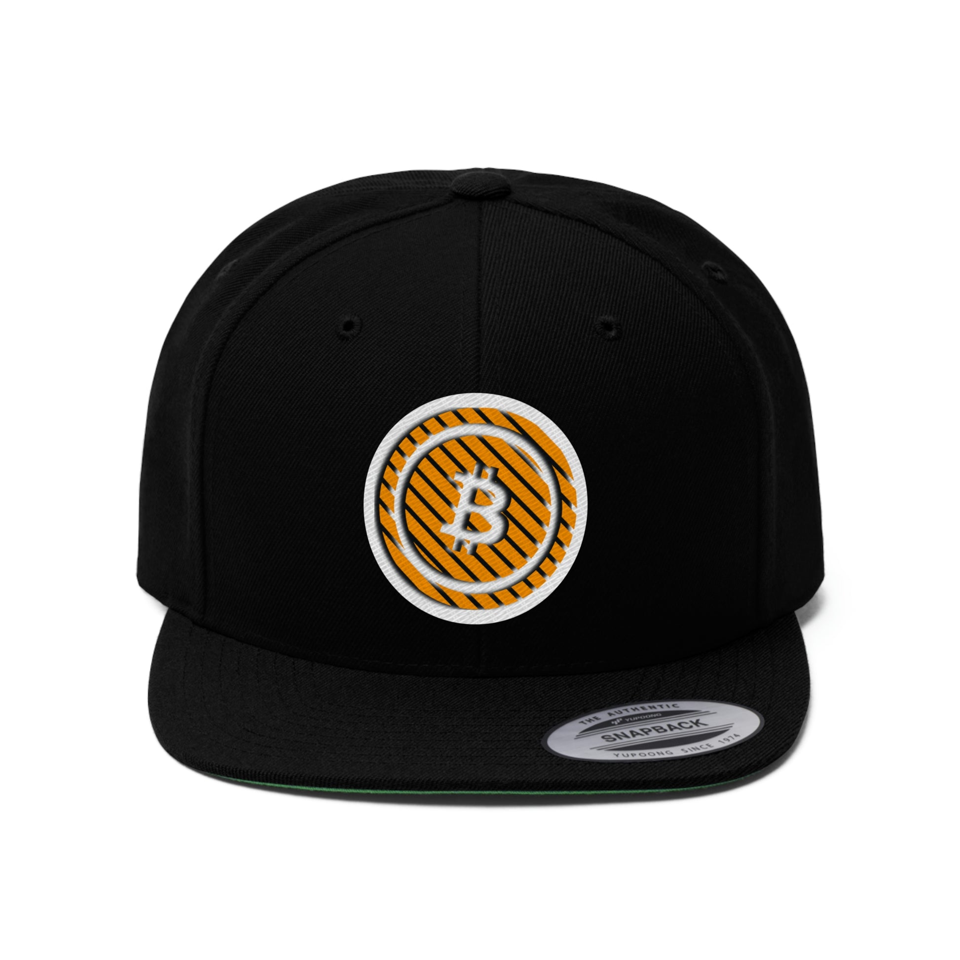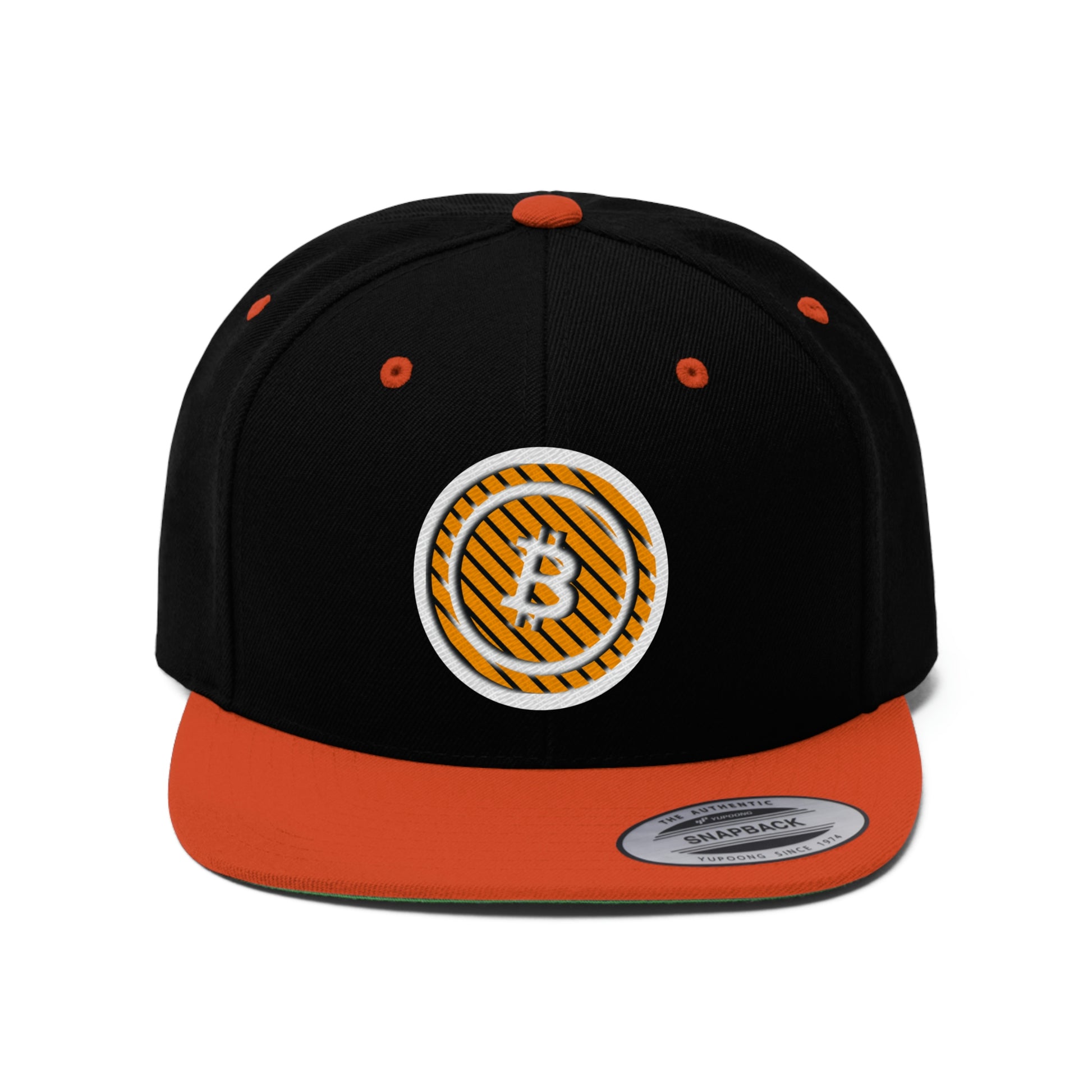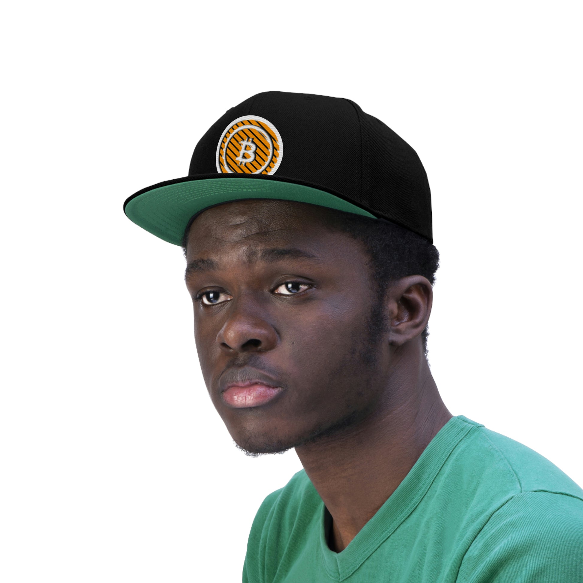 This Bitcoin 6-panel cap is a modern take on a classic design. This hat is the perfect choice thanks to its sharp styling, spirited color and lively green underbill. The old-school snapback closure and iconic flat bill add a subtle charm that takes you back to the good ol’ days ...with BTC laser eyes focused on the future. :-)
