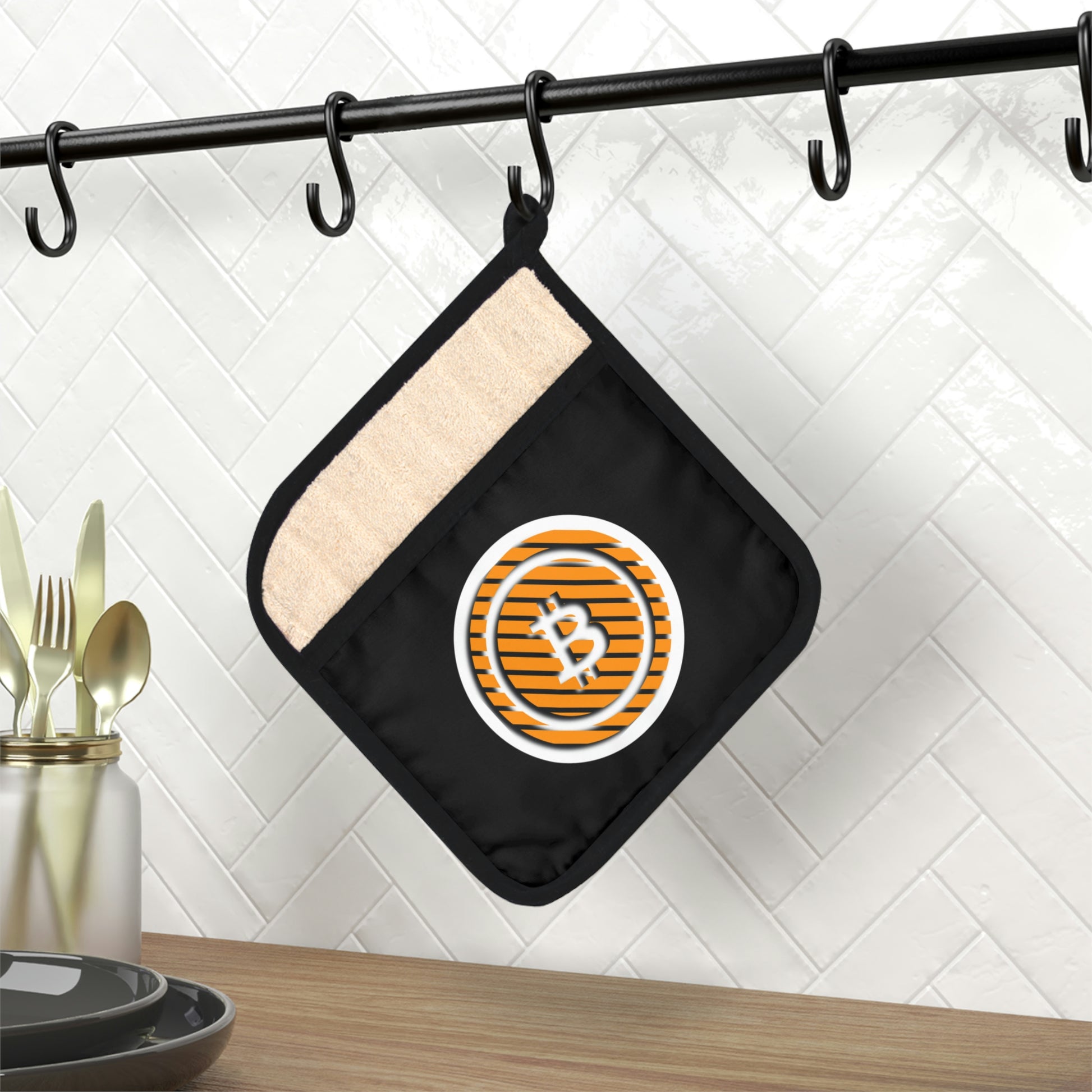 This Bitcoin pot holder was designed to be a stylish kitchen helper that ups any kitchen's decor with a custom flair. Measuring at 9x9 inches in size, it’s perfect for handling hot kitchen pots, or taking out oven trays thanks to its heat resistance of up to 350F. What’s more, the cotton hanging loop allows for convenient storage when not in use.