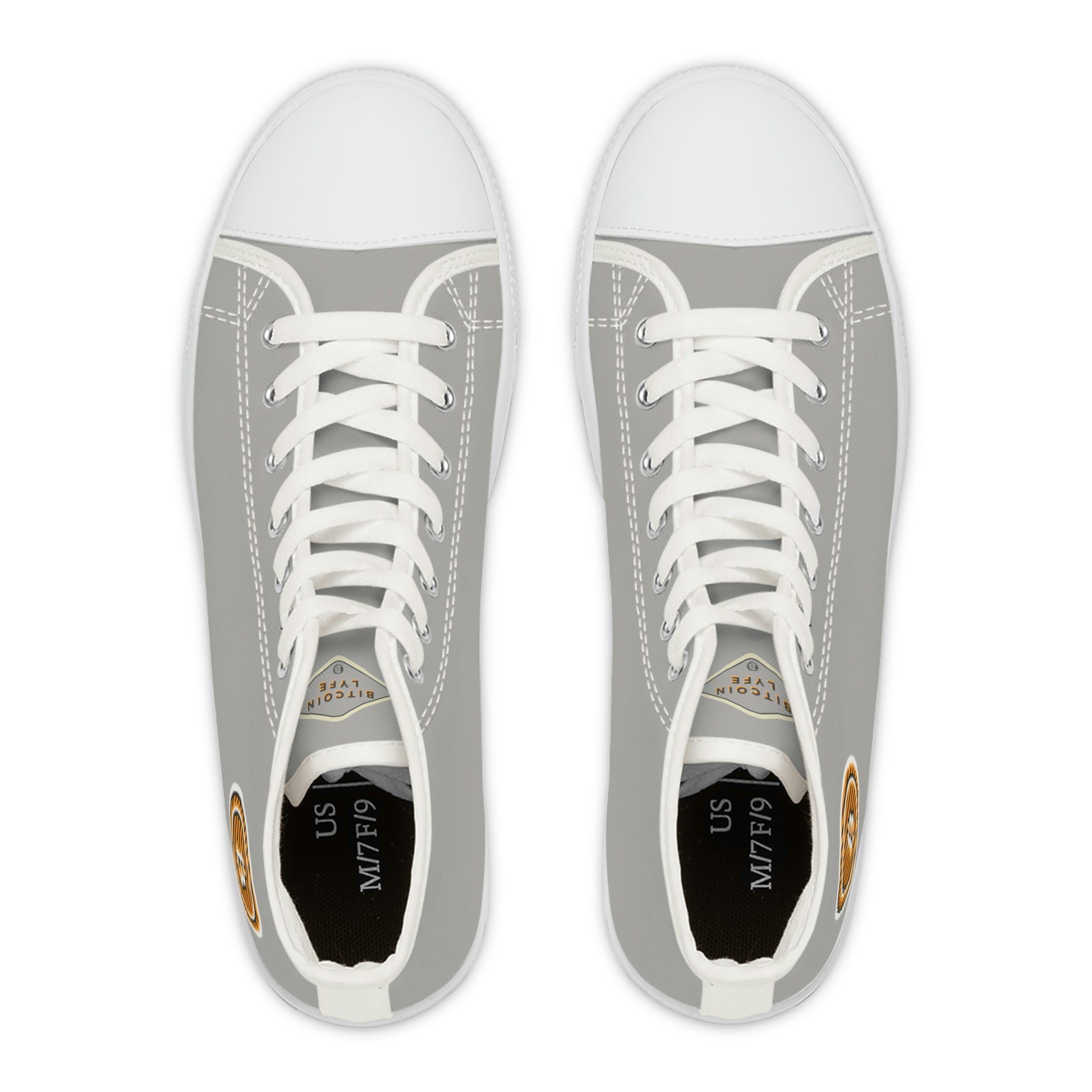 Made with breathable polyester canvas and featuring hi-poly deodorant memory foam insoles, these women's high top sneakers bear all the marks of an awesome shoe. Choose between black or white sole and laces, and enjoy the silver metal eyelets along with the lace-up closure. Add your designs and bring a bespoke staple to life.