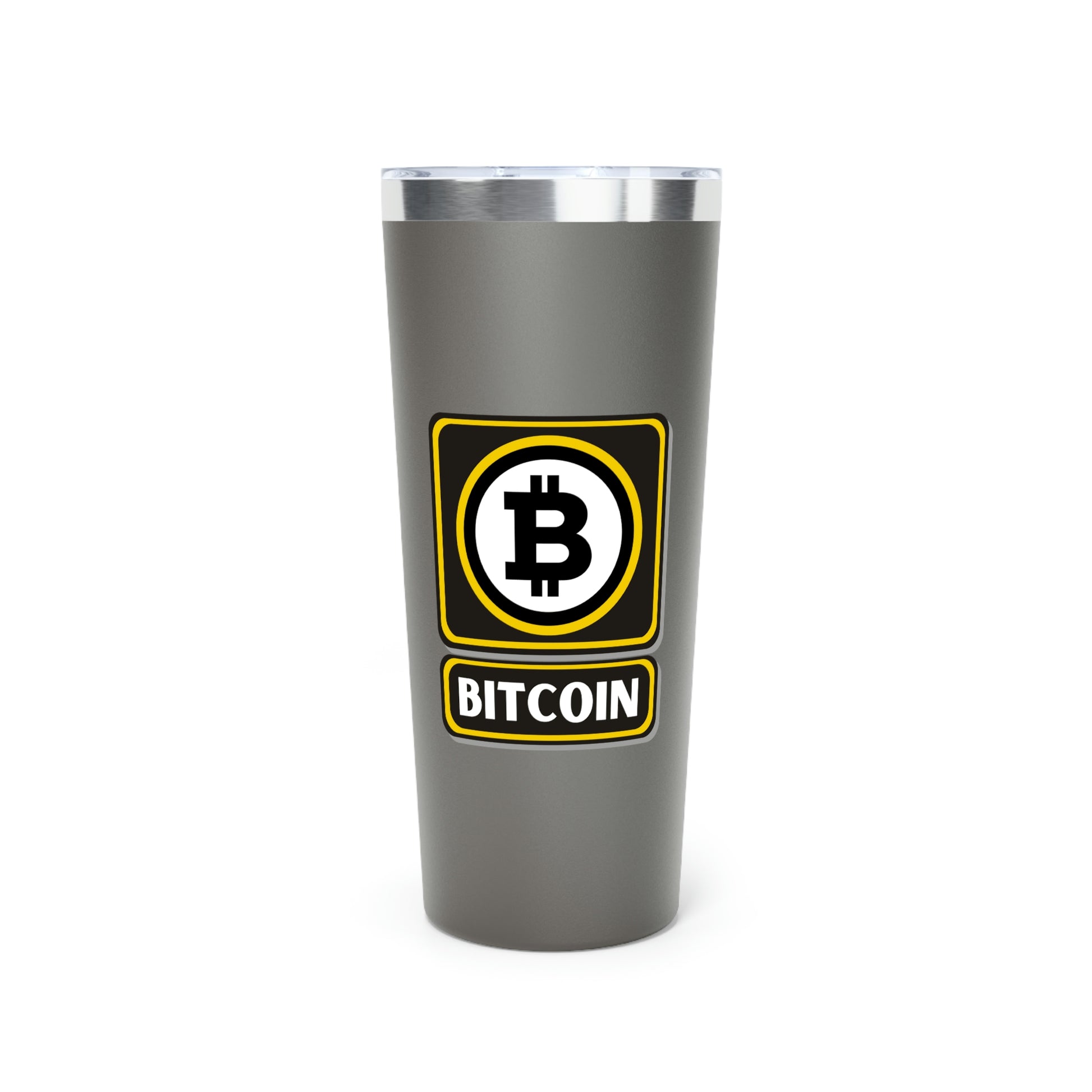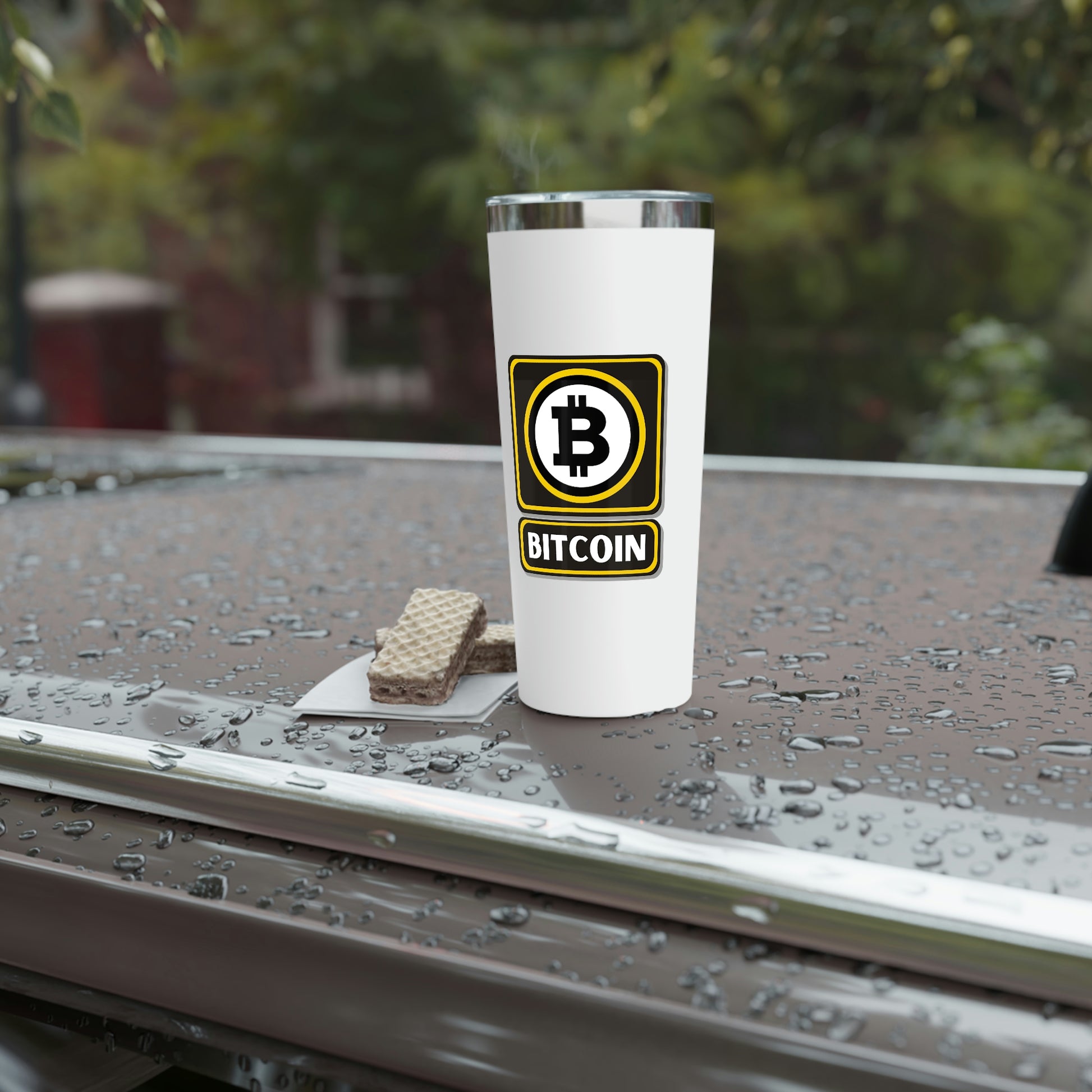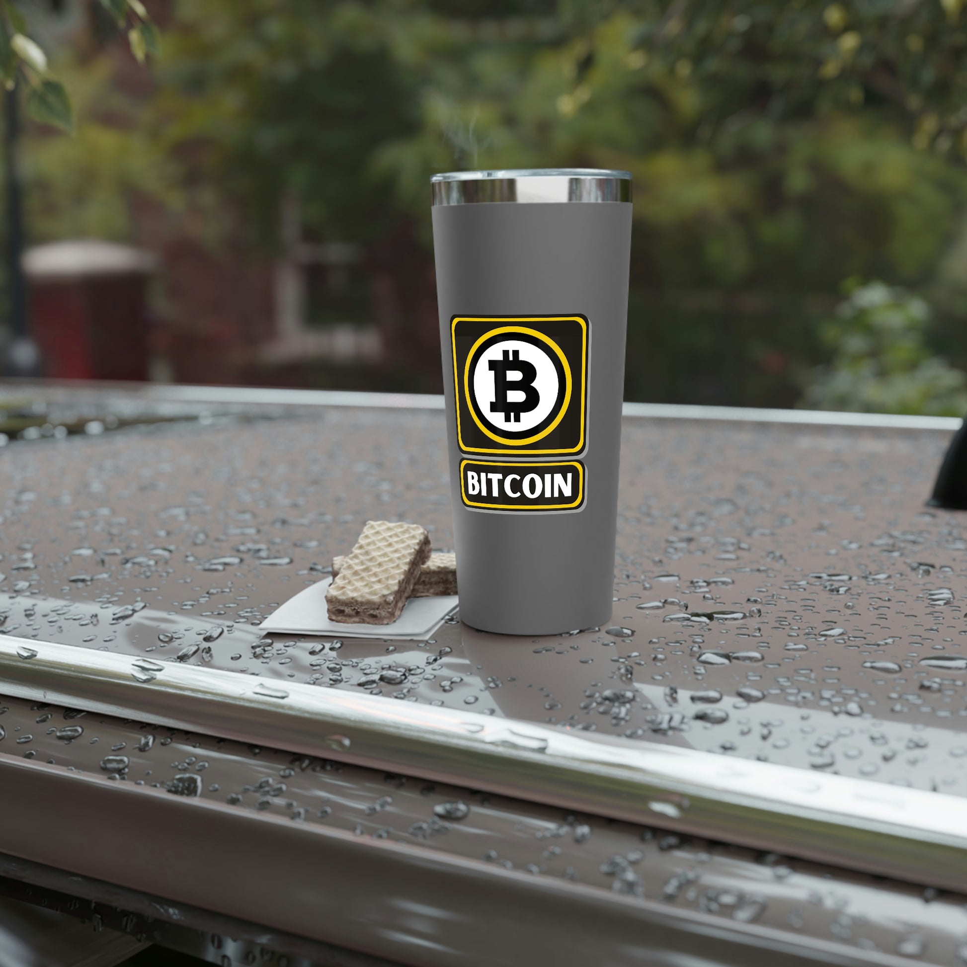 Stay hydrated in style on a daily basis with this Bitcoin tumbler. With a 22oz capacity and copper vacuum insulation, our tumbler keeps your favorite beverages refreshingly cold for 24 hours, and soothingly hot for up to 6. Its stainless steel exterior is condensation-resistant while the powder coating adds extra style points.