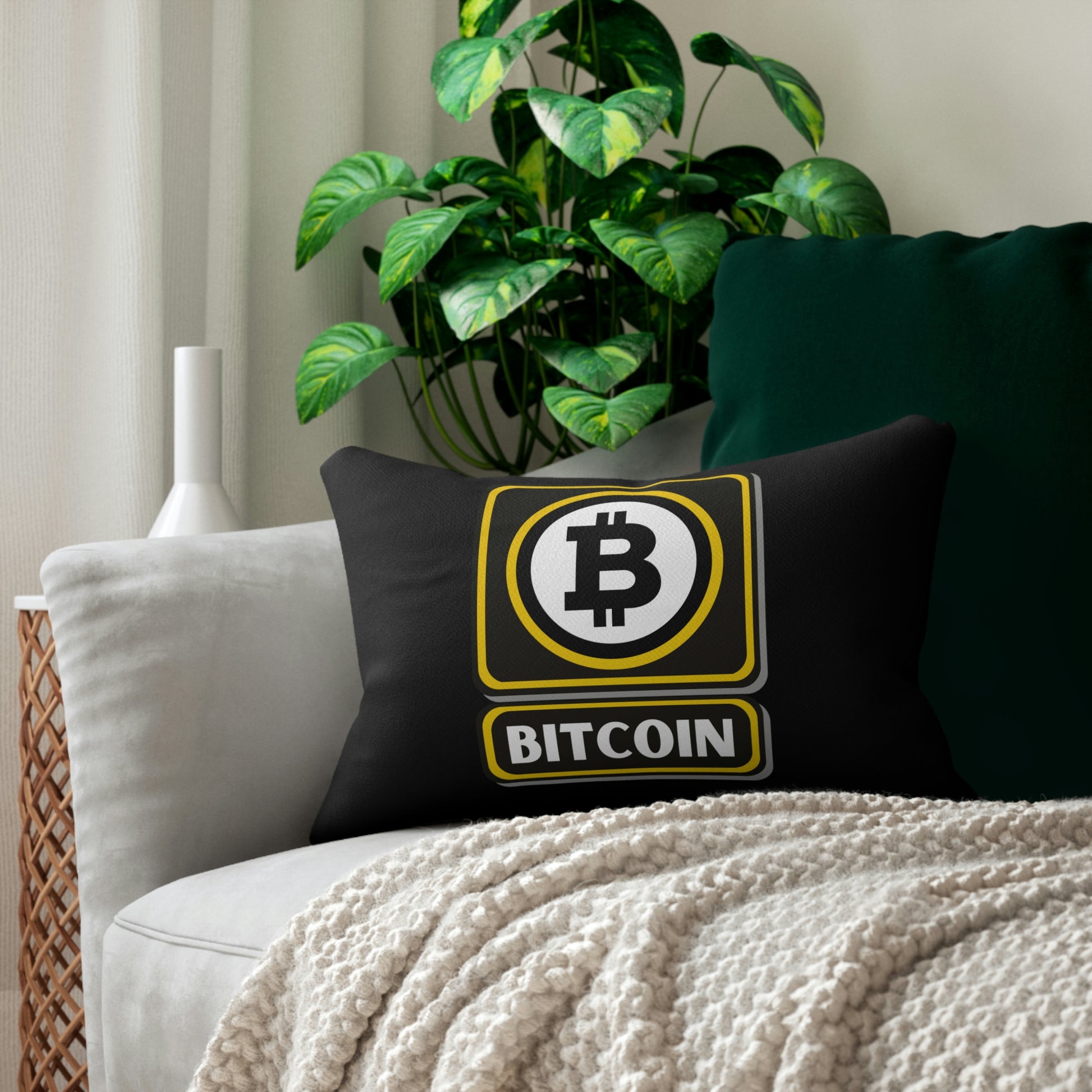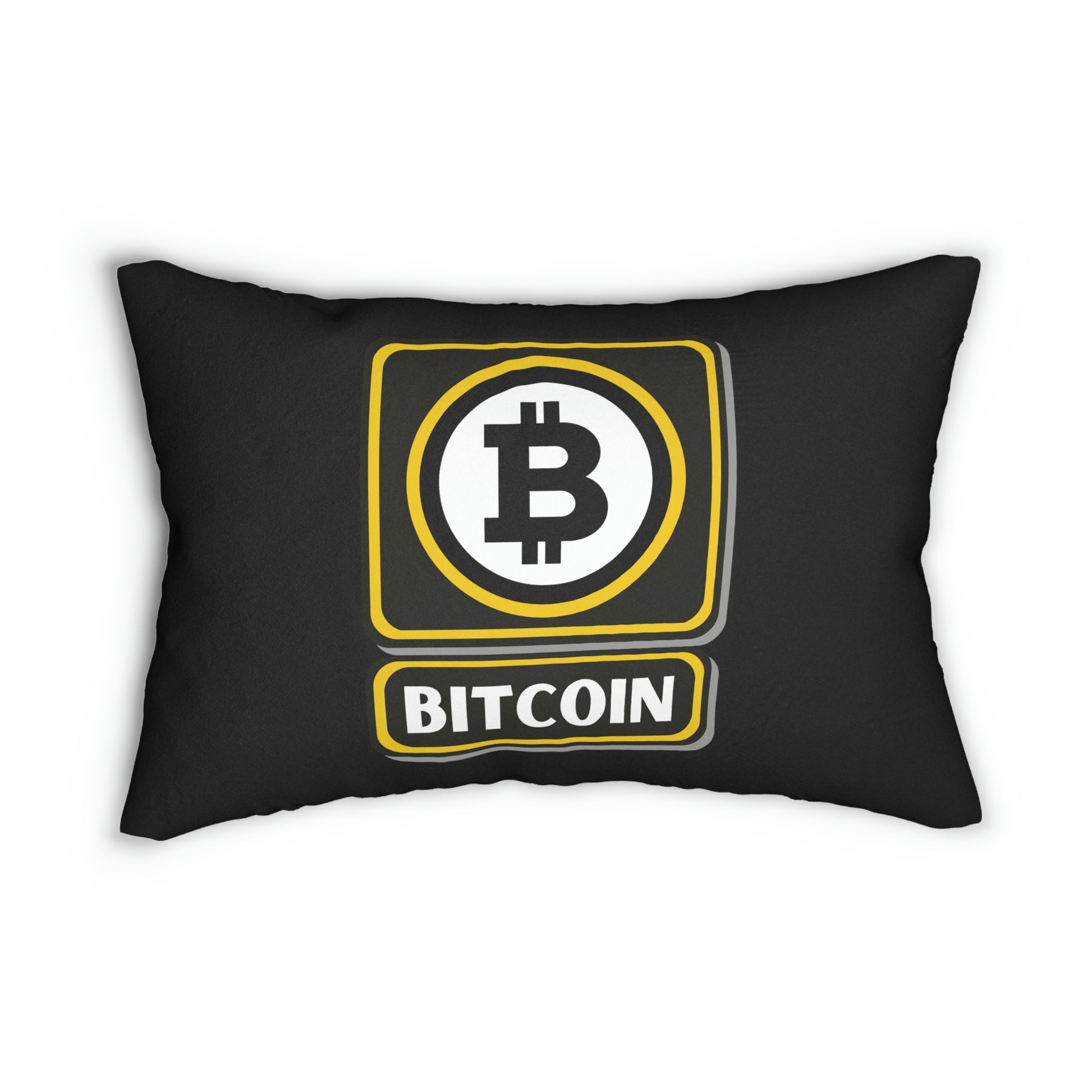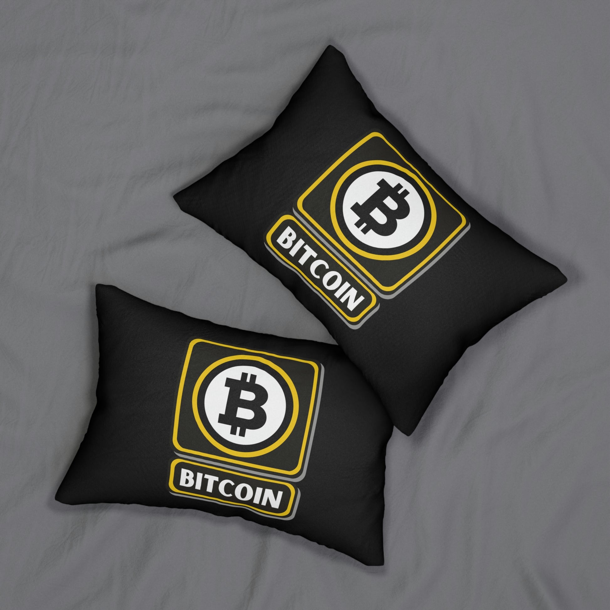 Add this beautiful spun-polyester Bitcoin lumbar pillow to your home decor pieces today. It comes with a stuffing pillow included. The casing is made of a spun polyester fabric that is inherently mildew and water-resistant. You can place your design on both sides or have a different design on each side. It has a hidden beige zipper to maintain a finished and stylish look.