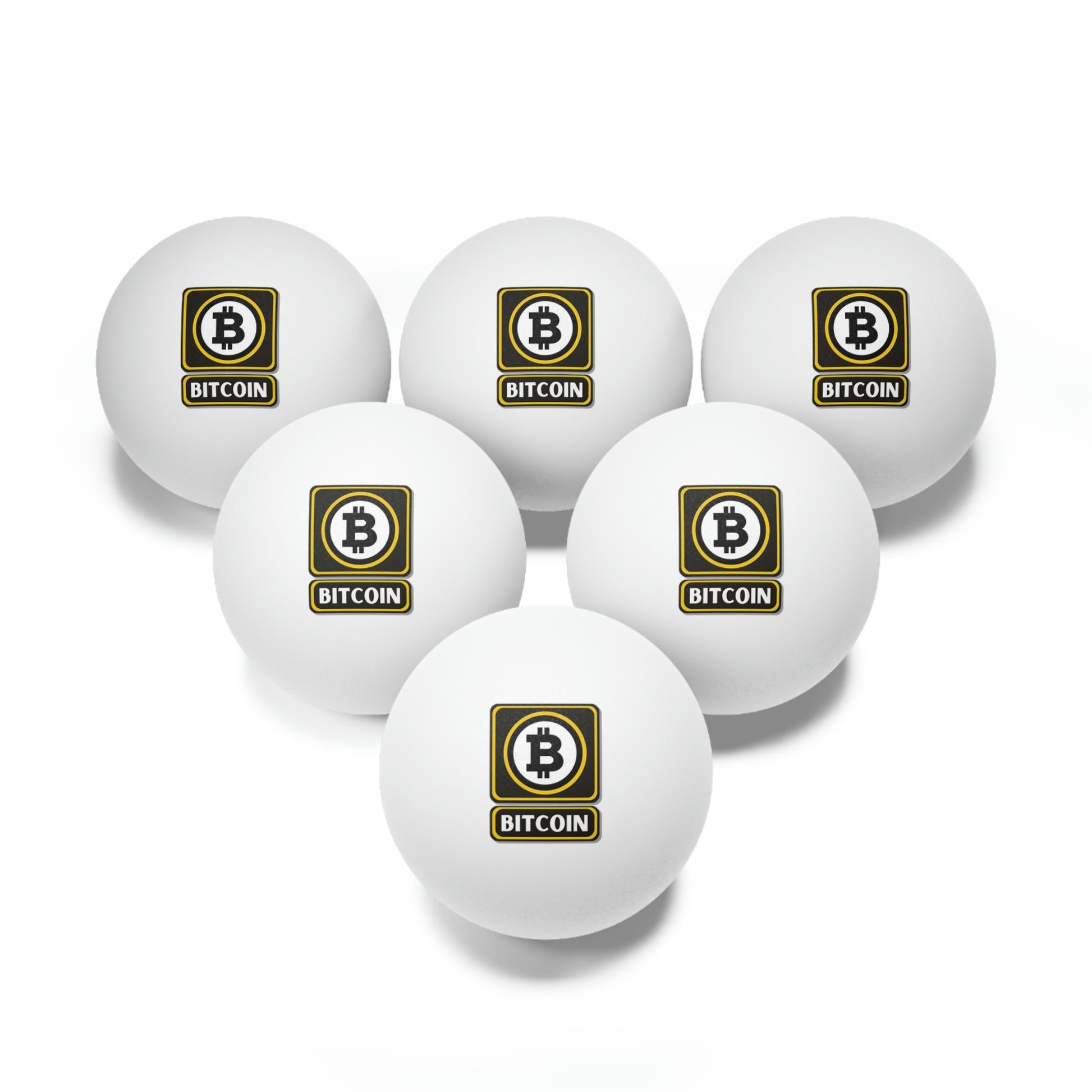 Ping pong games just got cooler, all thanks to these Bitcoin ping pong balls. Each set includes 6 ping pong balls. All balls measure in standard size (1.57") and are available in white or orange colors.