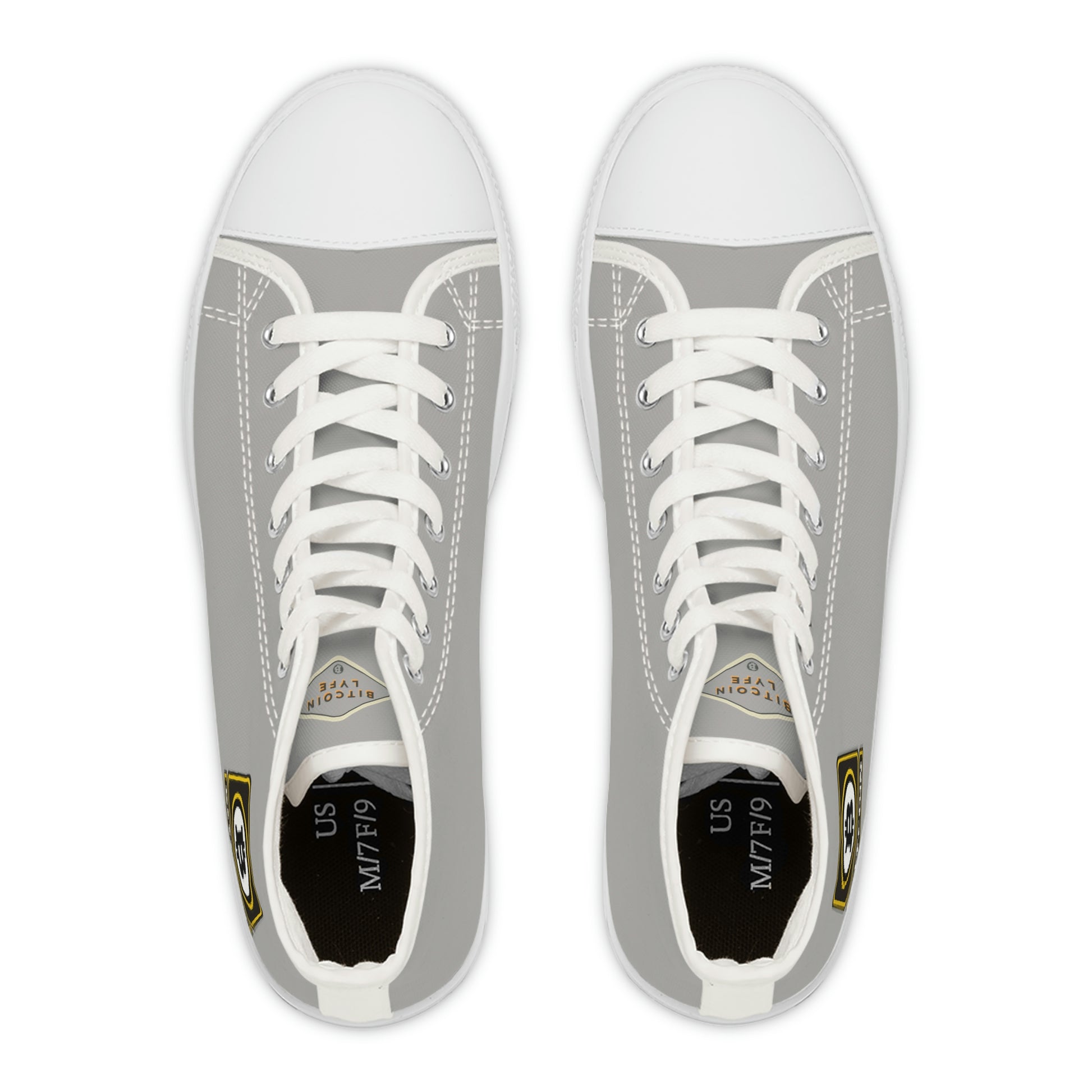 Made with breathable polyester canvas and featuring hi-poly deodorant memory foam insoles, these women's high top sneakers bear all the marks of an awesome shoe. Choose between black or white sole and laces, and enjoy the silver metal eyelets along with the lace-up closure. Add your designs and bring a bespoke staple to life.