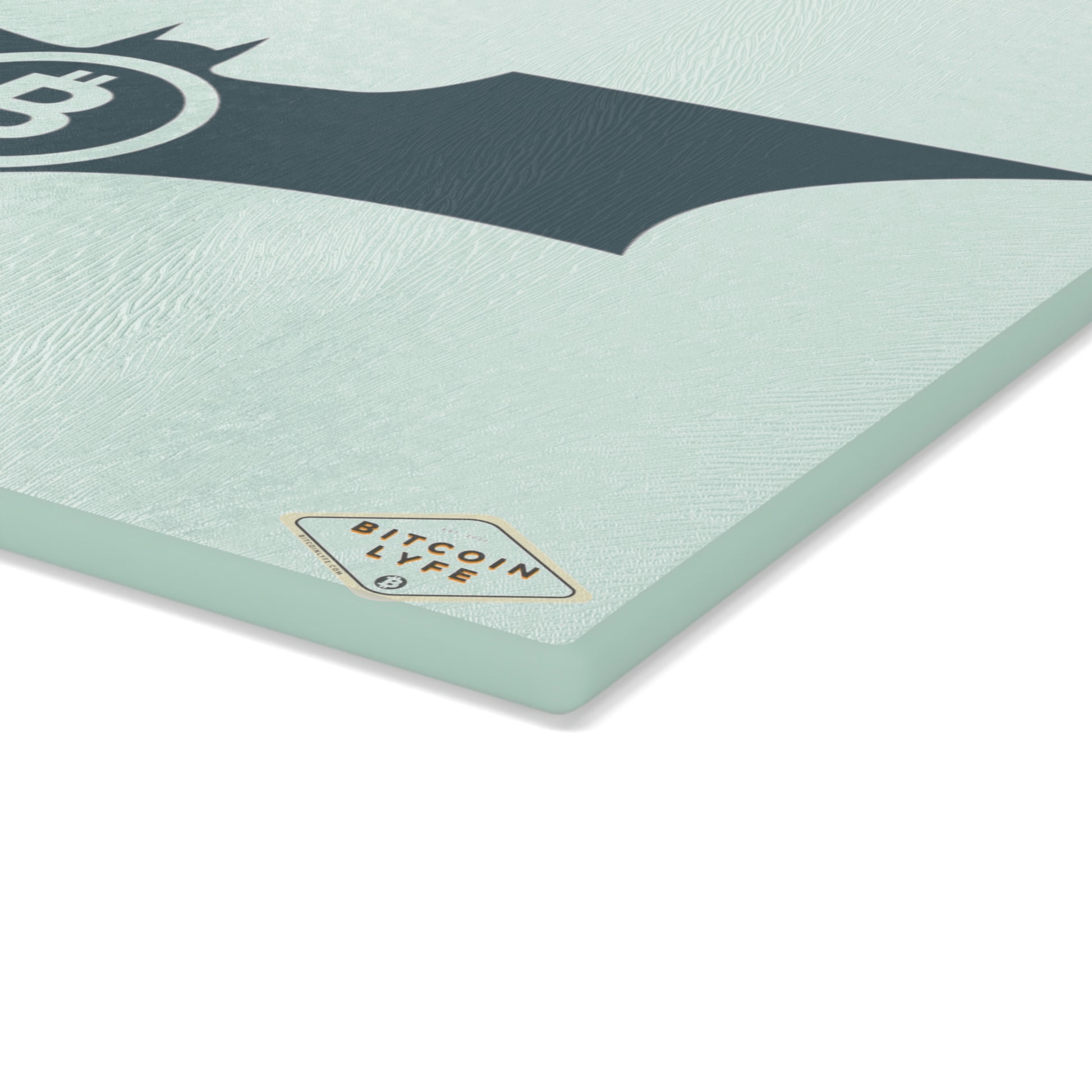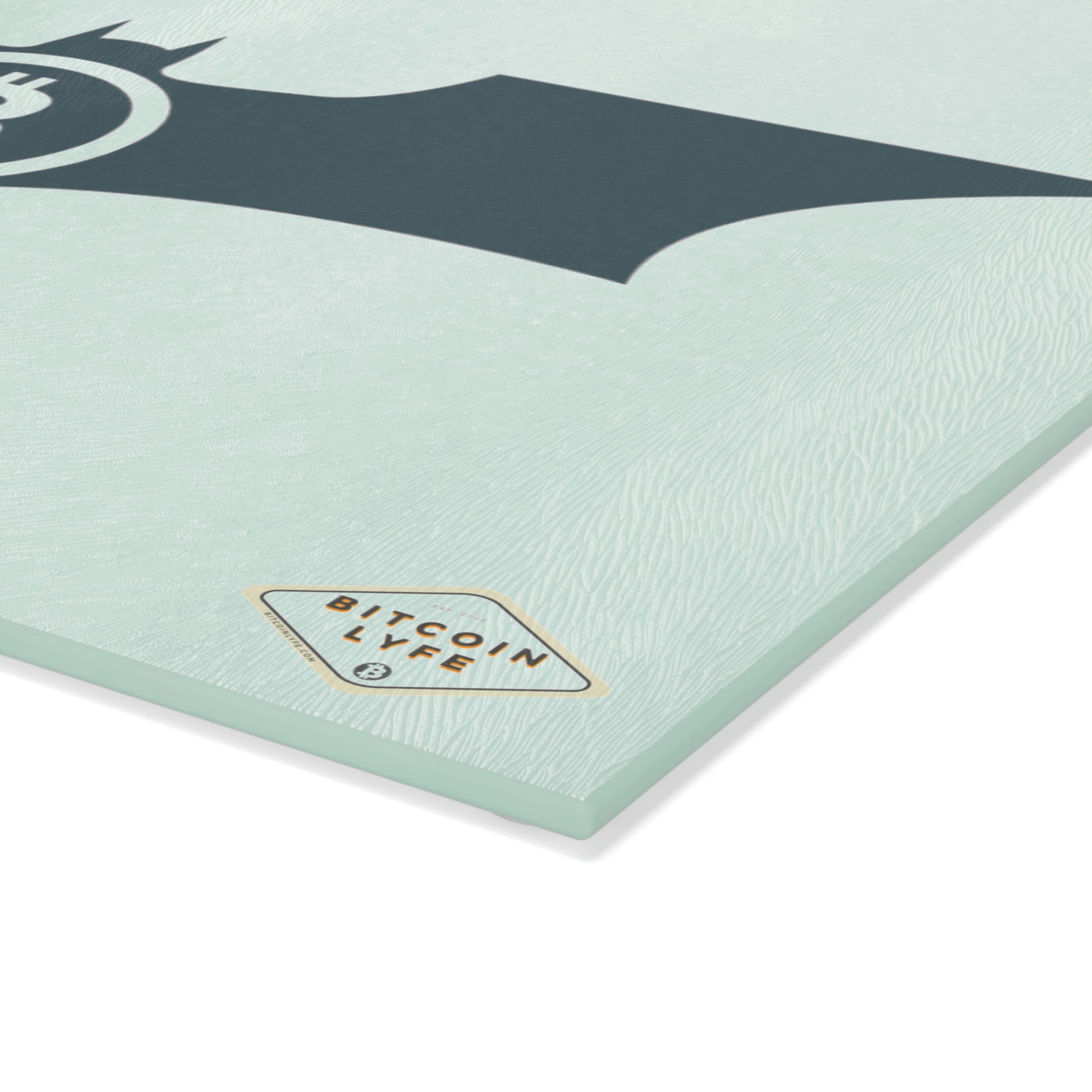Bring a touch of character into any kitchen with this Bitcoin glass cutting board. Its tampered glass material is robust and helps prepare many a tasty meal for a long time to come. The textured surface makes it an ideal chopping, slicing, and dicing area. Available in two sizes: 8" x 11" and 11" x 15".