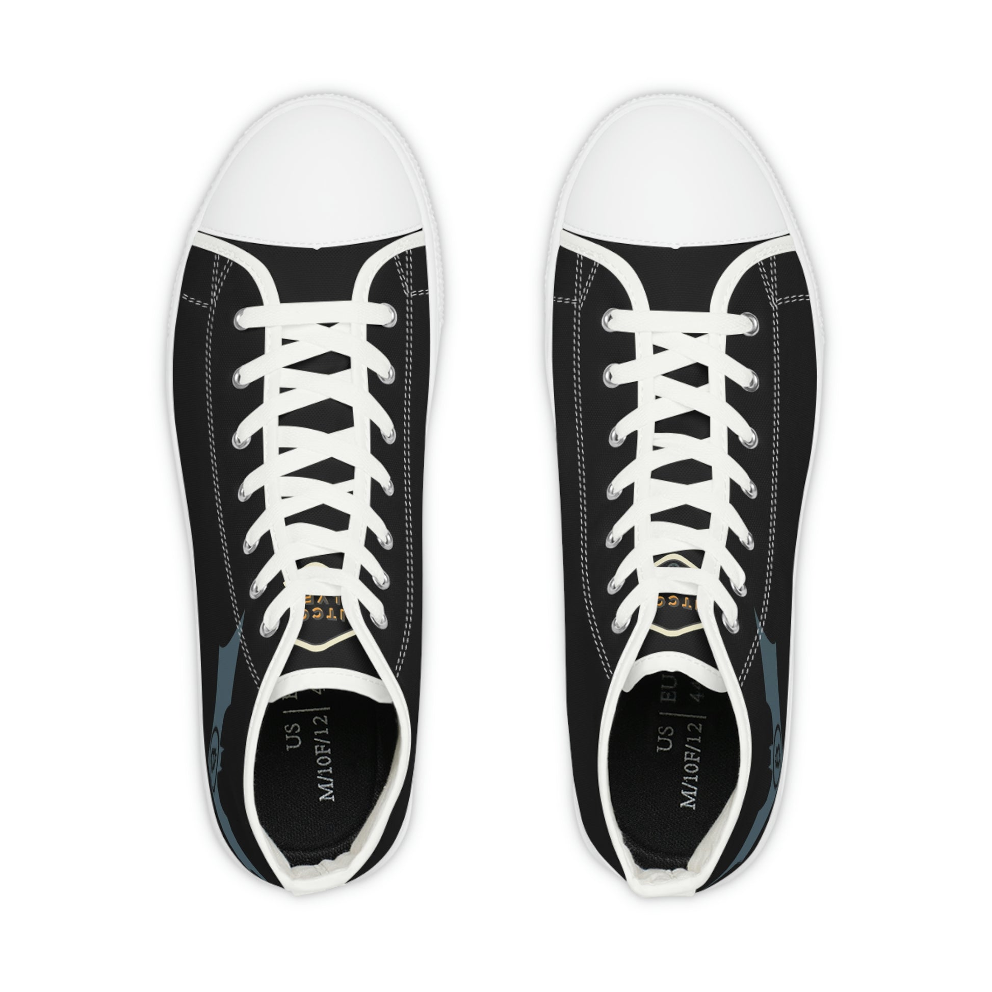 Made with breathable polyester canvas and featuring hi-poly deodorant memory foam insoles, these high top sneakers for men bear all the marks of an awesome shoe. Choose between black or white sole and laces, and enjoy the silver metal eyelets along with the lace-up closure.