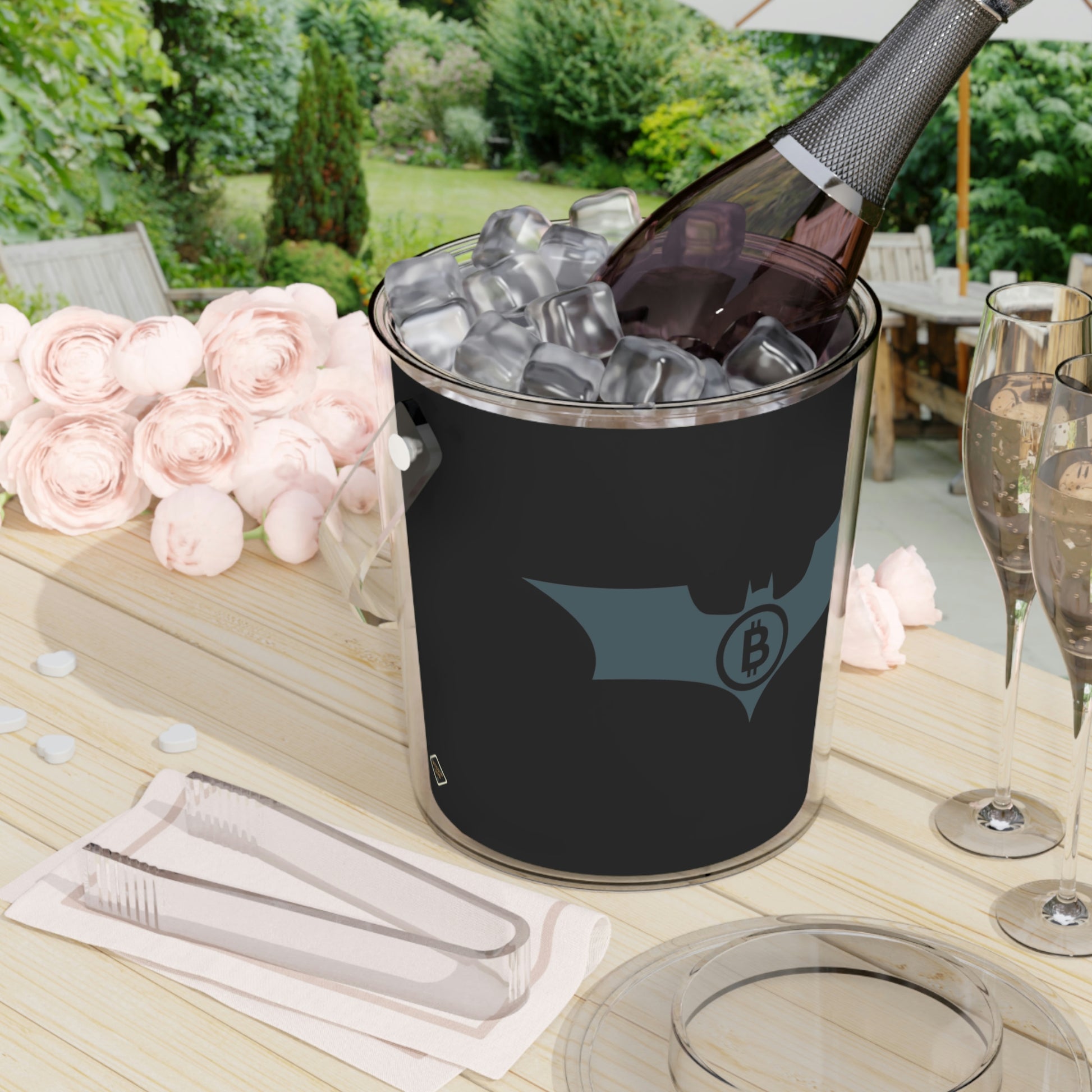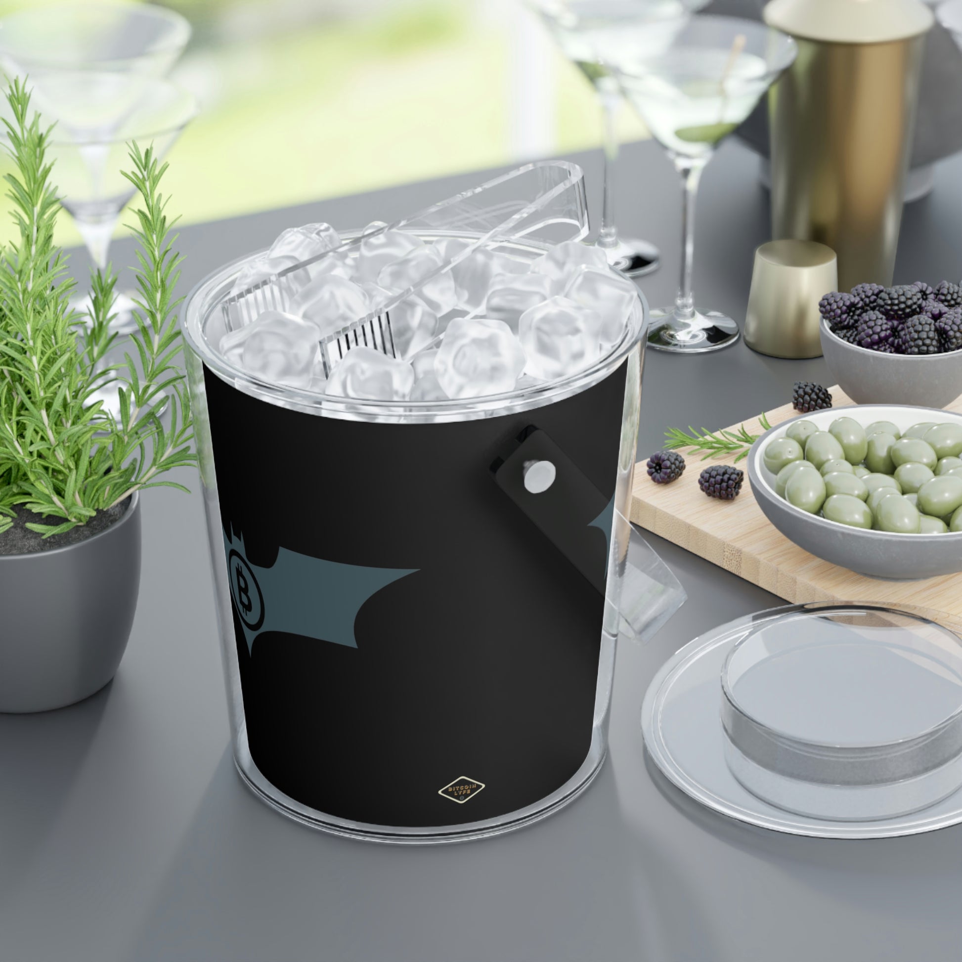 Add this Bitcoin touch to any gathering that requires frosty beverages. Each Bitcoin acrylic ice bucket comes with its own tongs and has a 3 QT (96oz) capacity. What's more, you also get an easily removable lid that adds convenient handling to the mix.