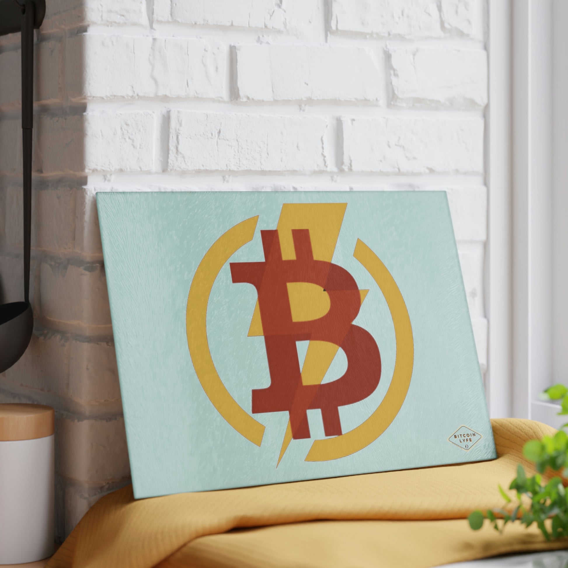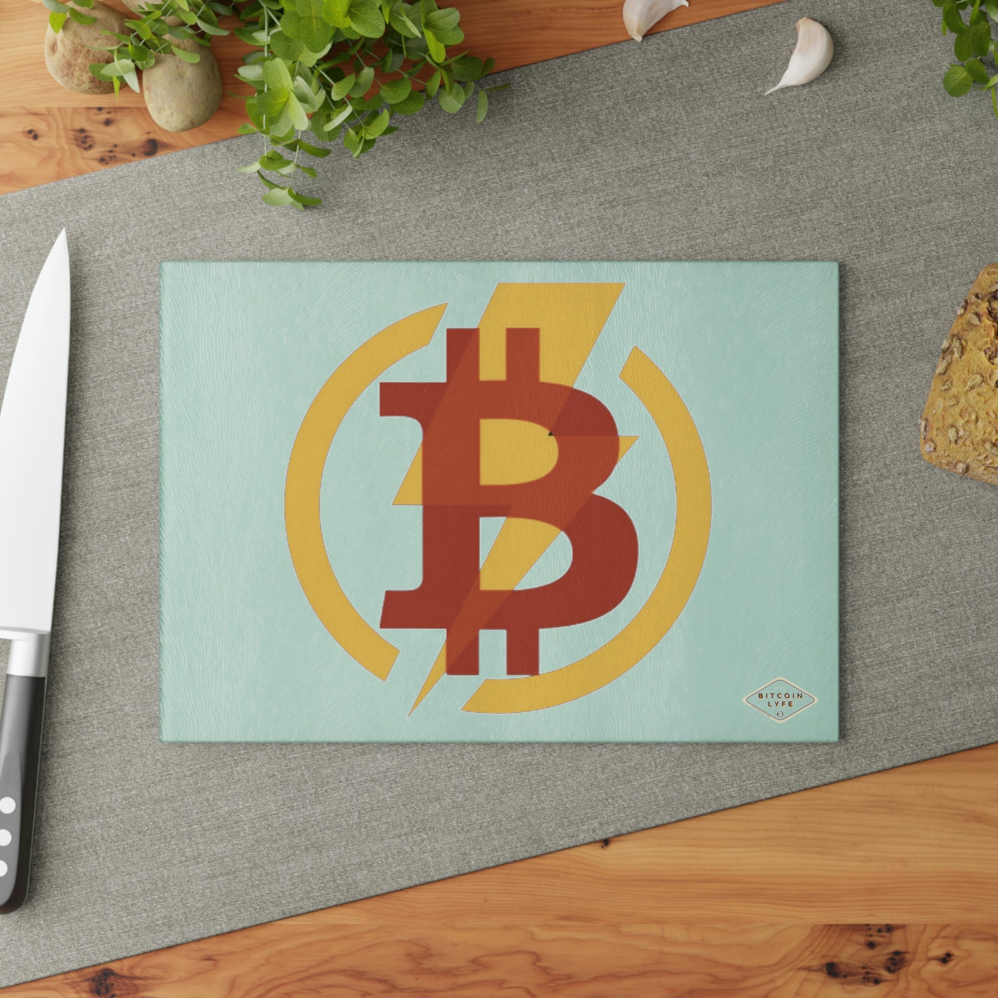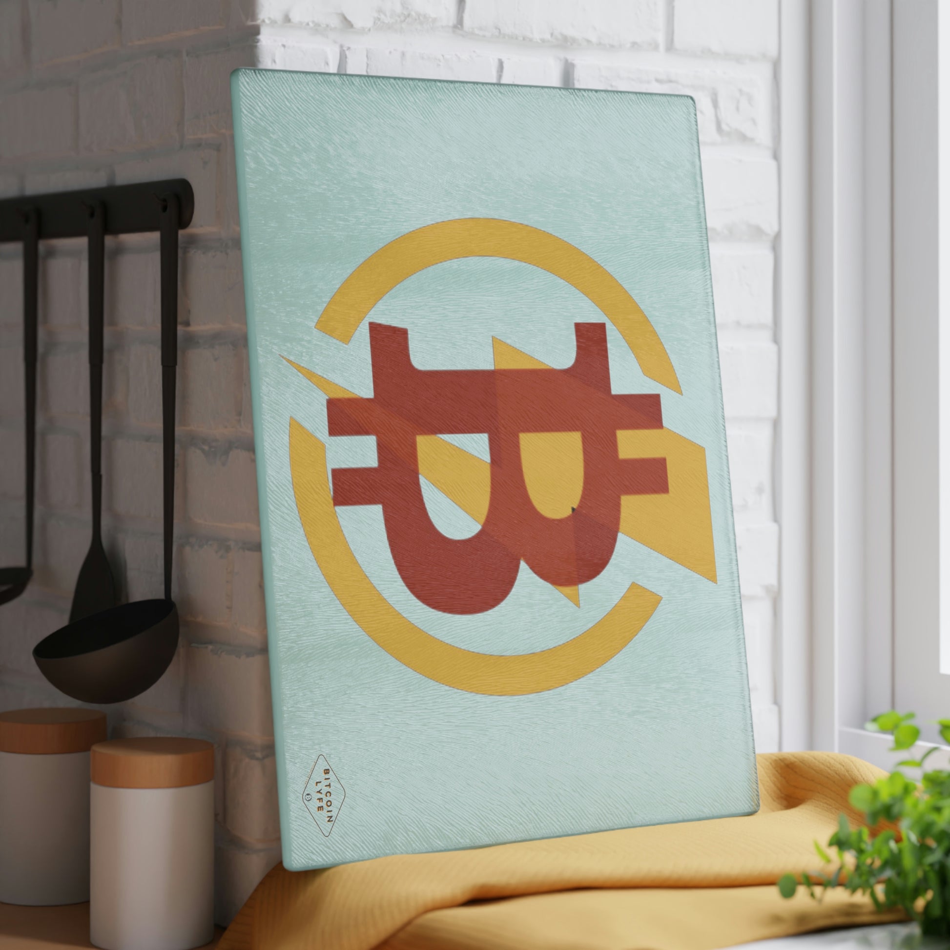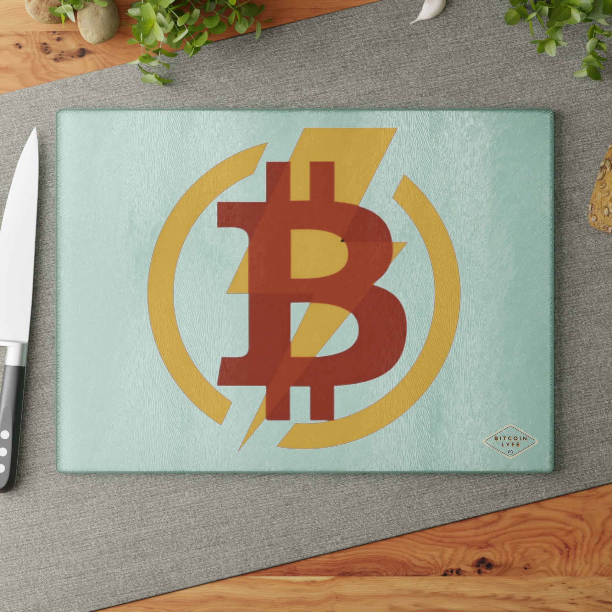 Bring a touch of character into any kitchen with this Bitcoin glass cutting board. Its tampered glass material is robust and helps prepare many a tasty meal for a long time to come. The textured surface makes it an ideal chopping, slicing, and dicing area. Available in two sizes: 8" x 11" and 11" x 15".