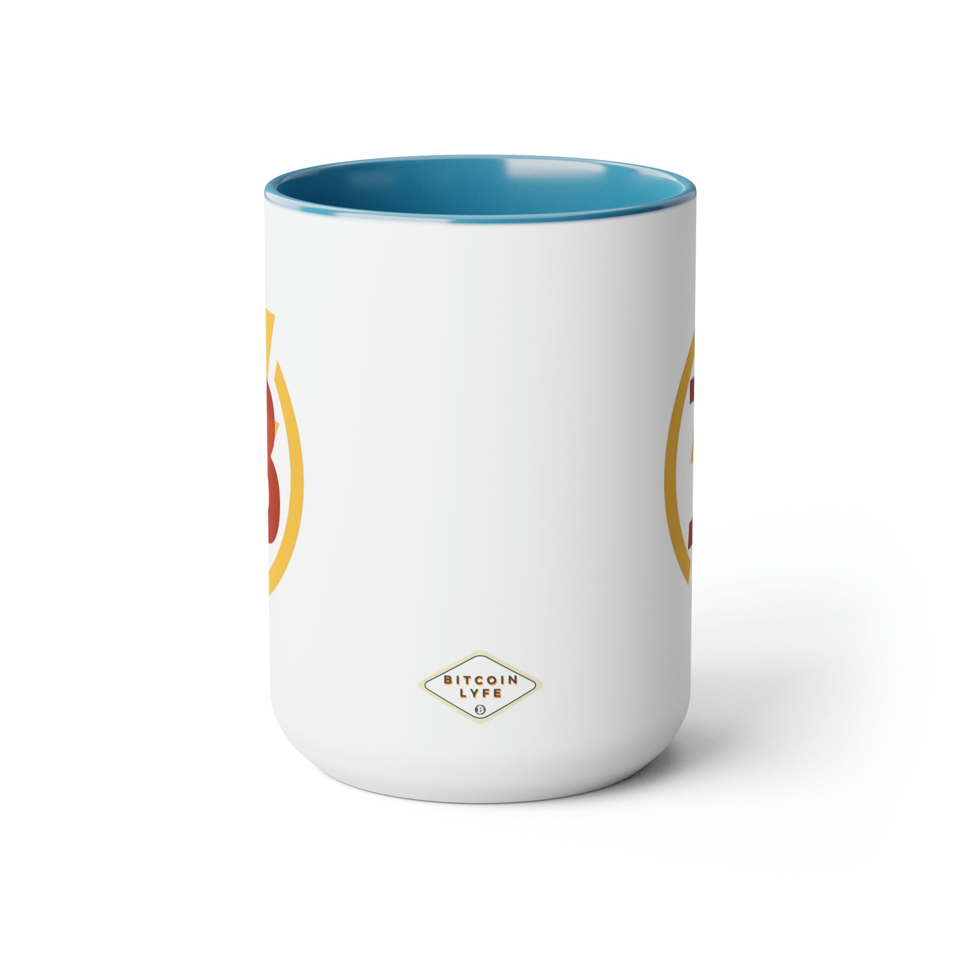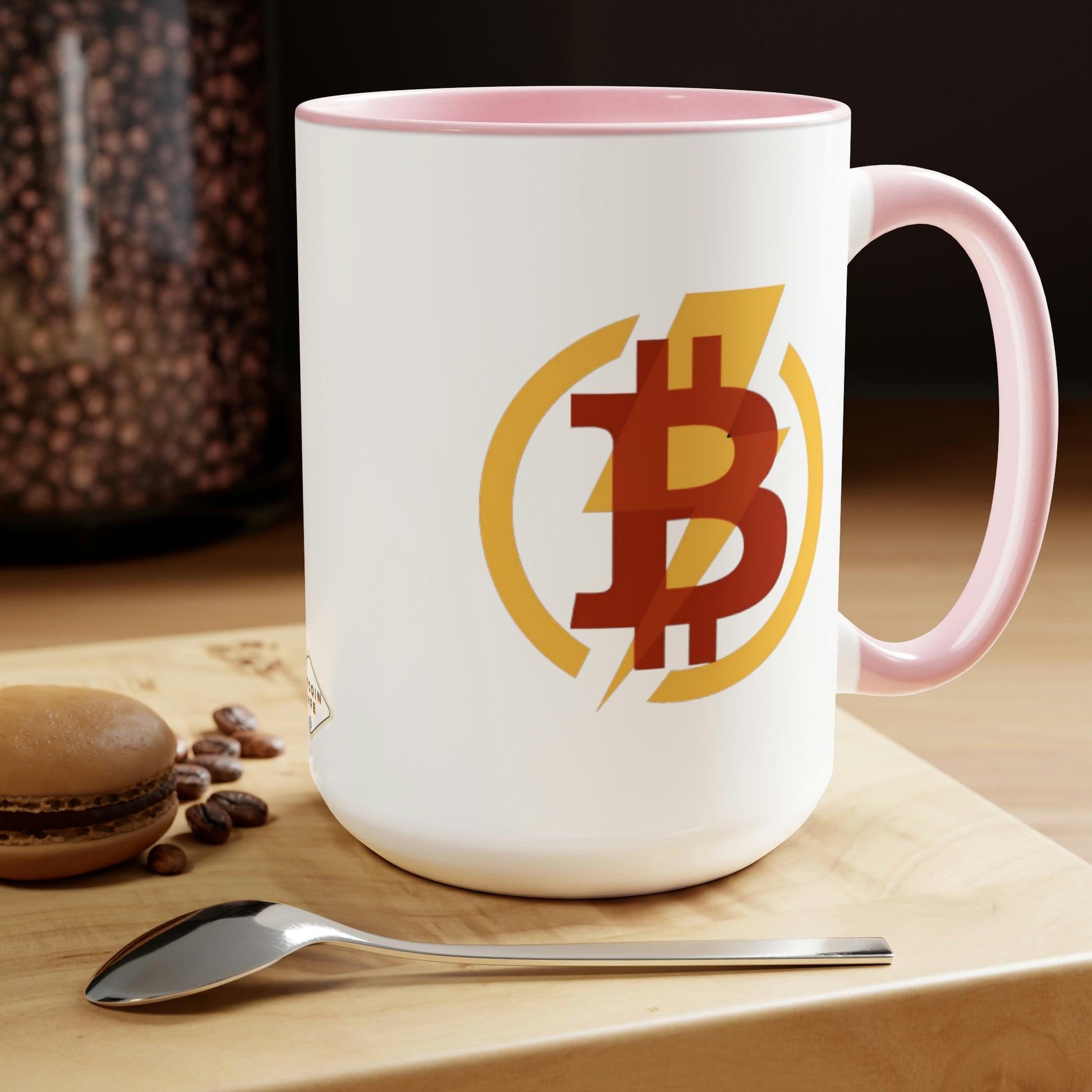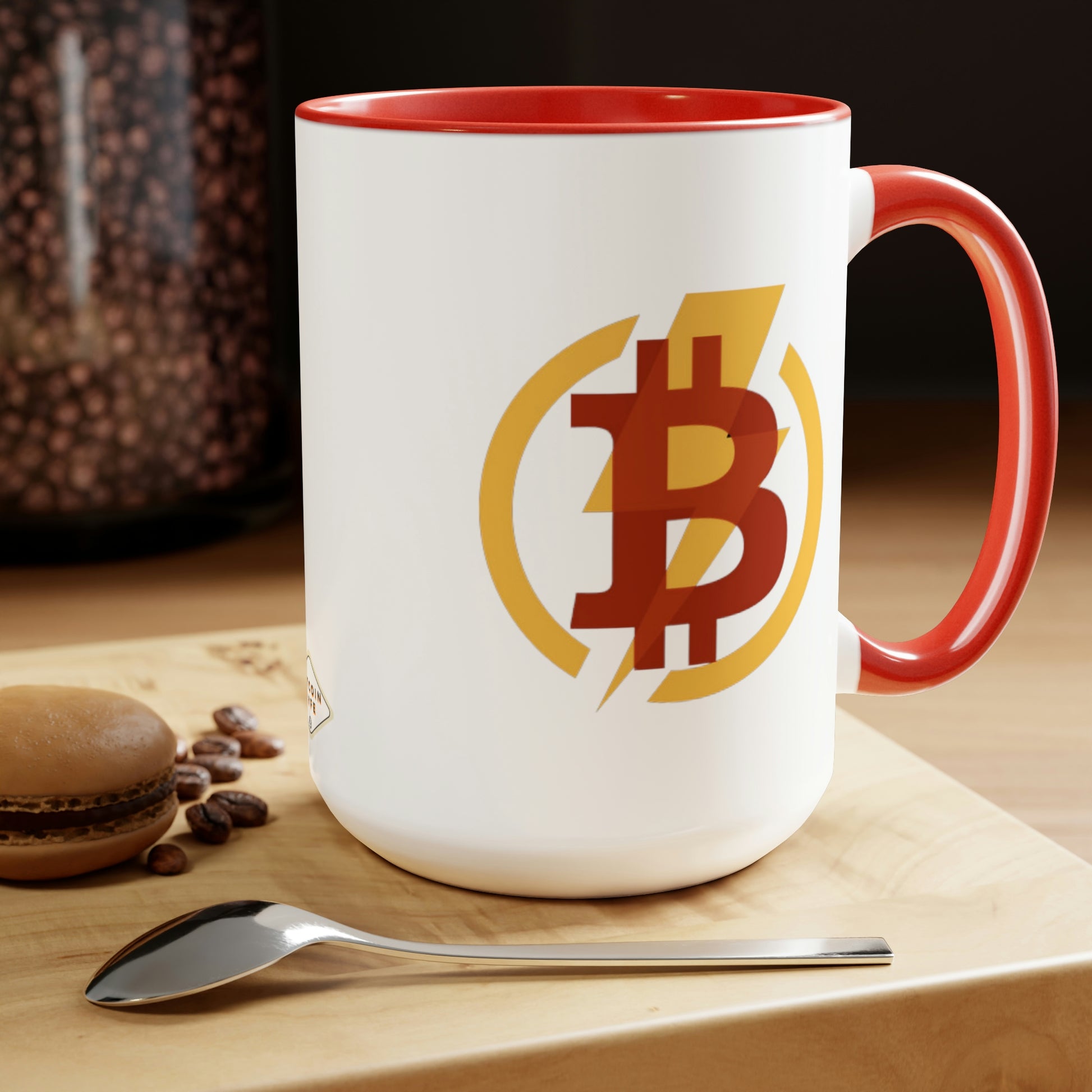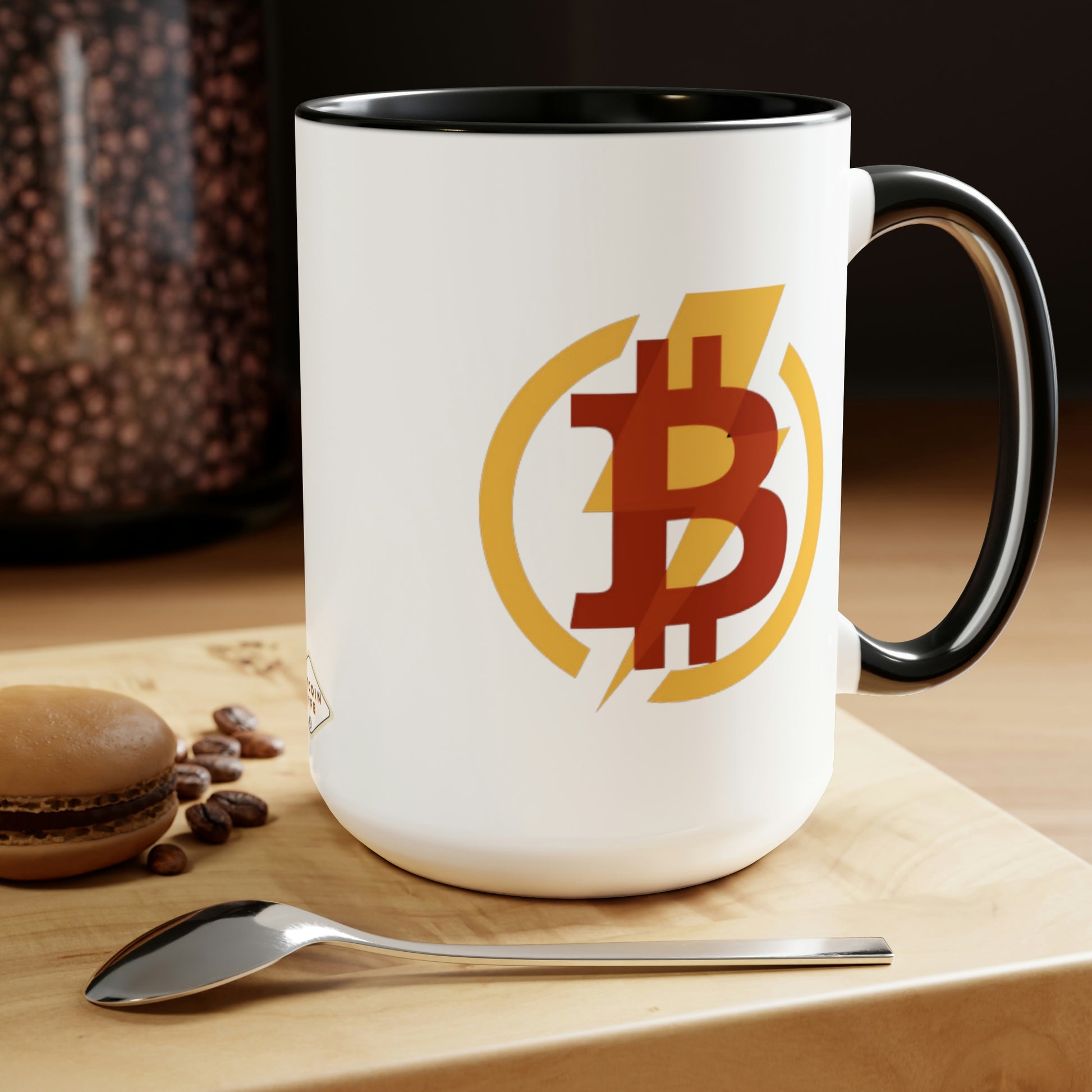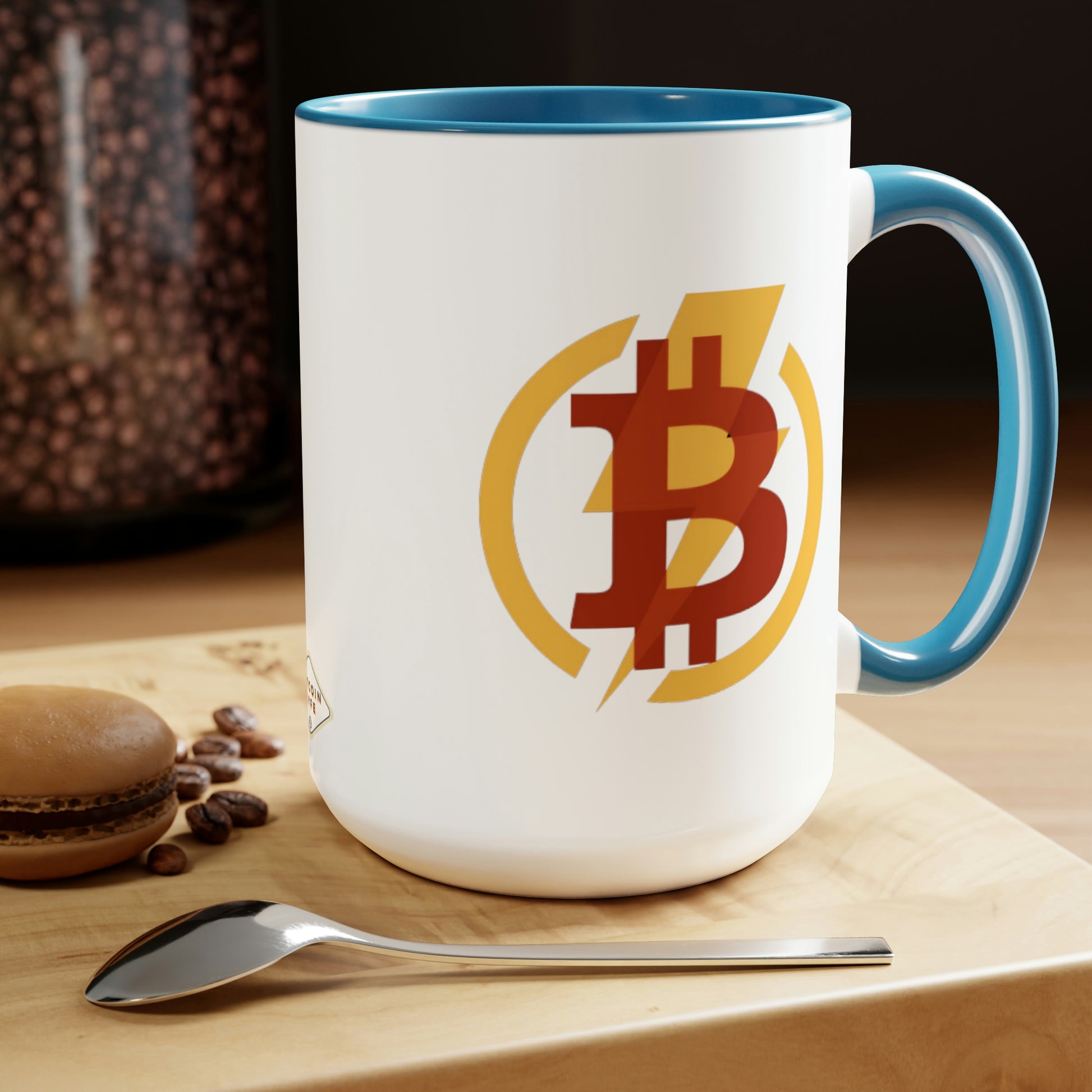 Here to bring big gulps of coffee and style, these two-tone coffee mugs help you start the day just right while helping you to express your support for Bitcoin, recognizing the importance of Bitcoin's developer. Choose between different color options to best complement your designs. Each mug comes with a colored handle, a colored interior, and a classy, glossy finish so that your mugs become an instant favorite.