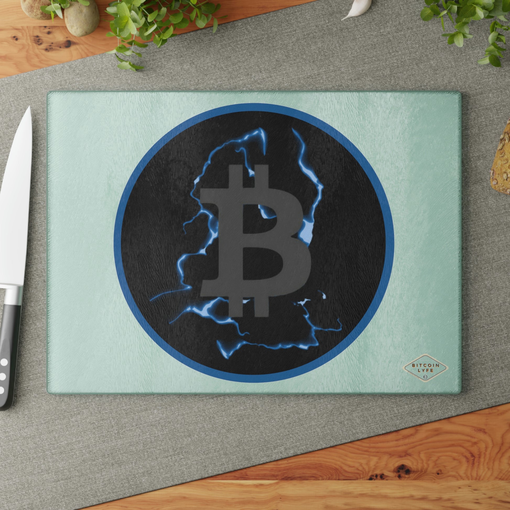 Bring a touch of character into any kitchen with this Bitcoin glass cutting board. Its tampered glass material is robust and helps prepare many a tasty meal for a long time to come. The textured surface makes it an ideal chopping, slicing, and dicing area. Available in two sizes: 8" x 11" and 11" x 15".