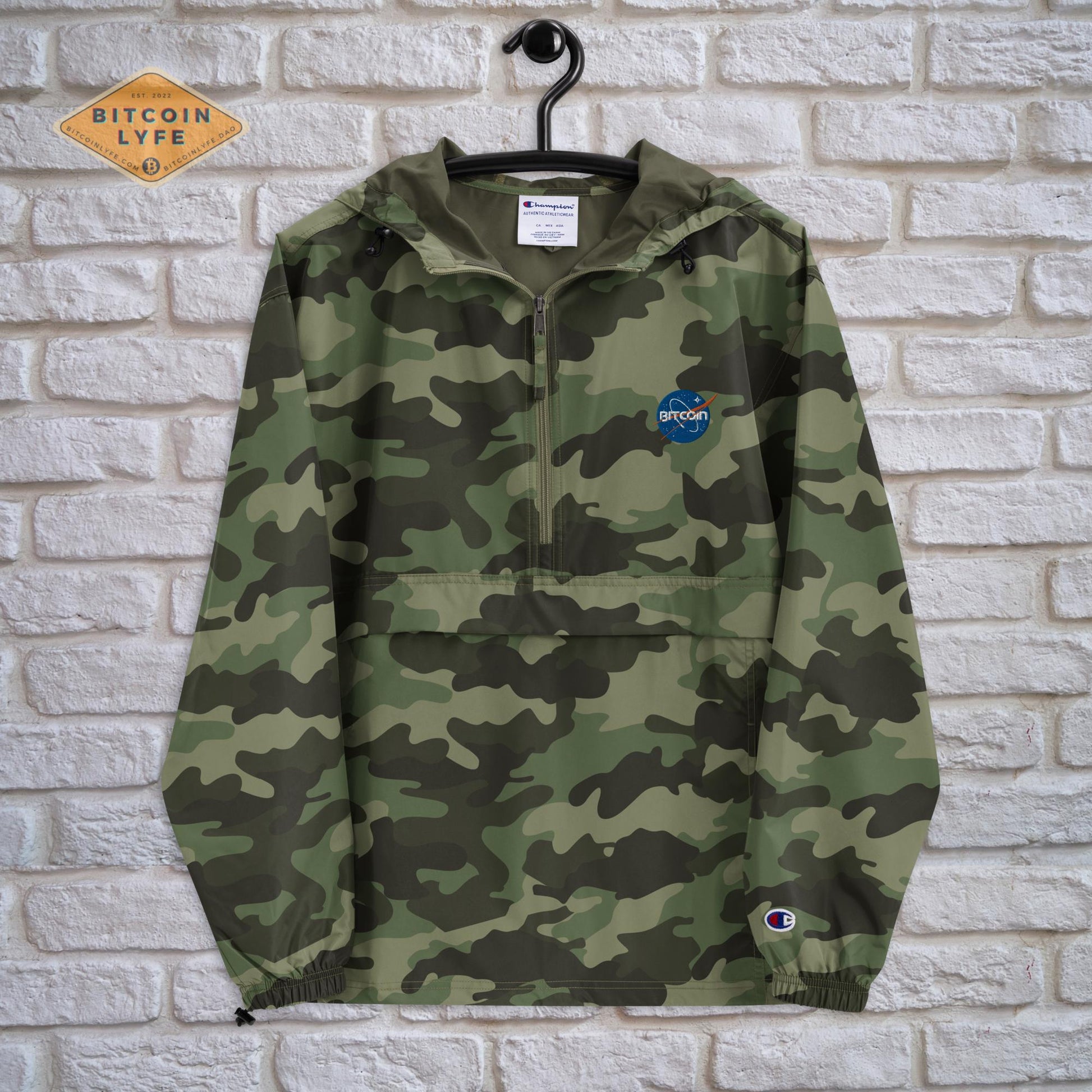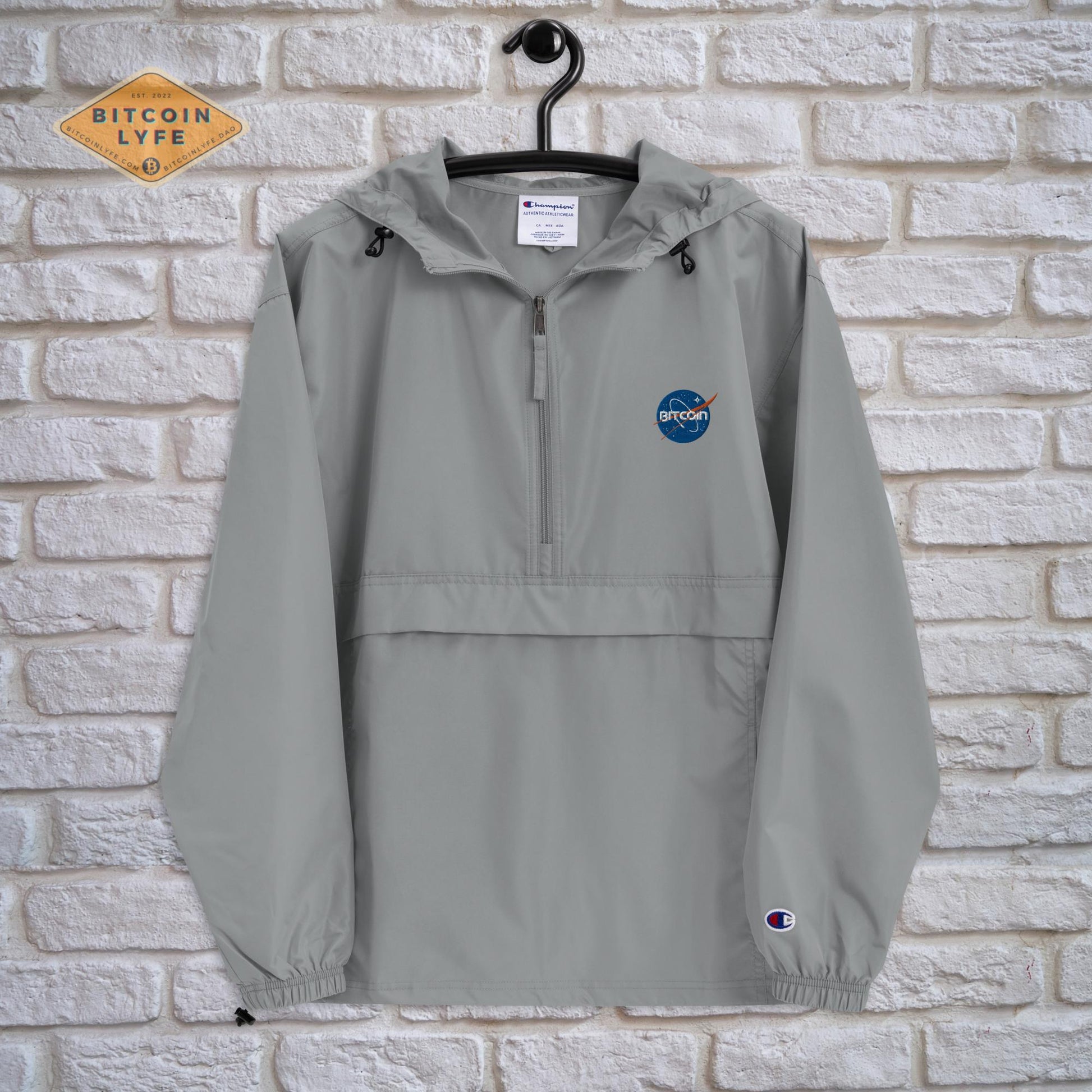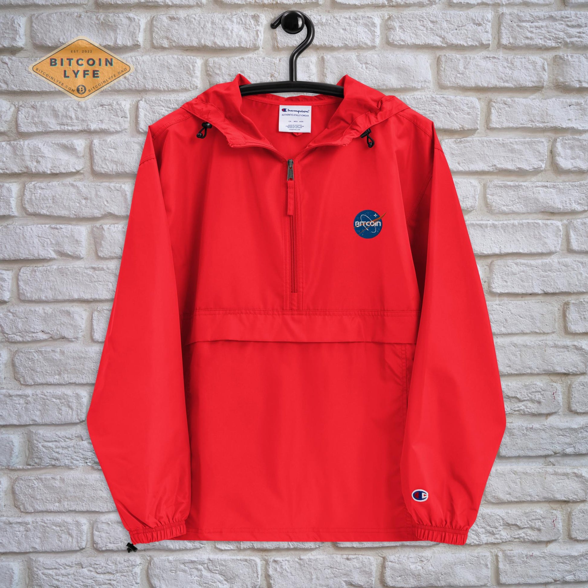 Protect yourself from the elements with this Bitcoin LYFE-Champion packable jacket. This wind and rain resistant polyester jacket with a detailed Bitcoin embroidery design has a practical hood, front kangaroo pocket, and zipped pouch pocket which you can pull out and use to scrunch the jacket into for convenient storage. With the right disposition, this may even be FUD repellant! Well, it’s worth a try anyway!
