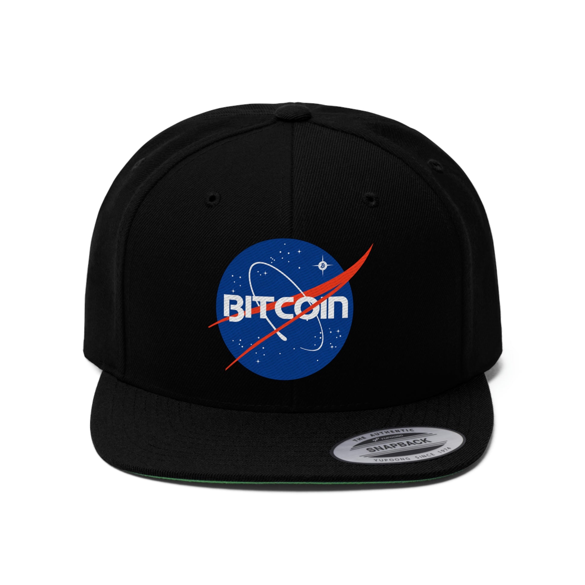 This Bitcoin 6-panel cap is a modern take on a classic design. This hat is the perfect choice thanks to its sharp styling, spirited color and lively green underbill. The old-school snapback closure and iconic flat bill add a subtle charm that takes you back to the good ol’ days ...with BTC laser eyes focused on the future. :-)