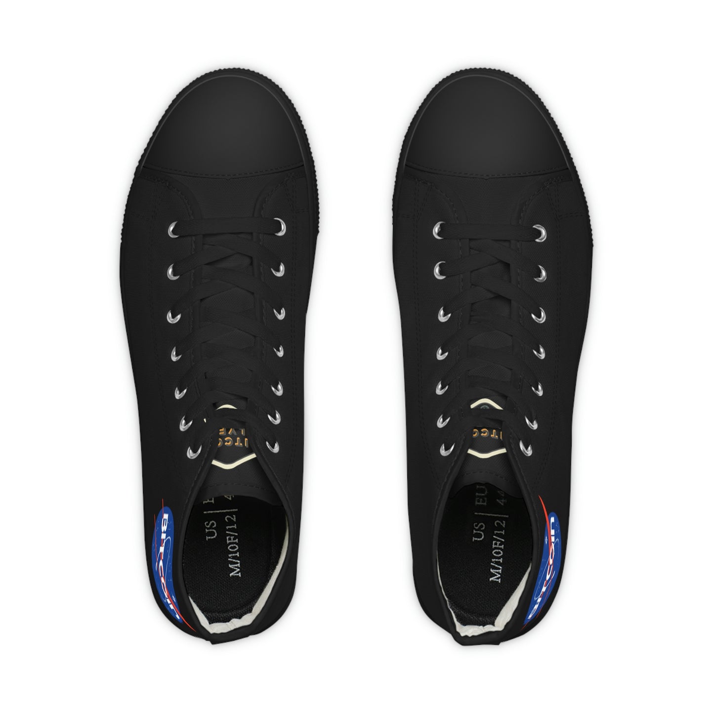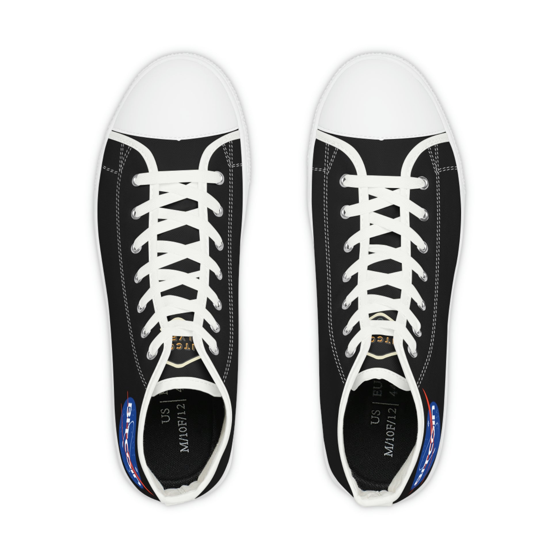 Made with breathable polyester canvas and featuring hi-poly deodorant memory foam insoles, these high top sneakers for men bear all the marks of an awesome shoe. Choose between black or white sole and laces, and enjoy the silver metal eyelets along with the lace-up closure.