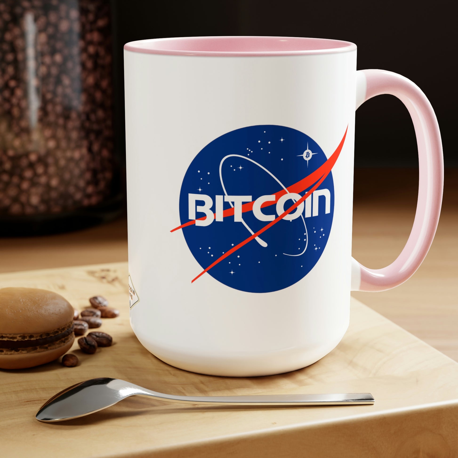Here to bring big gulps of coffee and style, these two-tone coffee mugs help you start the day just right while helping you to express your support for Bitcoin, recognizing the importance of Bitcoin's developer. Choose between different color options to best complement your designs. Each mug comes with a colored handle, a colored interior, and a classy, glossy finish so that your mugs become an instant favorite.