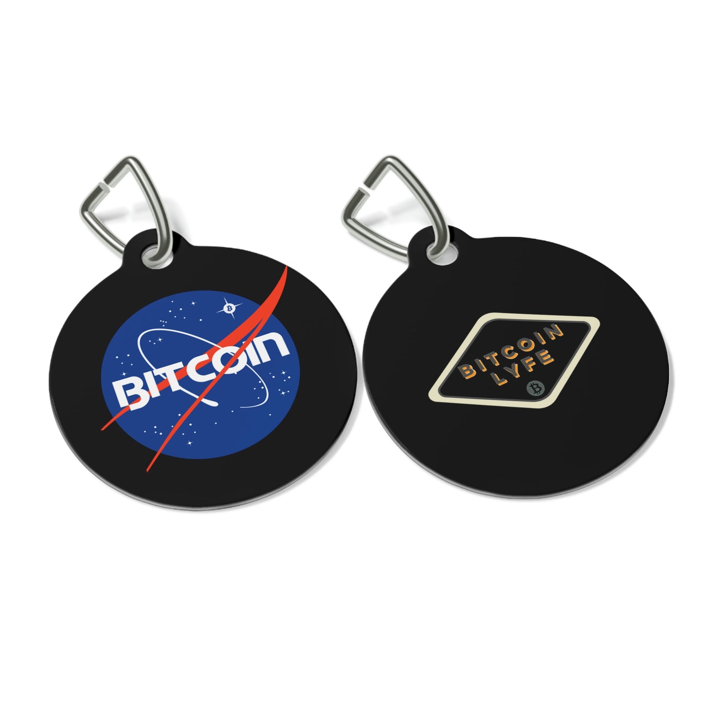 BItcoin pet tags provide a fresh way to spice up a furry friend's collar. The tag and clip are both made of metal. This increased durability comes in handy, as collar pieces can snag on brush, corners, etc.