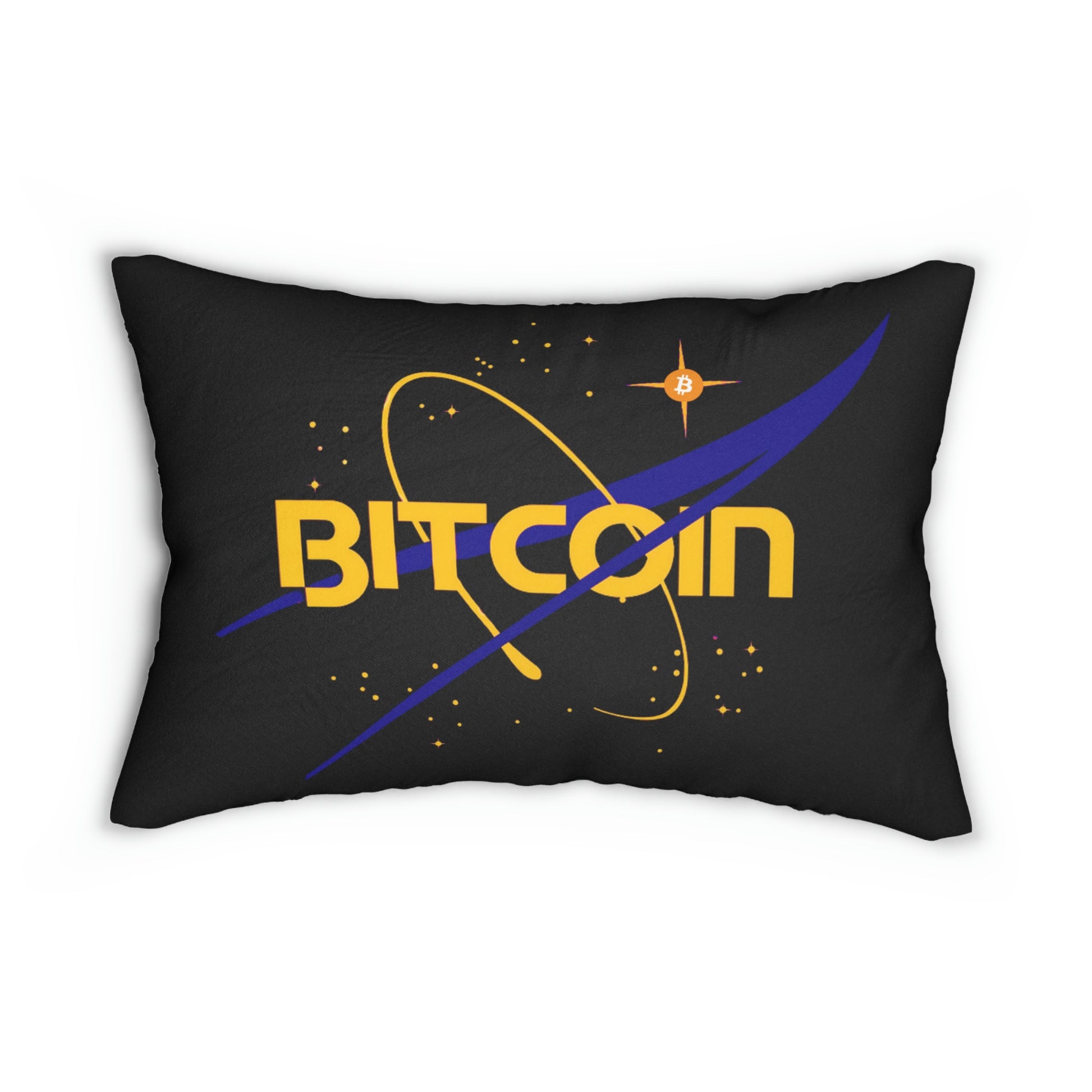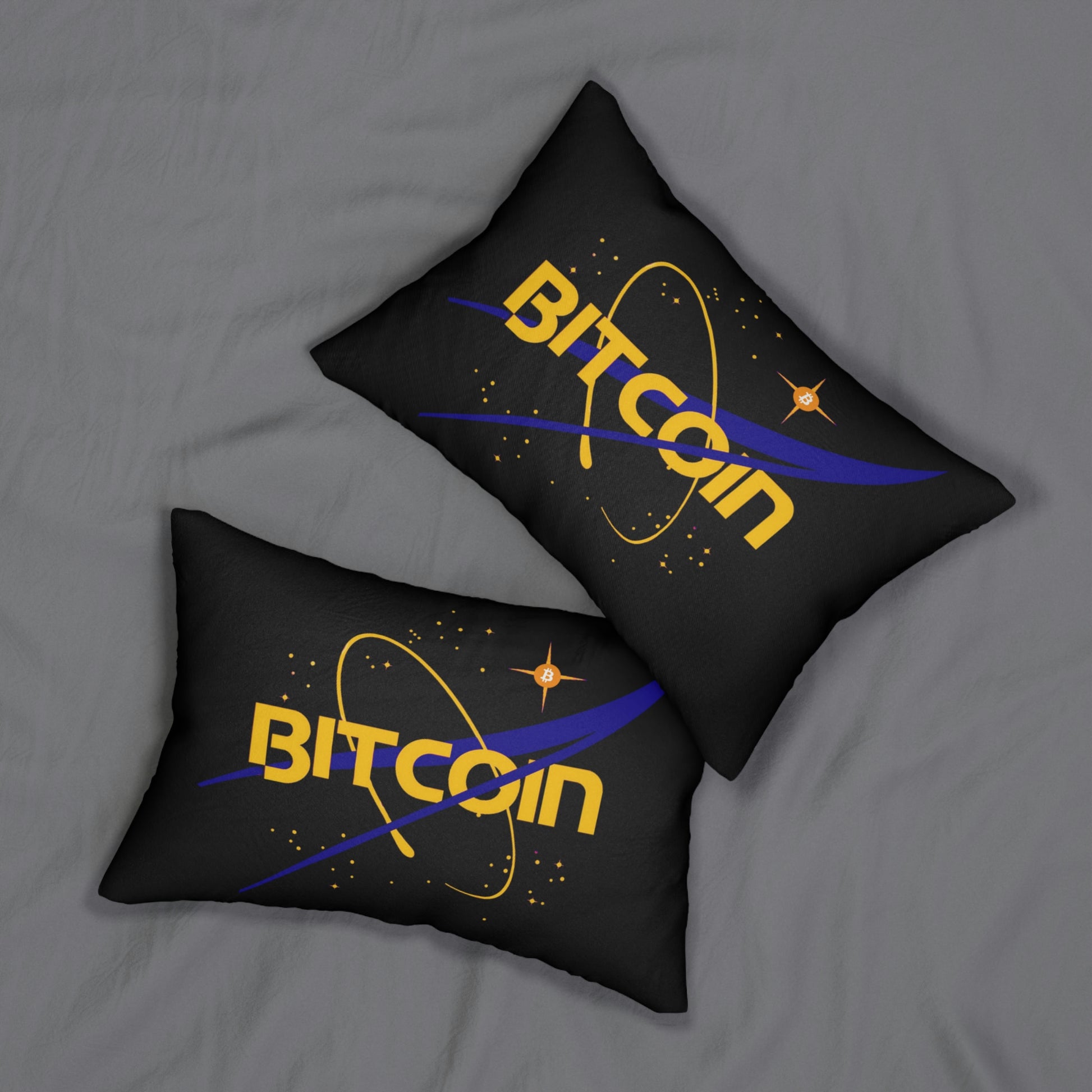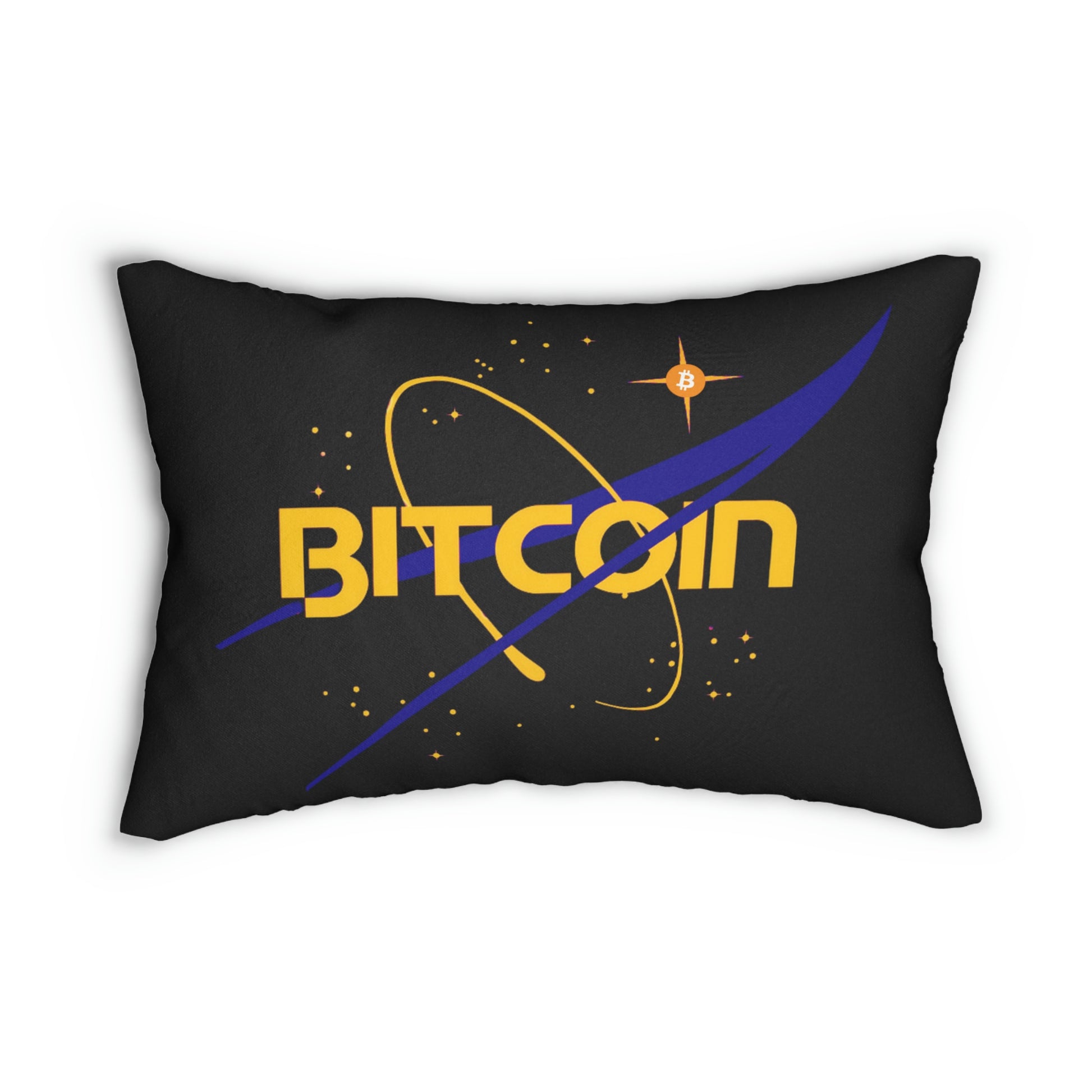 Add this beautiful spun-polyester Bitcoin lumbar pillow to your home decor pieces today. It comes with a stuffing pillow included. The casing is made of a spun polyester fabric that is inherently mildew and water-resistant. You can place your design on both sides or have a different design on each side. It has a hidden beige zipper to maintain a finished and stylish look.