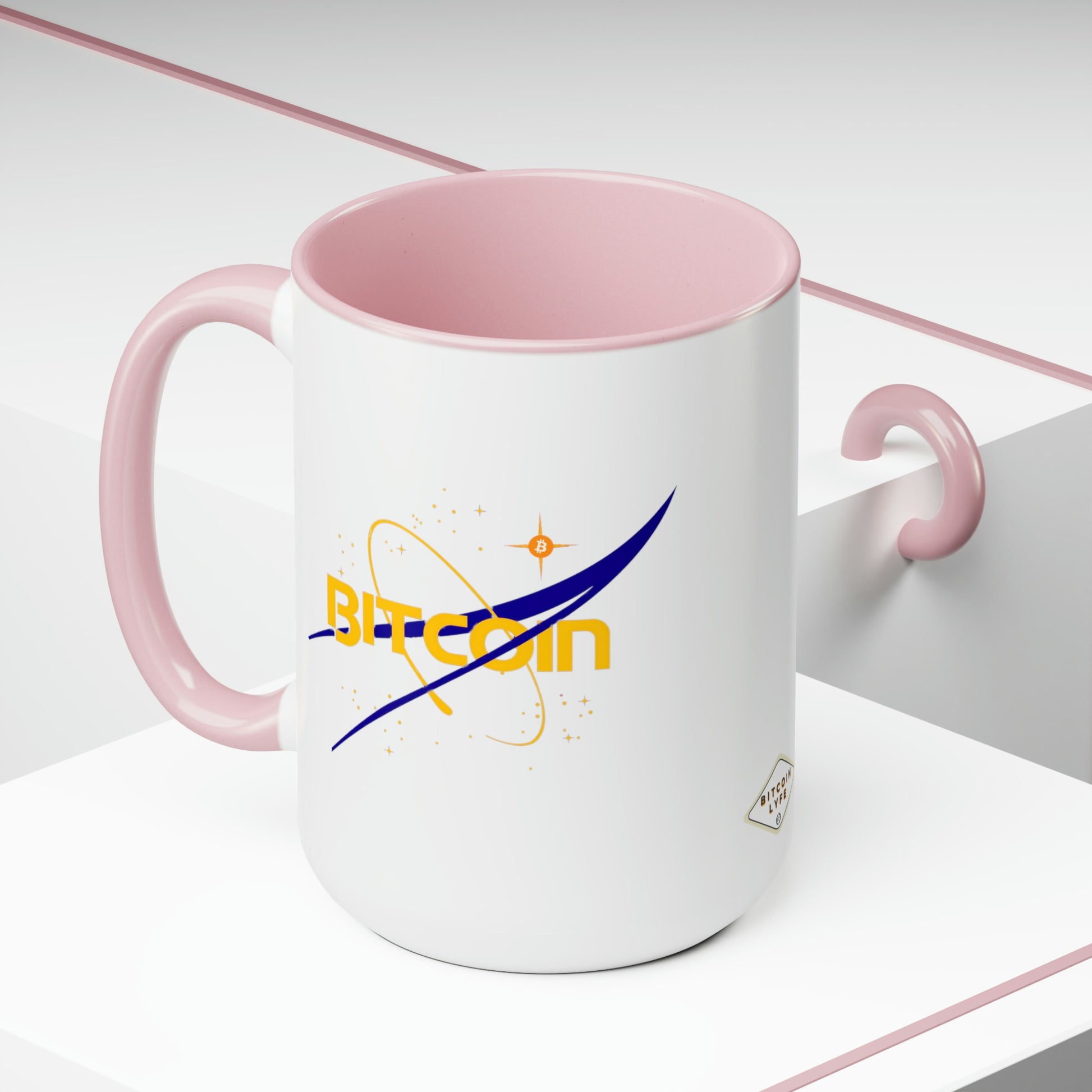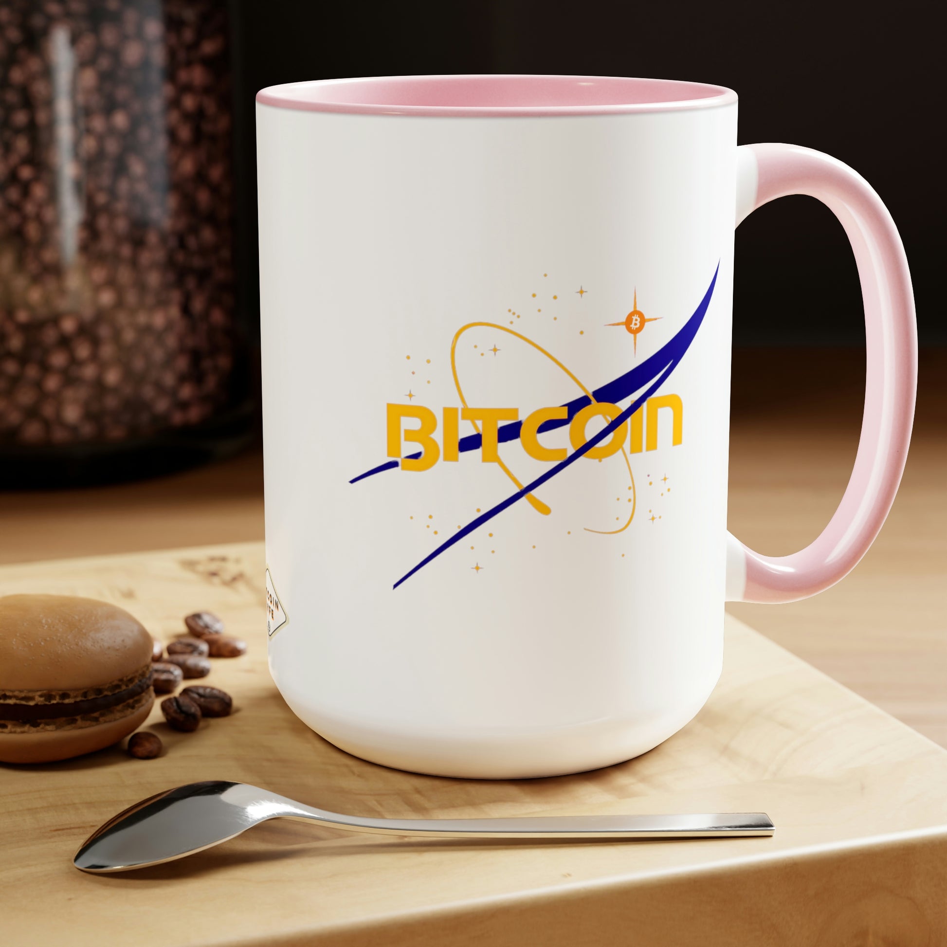 Here to bring big gulps of coffee and style, these two-tone coffee mugs help you start the day just right while helping you to express your support for Bitcoin, recognizing the importance of Bitcoin's developer. Choose between different color options to best complement your designs. Each mug comes with a colored handle, a colored interior, and a classy, glossy finish so that your mugs become an instant favorite.
