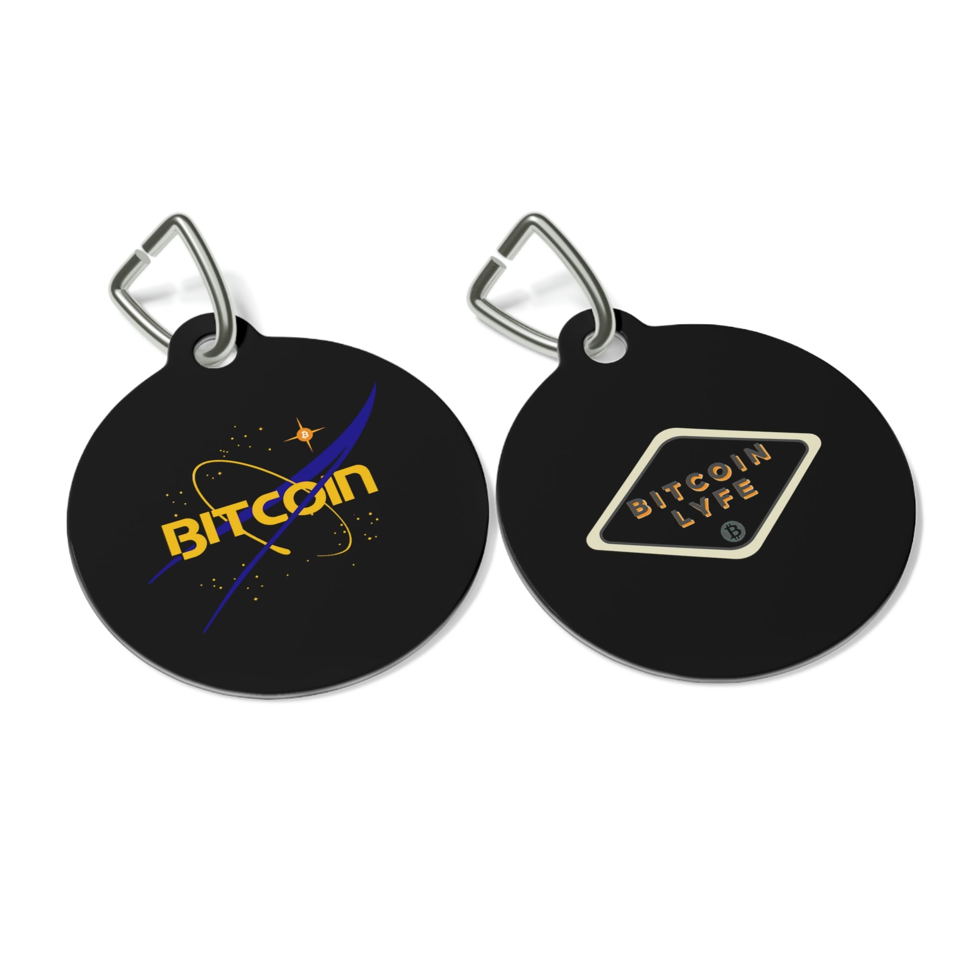 BItcoin pet tags provide a fresh way to spice up a furry friend's collar. The tag and clip are both made of metal. This increased durability comes in handy, as collar pieces can snag on brush, corners, etc.