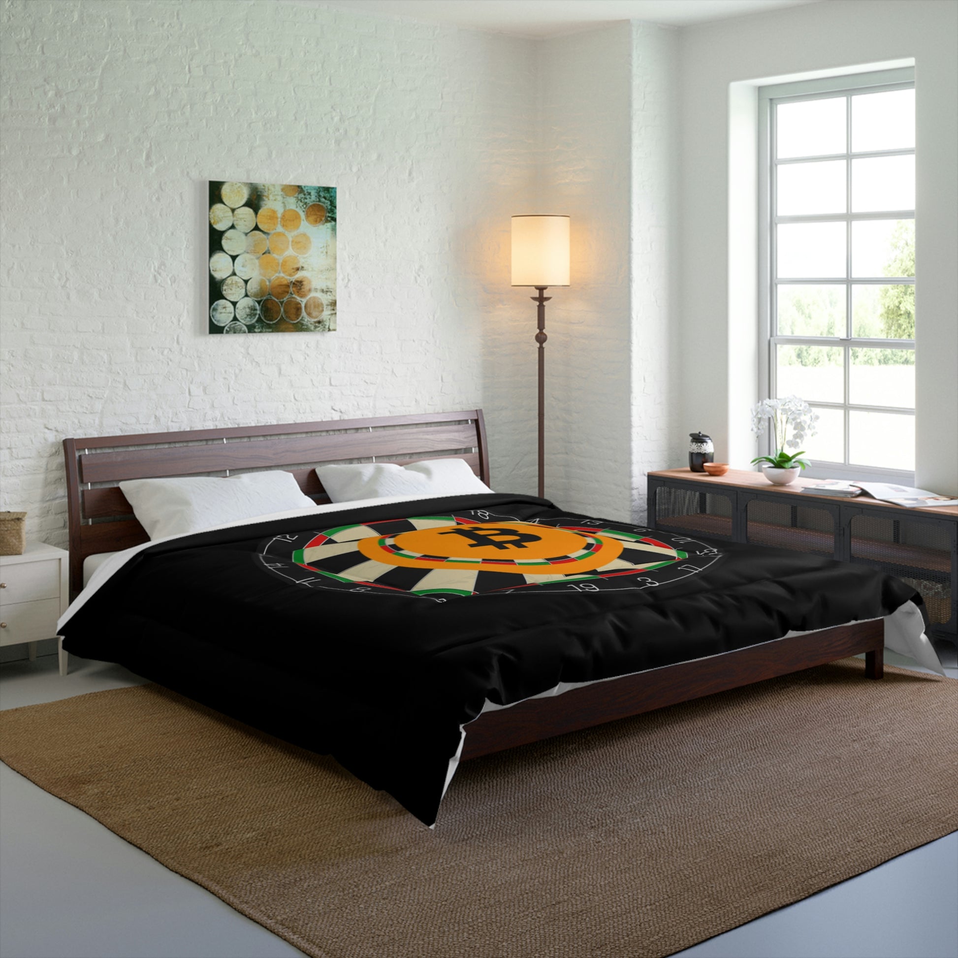 Comfy, fluffy, and warm. Cozy up underneath our snug comforter for a deep and relaxing sleep. This Bitcoin comforter is the perfect solution for cold days in bed with coffee, waiting for the morning light to peak through the window and wake up the house.