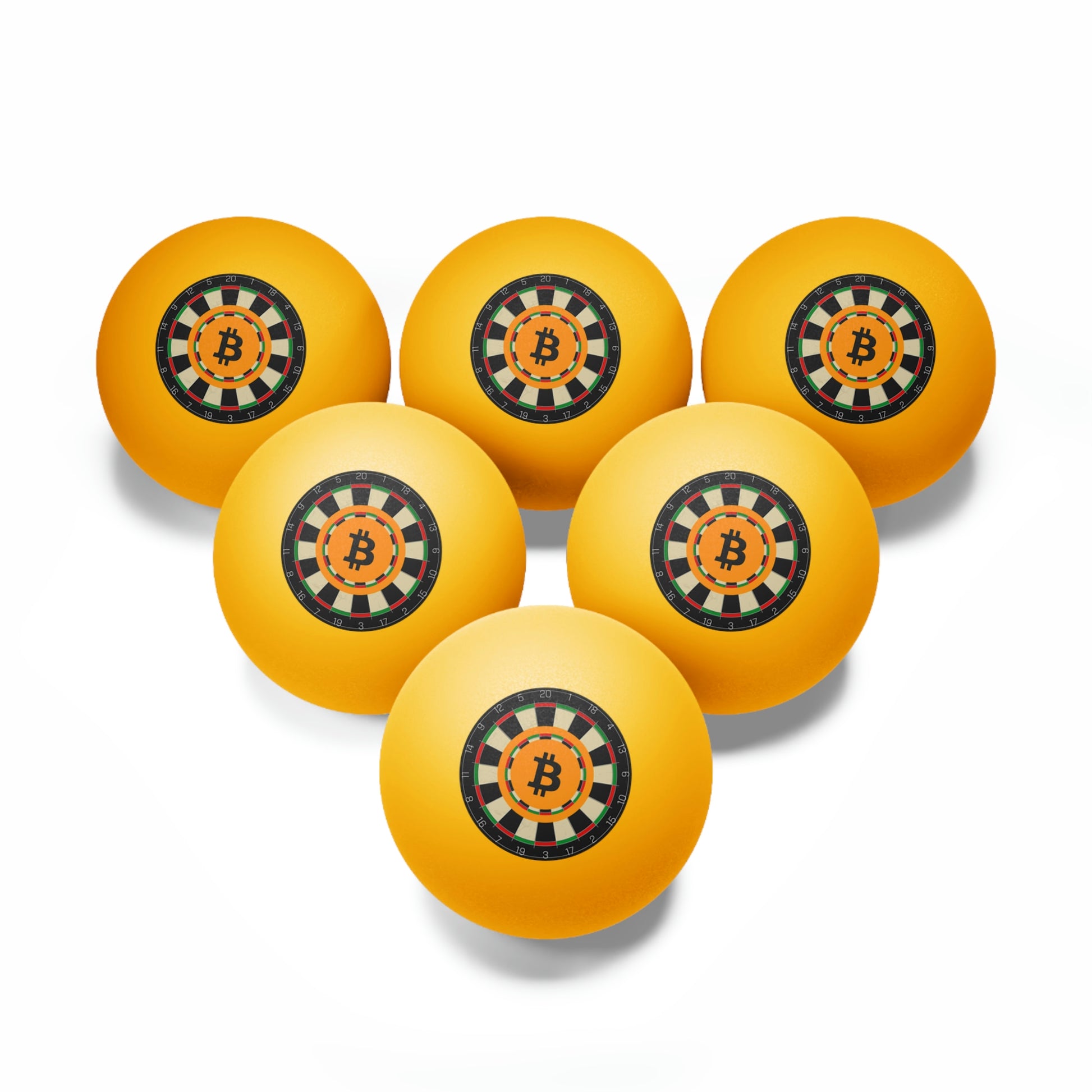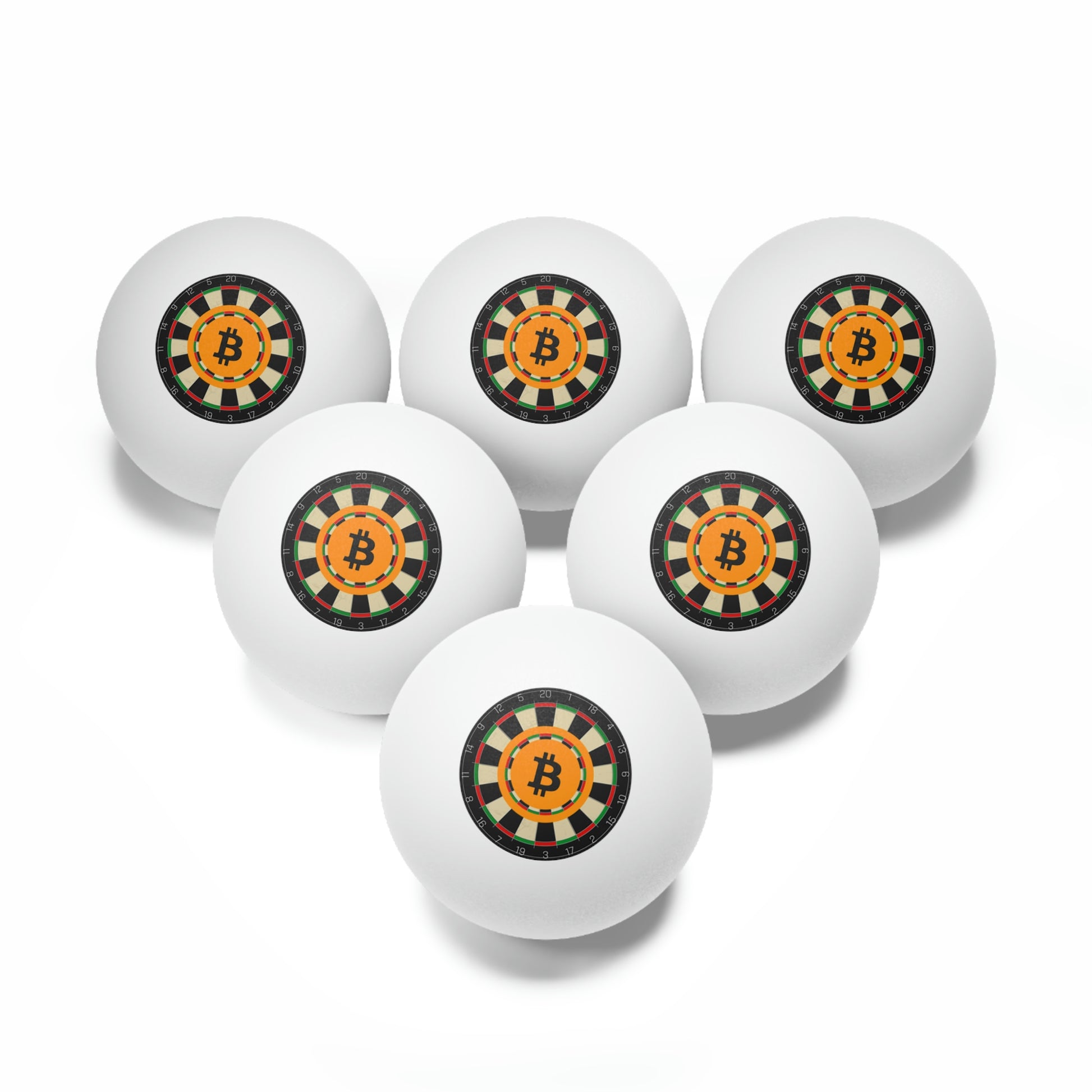 Ping pong games just got cooler, all thanks to these Bitcoin ping pong balls. Each set includes 6 ping pong balls. All balls measure in standard size (1.57") and are available in white or orange colors.
