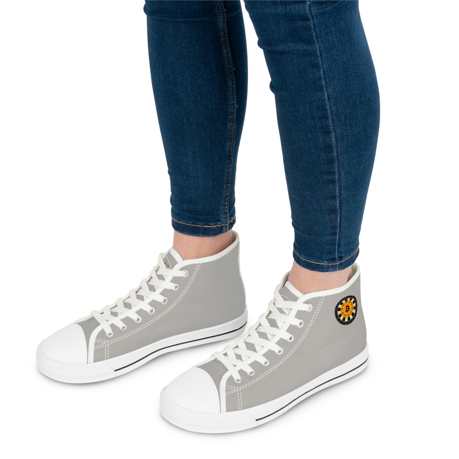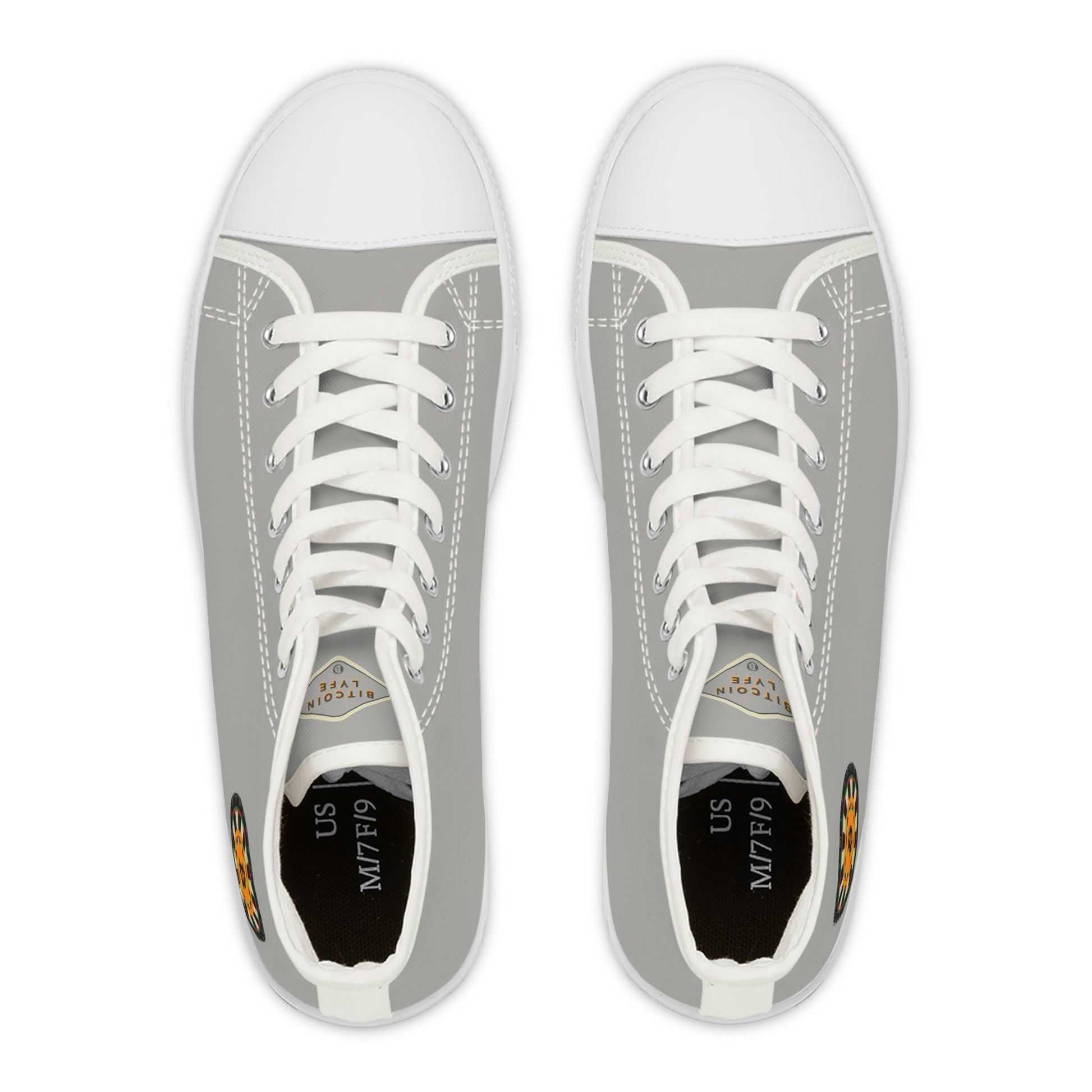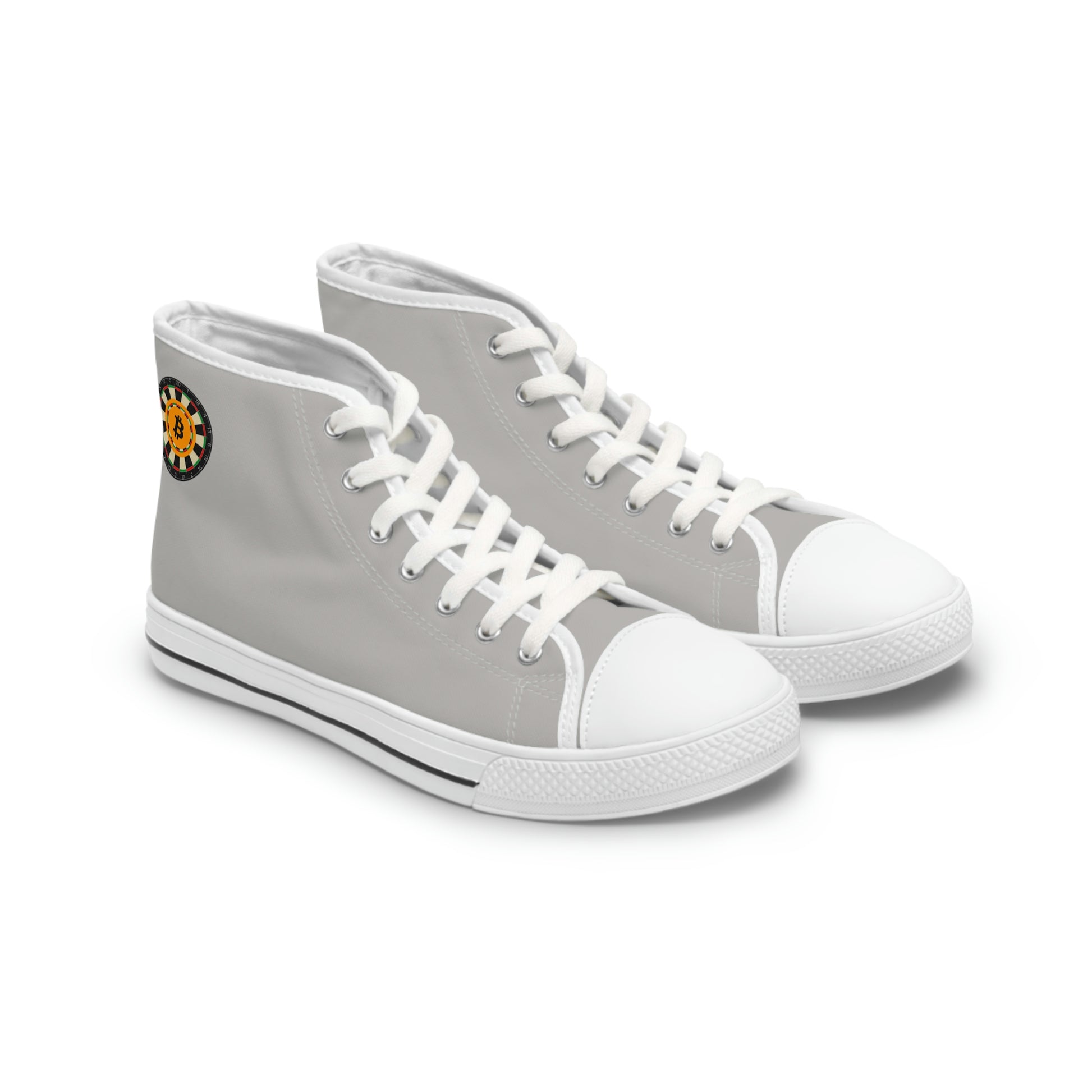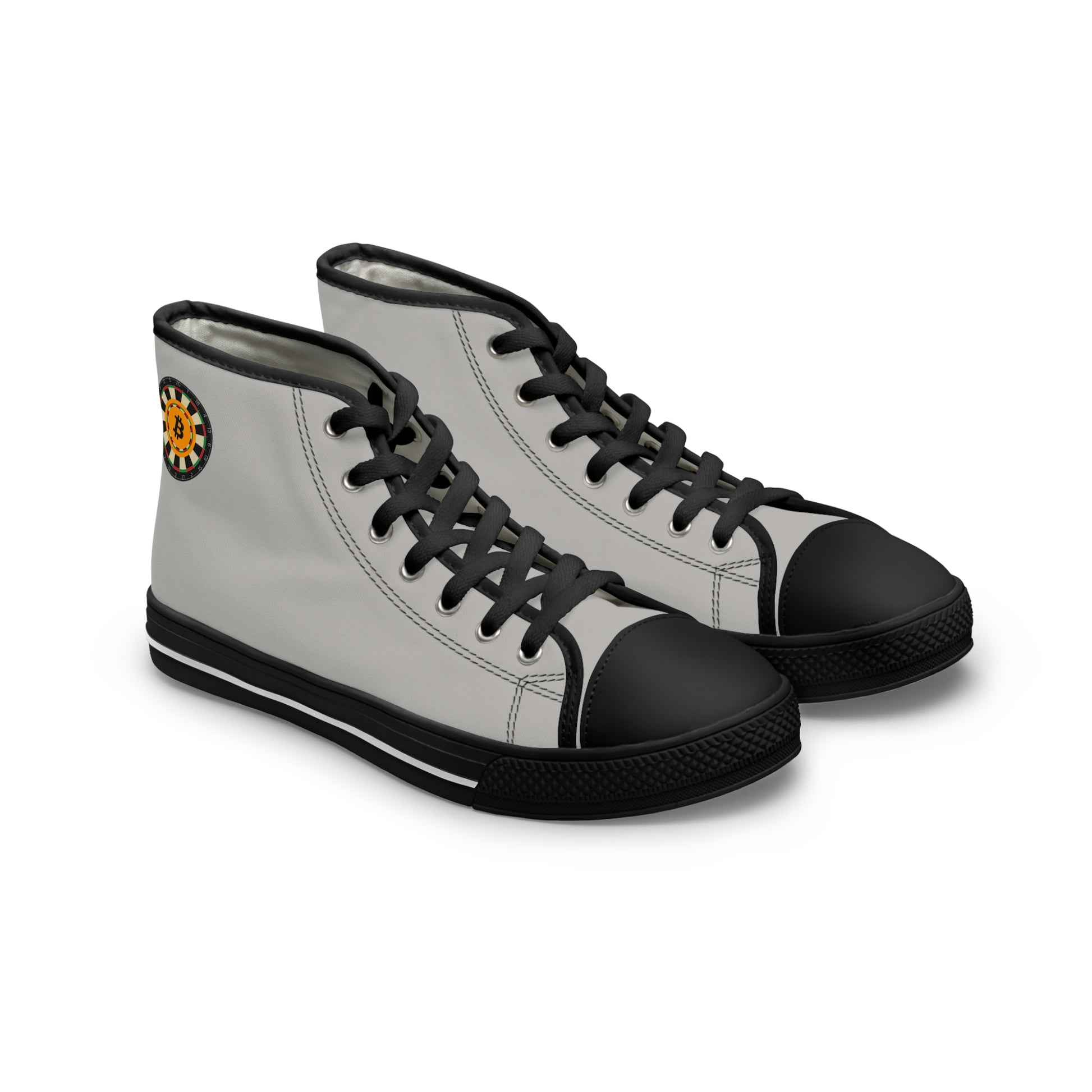 Made with breathable polyester canvas and featuring hi-poly deodorant memory foam insoles, these women's high top sneakers bear all the marks of an awesome shoe. Choose between black or white sole and laces, and enjoy the silver metal eyelets along with the lace-up closure. Add your designs and bring a bespoke staple to life.