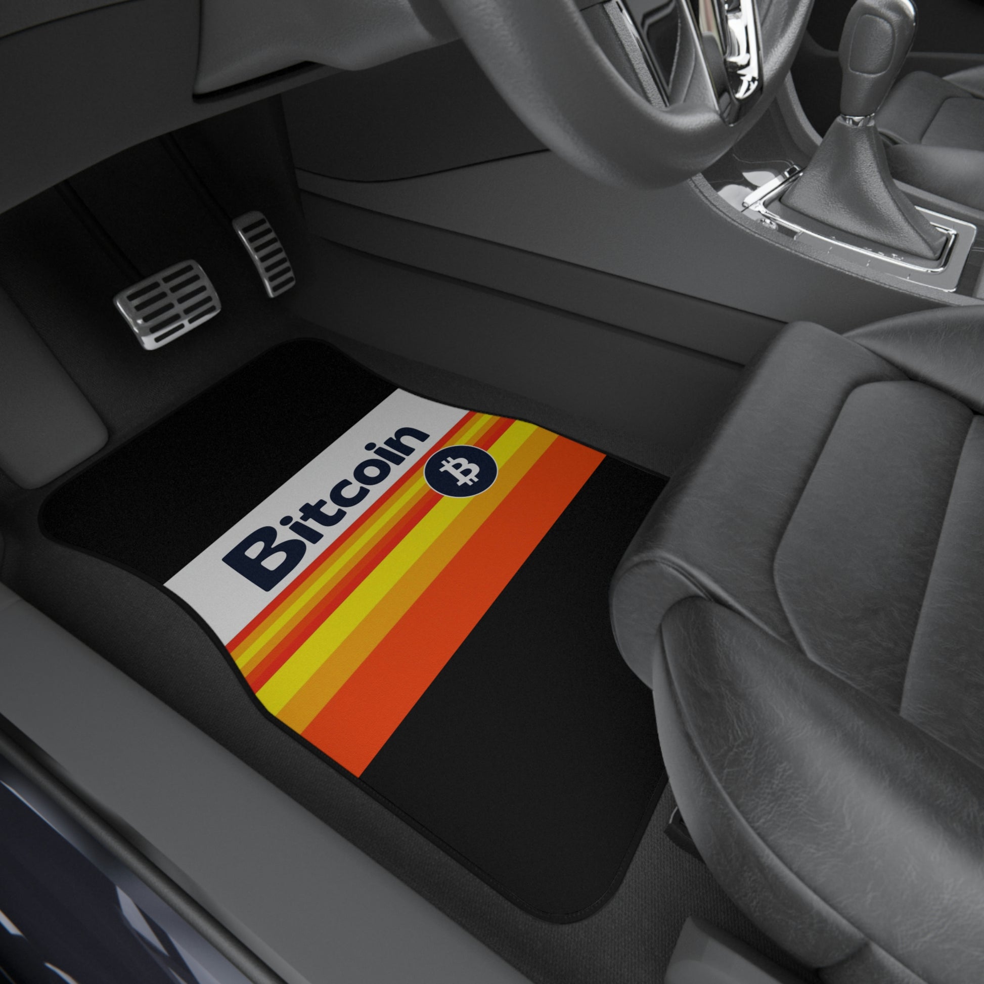 Here to add a custom touch of character to any car while showing off your interest in Bitcoin. Available in 2-packs, these car mats feature a non-slip rubber backing and a 20oz polyester needle punch surface.