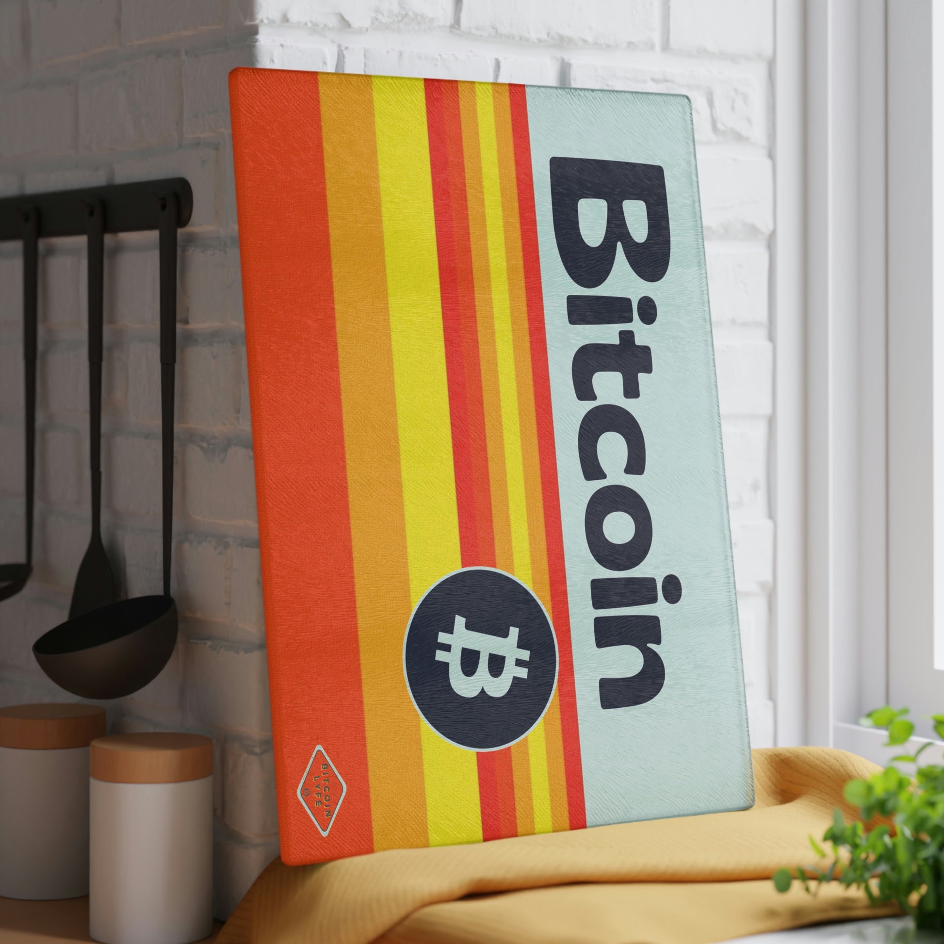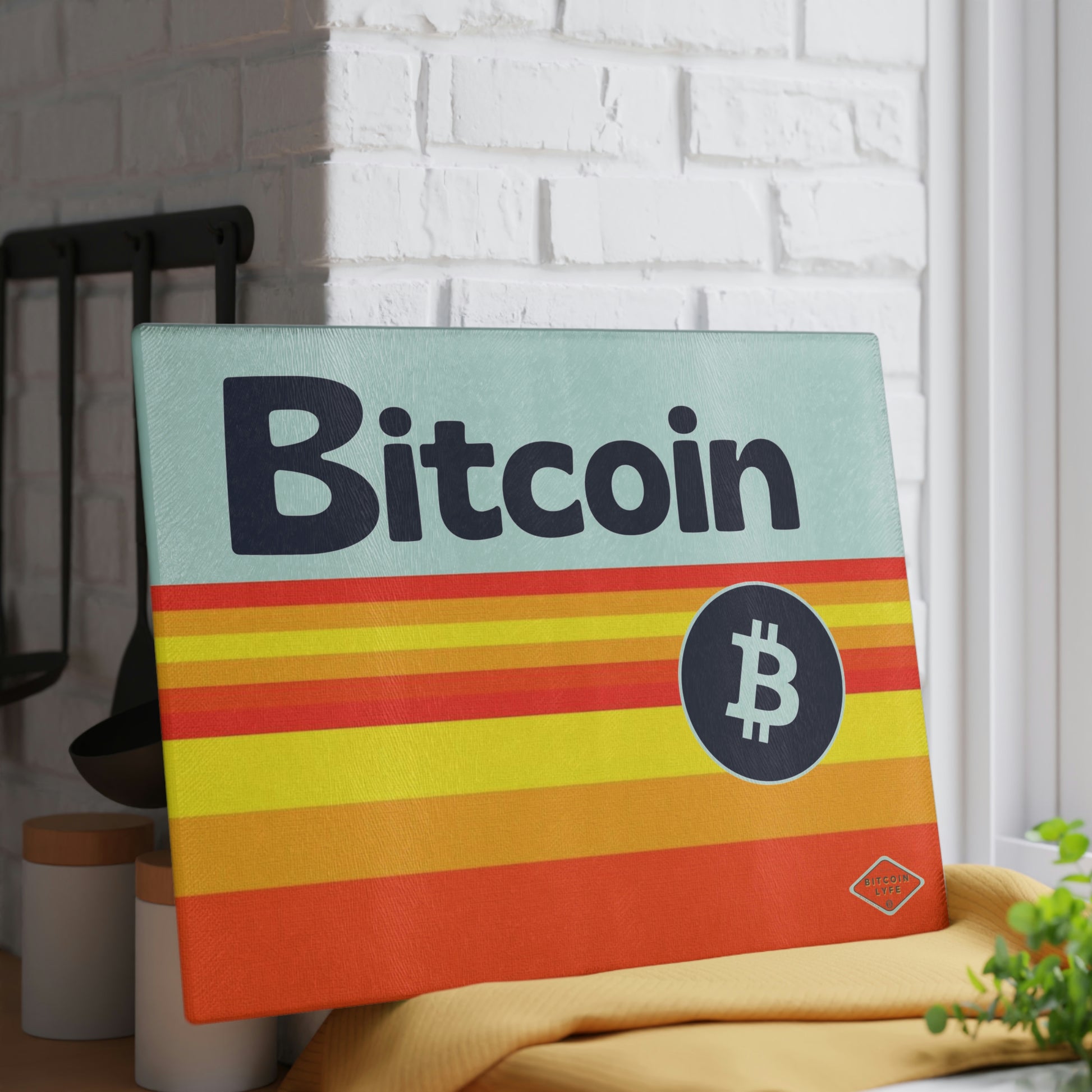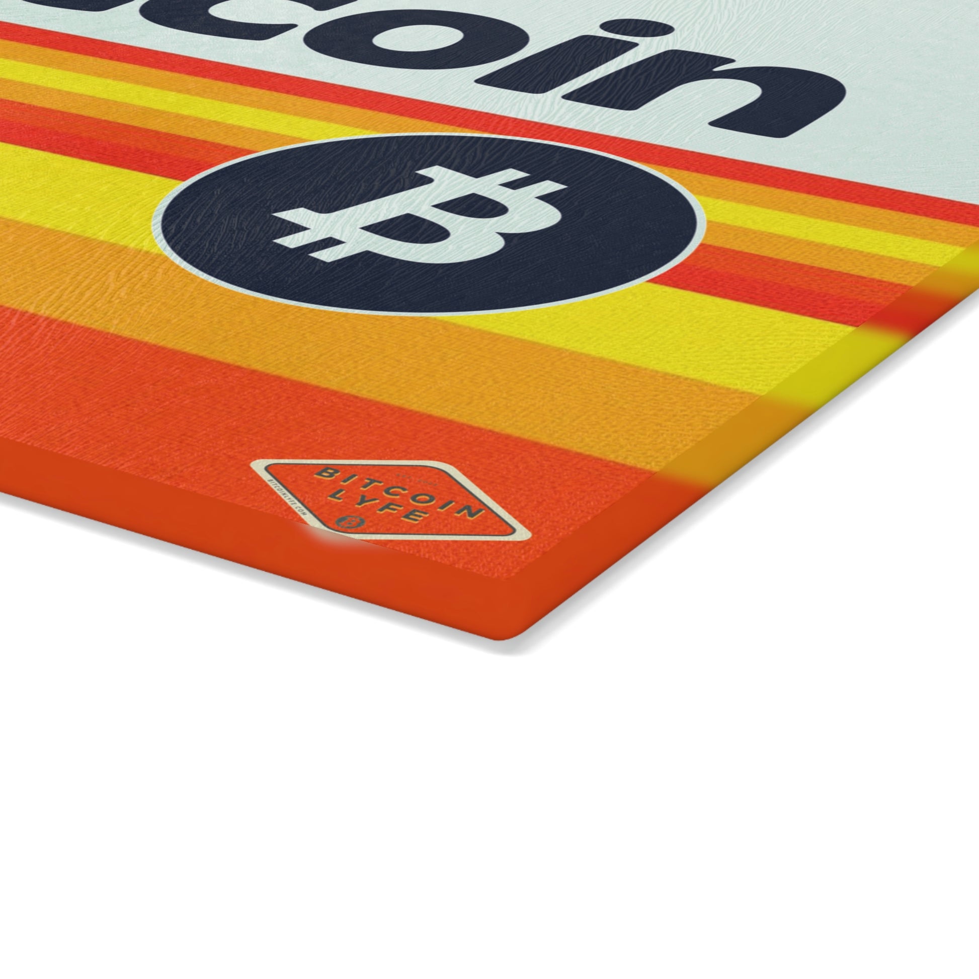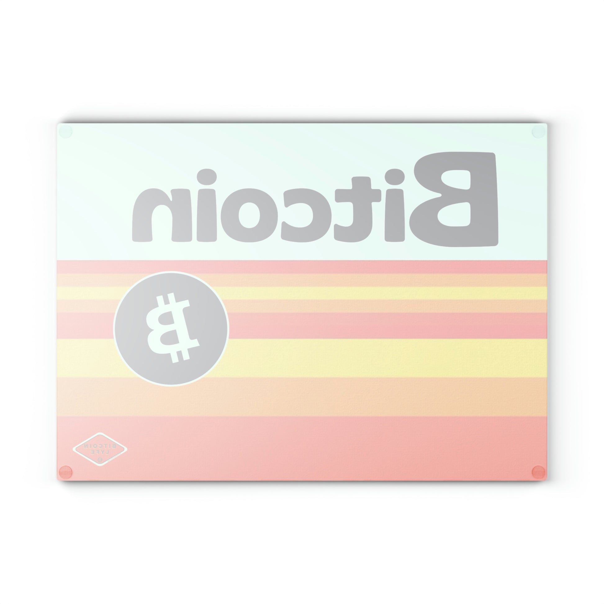 Bring a touch of character into any kitchen with this Bitcoin glass cutting board. Its tampered glass material is robust and helps prepare many a tasty meal for a long time to come. The textured surface makes it an ideal chopping, slicing, and dicing area. Available in two sizes: 8" x 11" and 11" x 15".