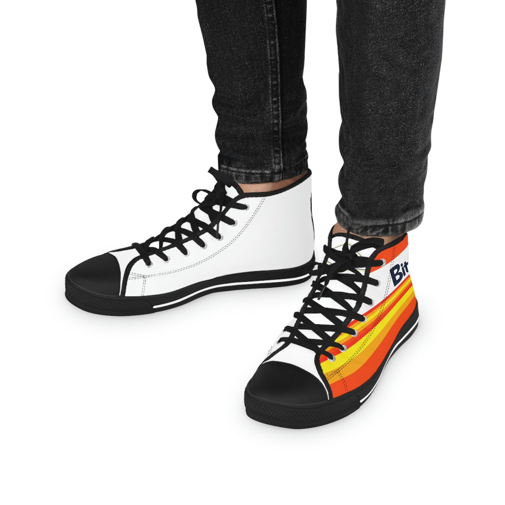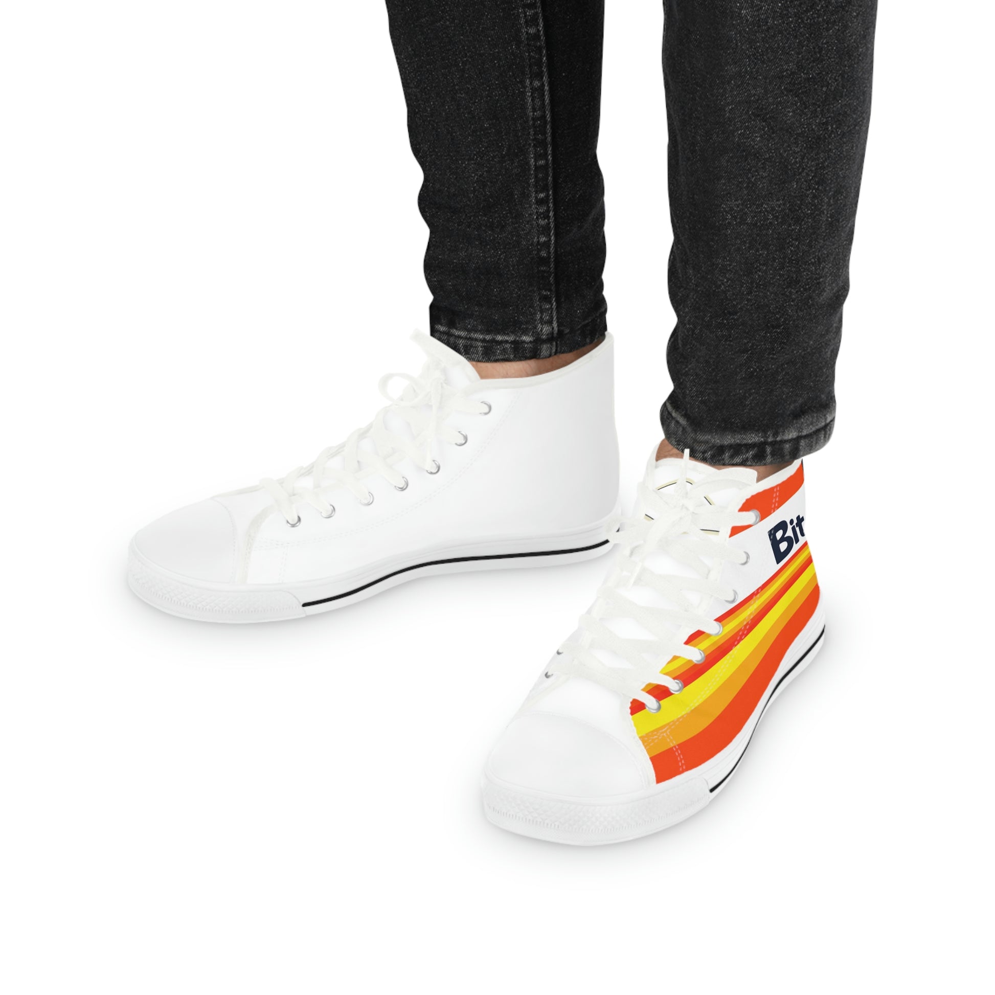 Made with breathable polyester canvas and featuring hi-poly deodorant memory foam insoles, these high top sneakers for men bear all the marks of an awesome shoe. Choose between black or white sole and laces, and enjoy the silver metal eyelets along with the lace-up closure.