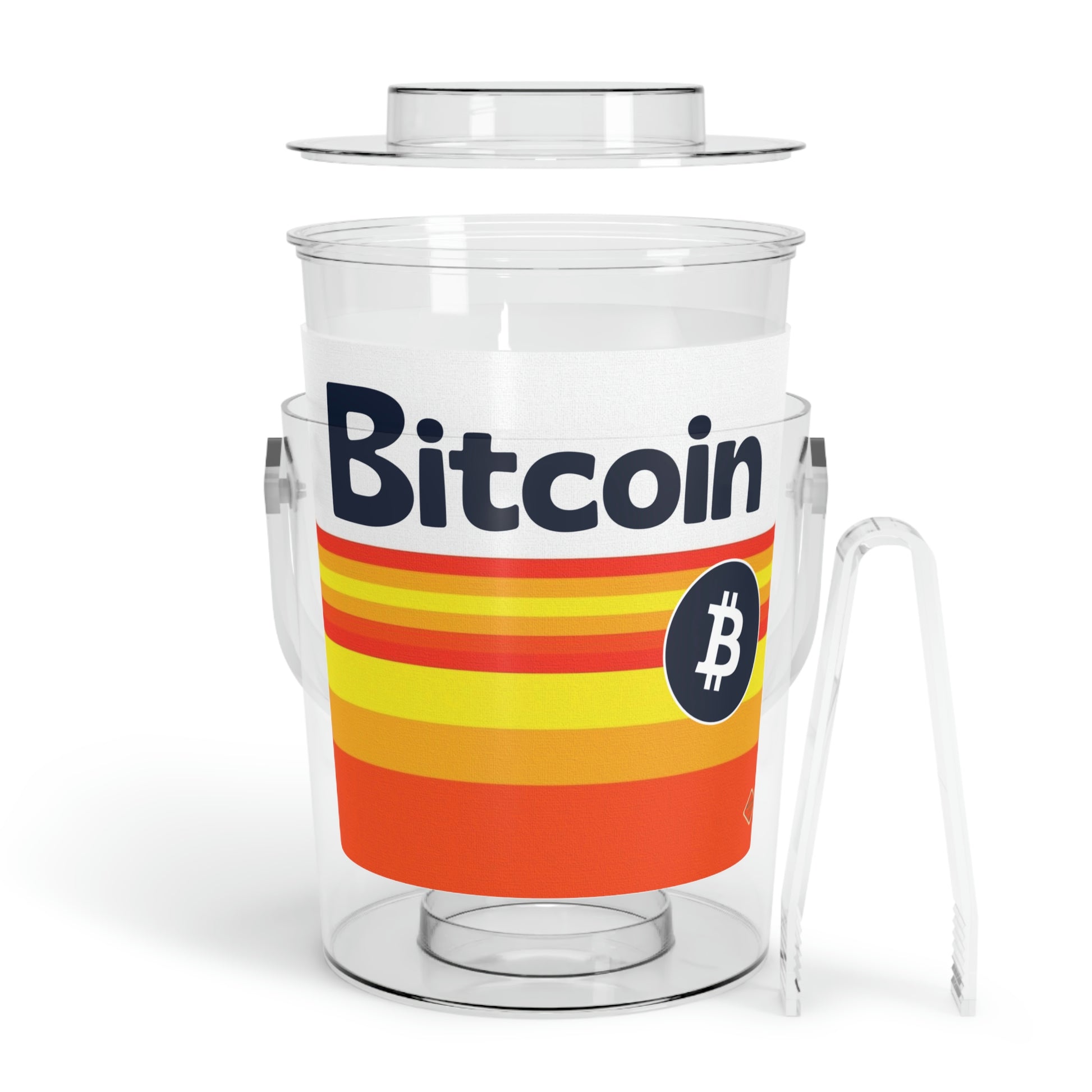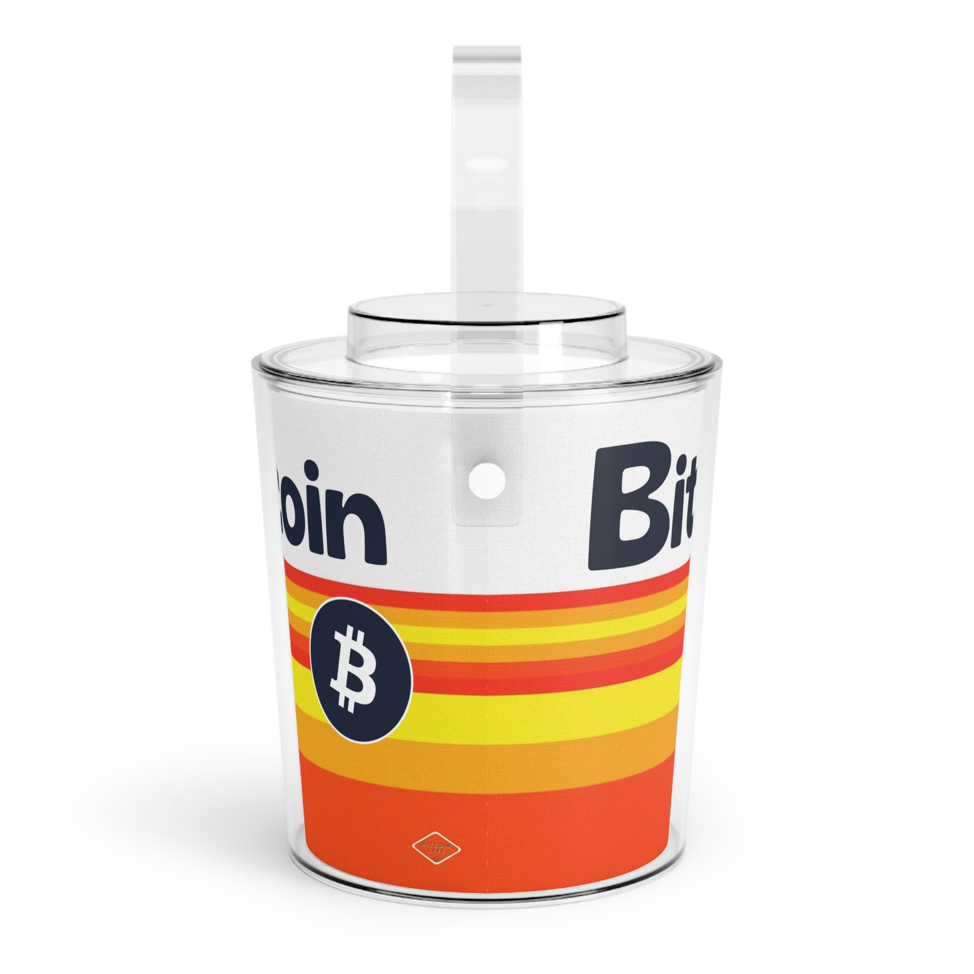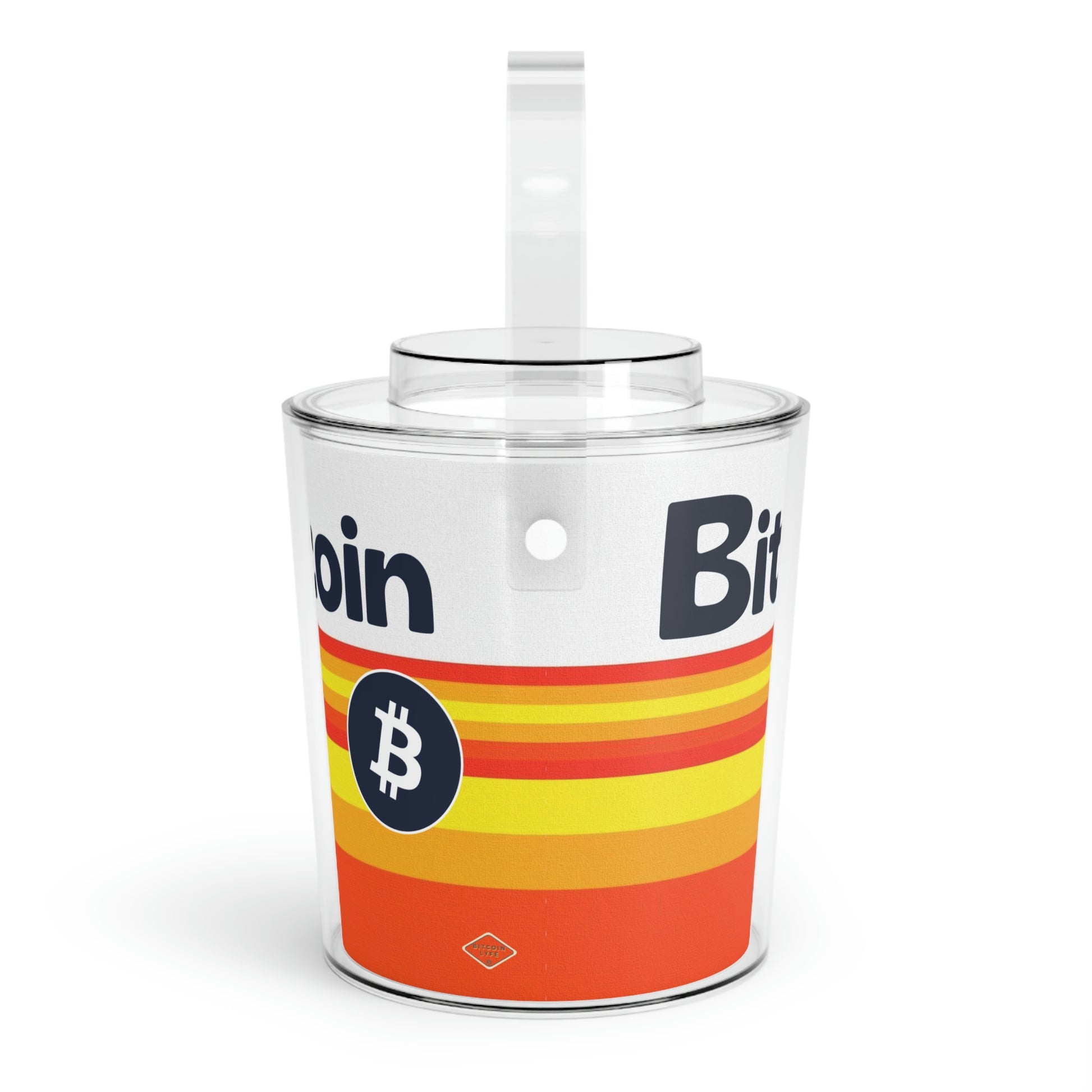 Add this Bitcoin touch to any gathering that requires frosty beverages. Each Bitcoin acrylic ice bucket comes with its own tongs and has a 3 QT (96oz) capacity. What's more, you also get an easily removable lid that adds convenient handling to the mix.