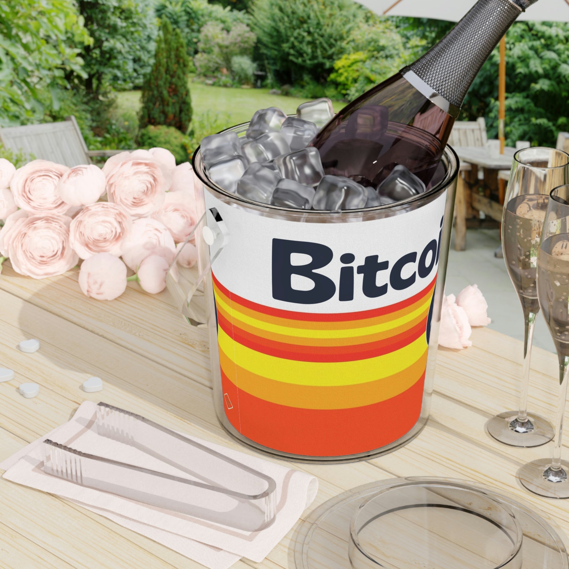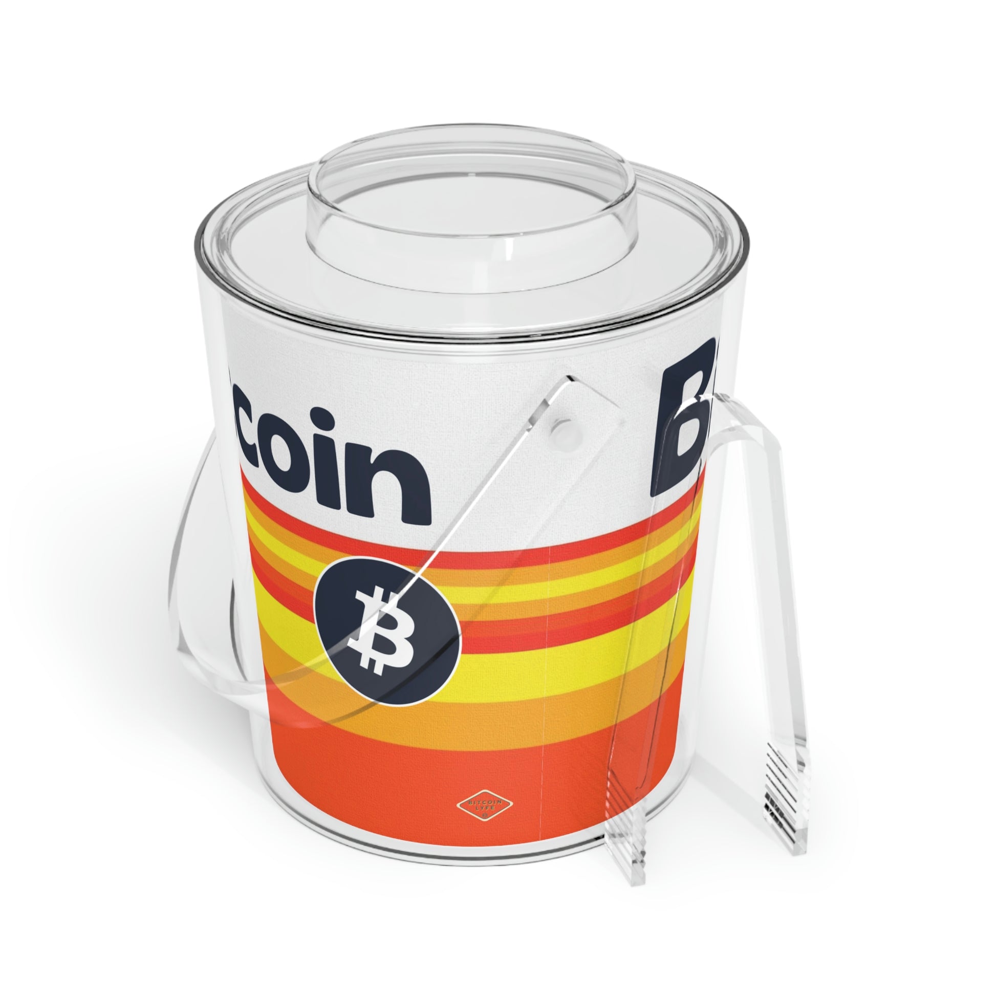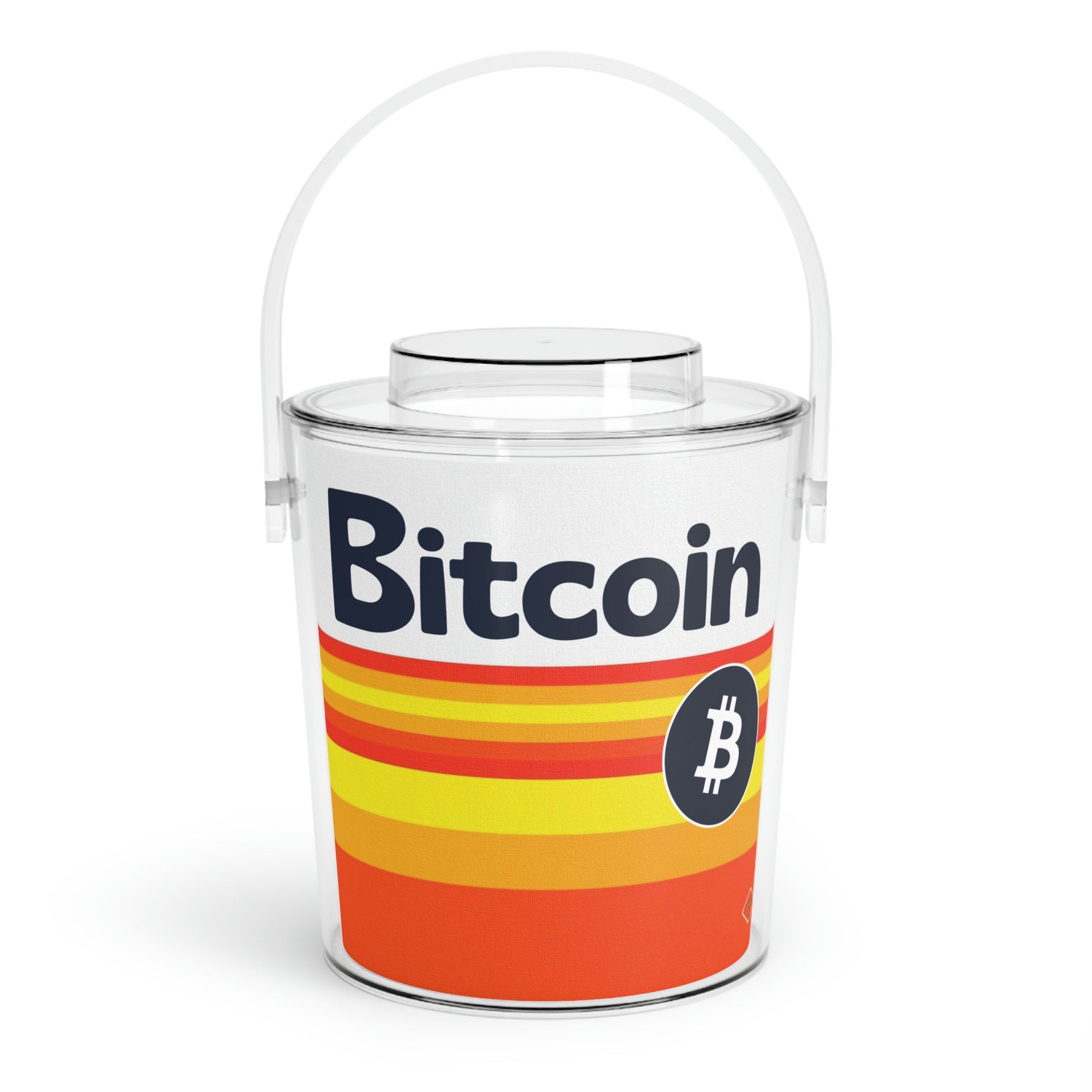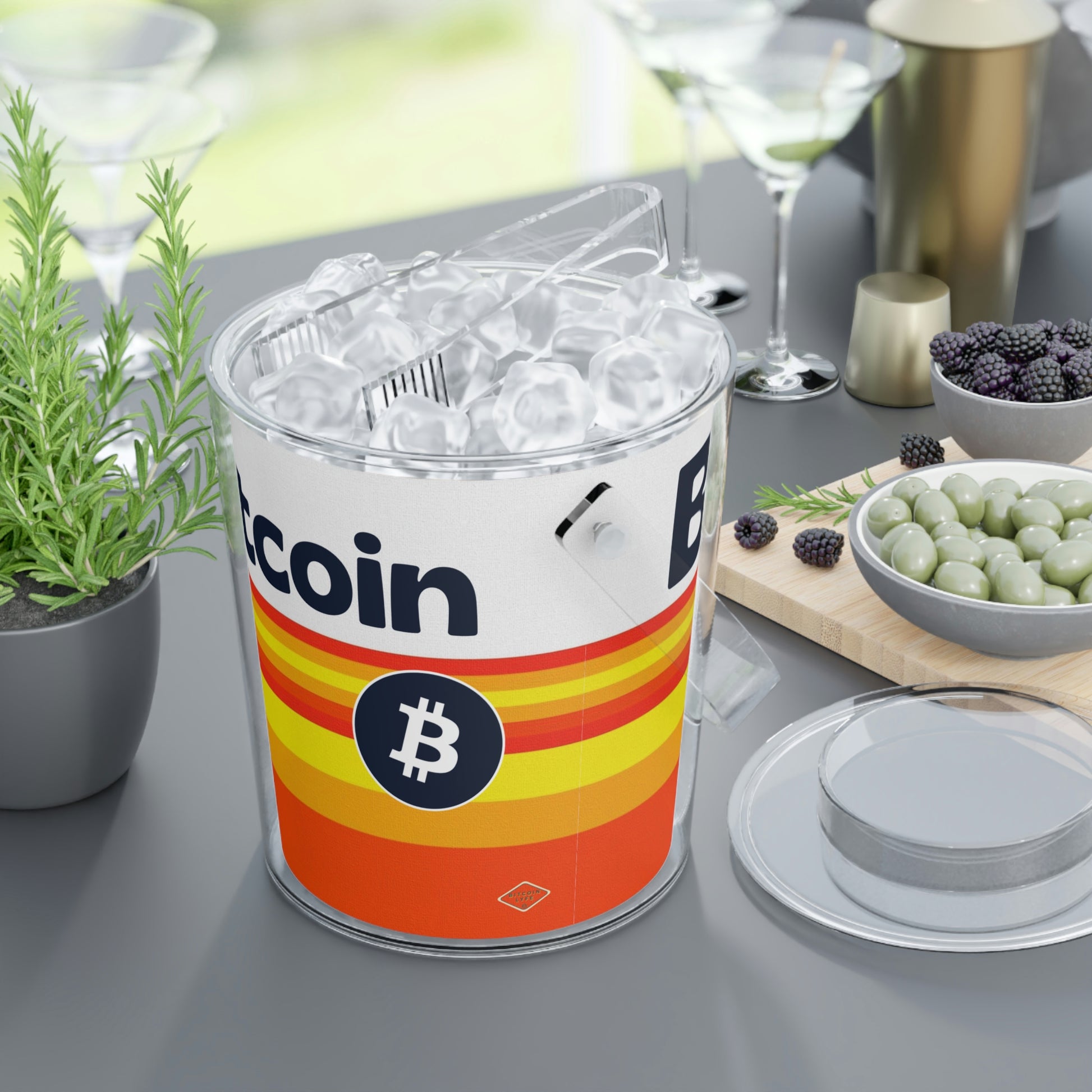 Add this Bitcoin touch to any gathering that requires frosty beverages. Each Bitcoin acrylic ice bucket comes with its own tongs and has a 3 QT (96oz) capacity. What's more, you also get an easily removable lid that adds convenient handling to the mix.