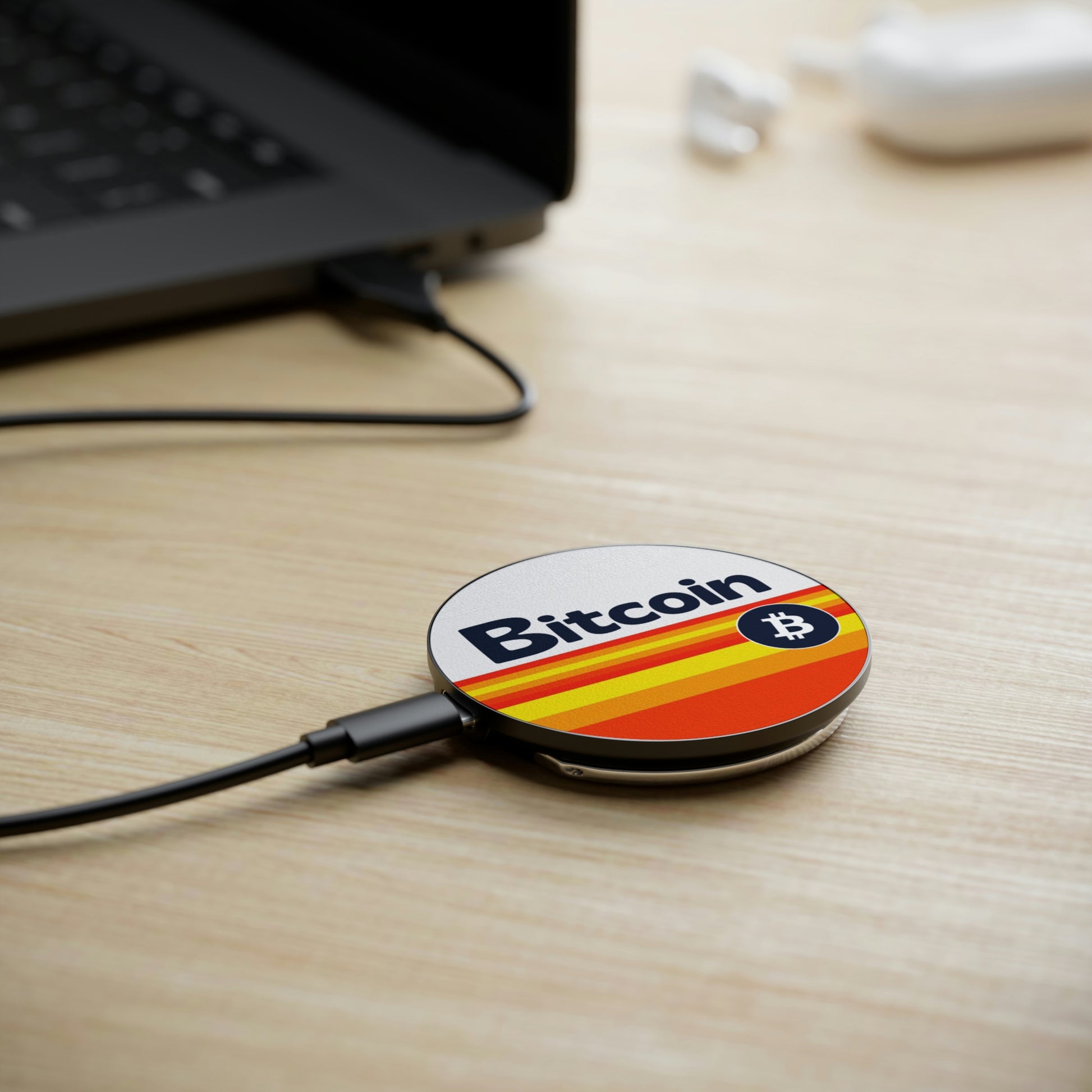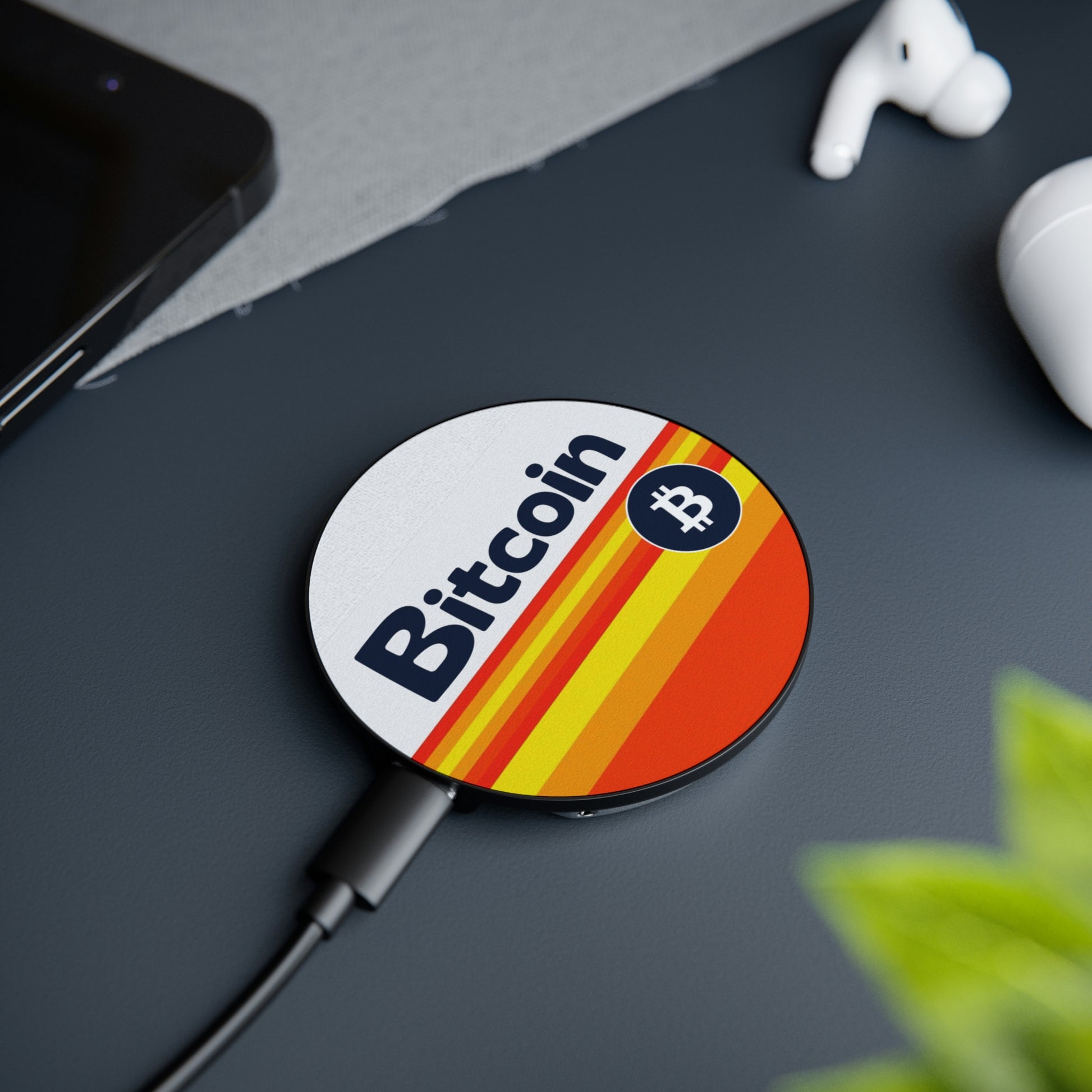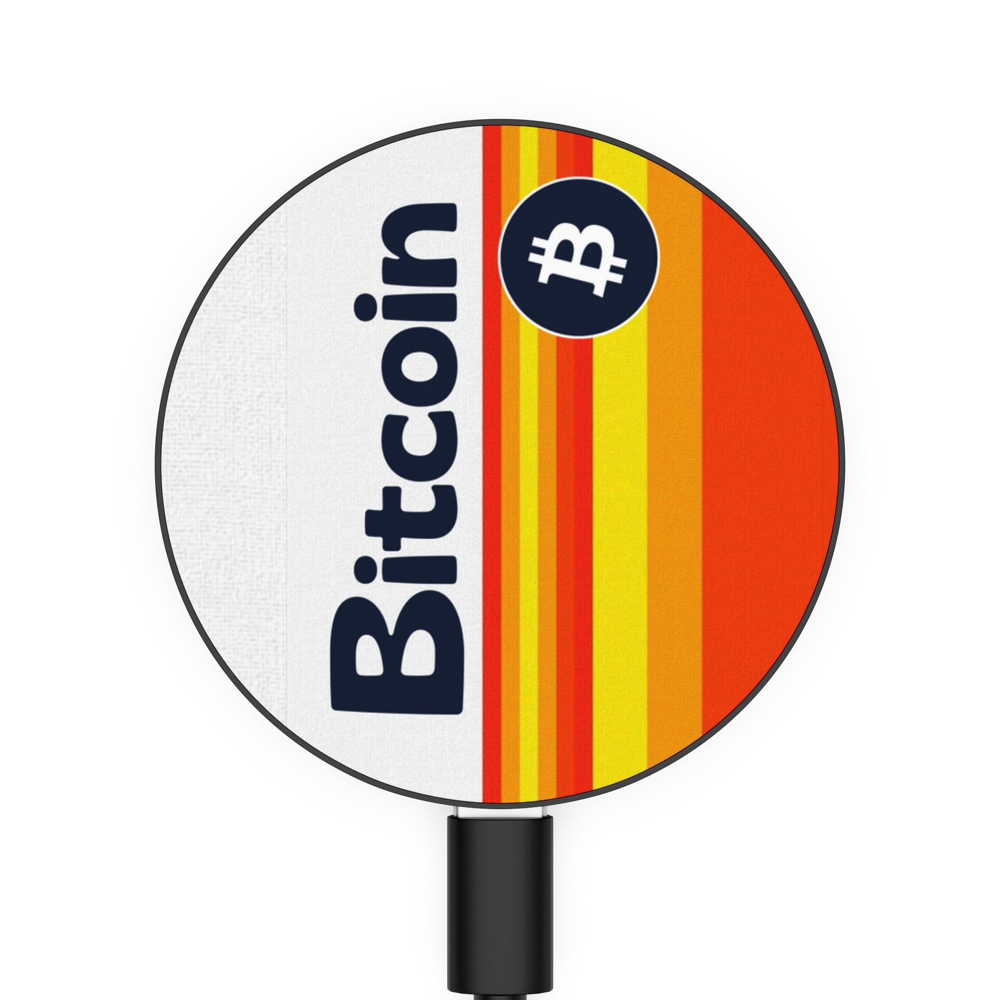 Created to satisfy gadget fans around the world, this customized wireless charger works universally with all wireless charging-compatible smartphones. With a slick black body, a matte white top, and a silver metal ring, it's a perfect way to subtlety plant a reminder of you conviction for Bitcoin in a tasteful and useful way. Comes with a built-in ring holder, supports Qi wireless charging standard and MagSafe function, and ships with a USB-C cable included.