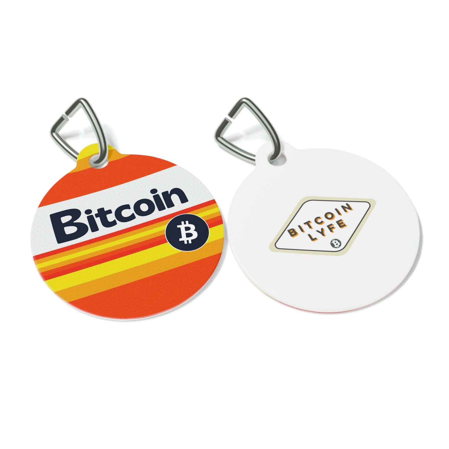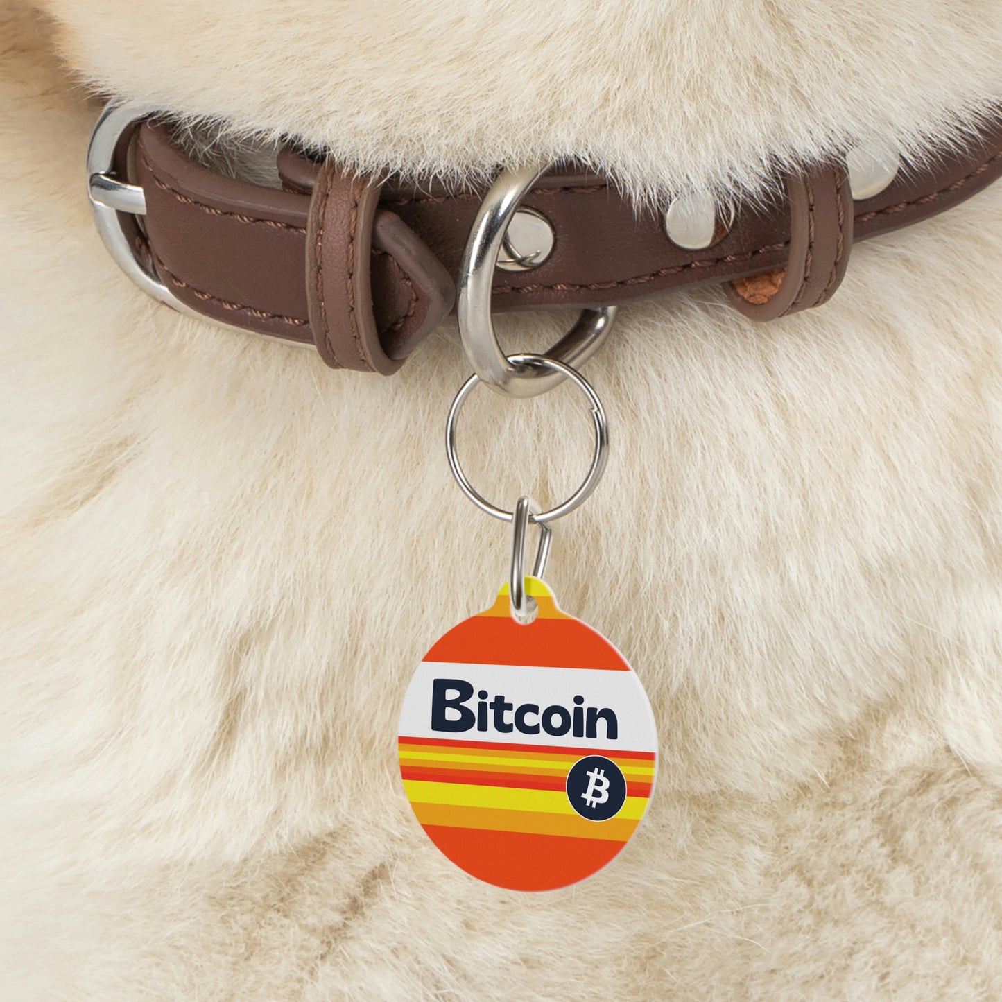 BItcoin pet tags provide a fresh way to spice up a furry friend's collar. The tag and clip are both made of metal. This increased durability comes in handy, as collar pieces can snag on brush, corners, etc.