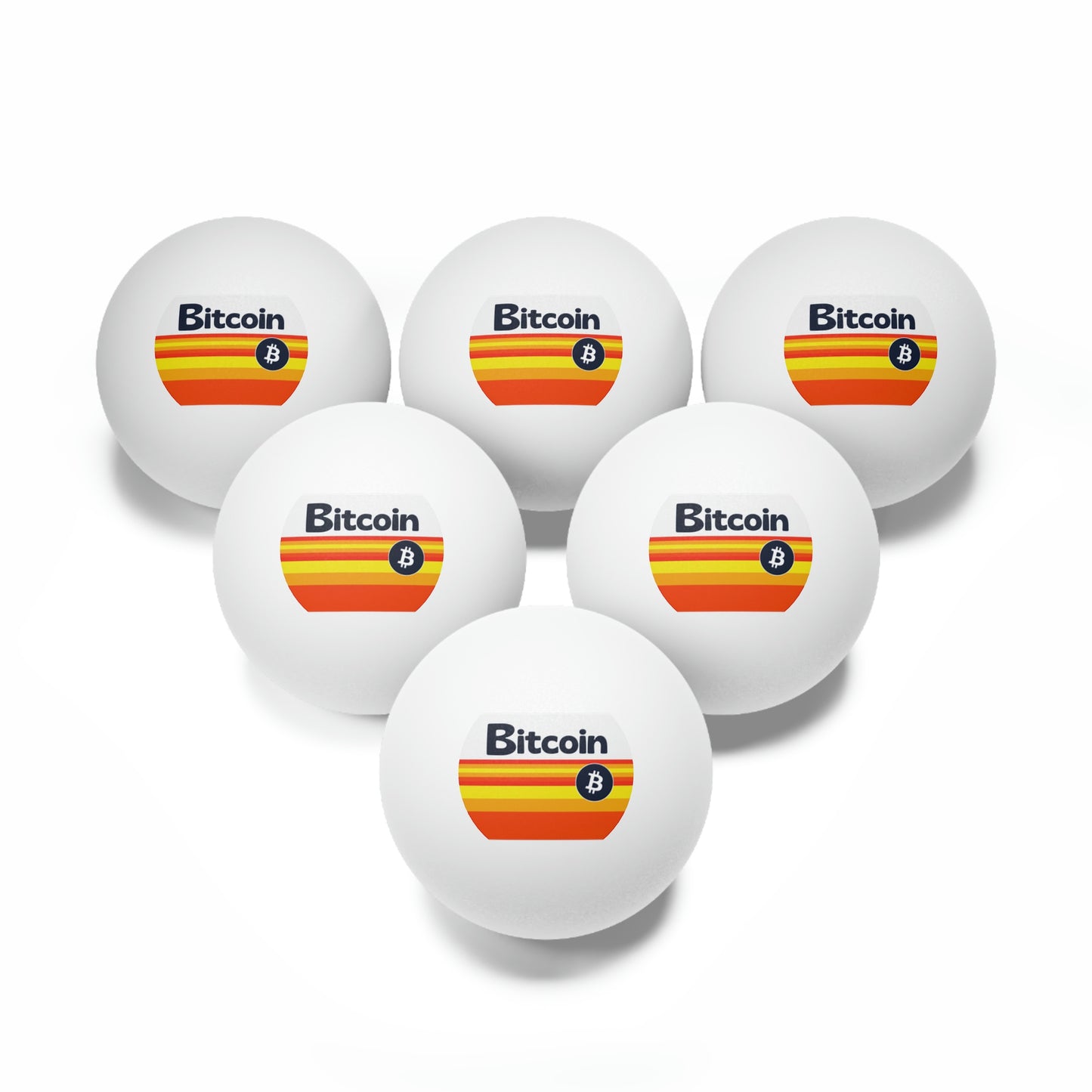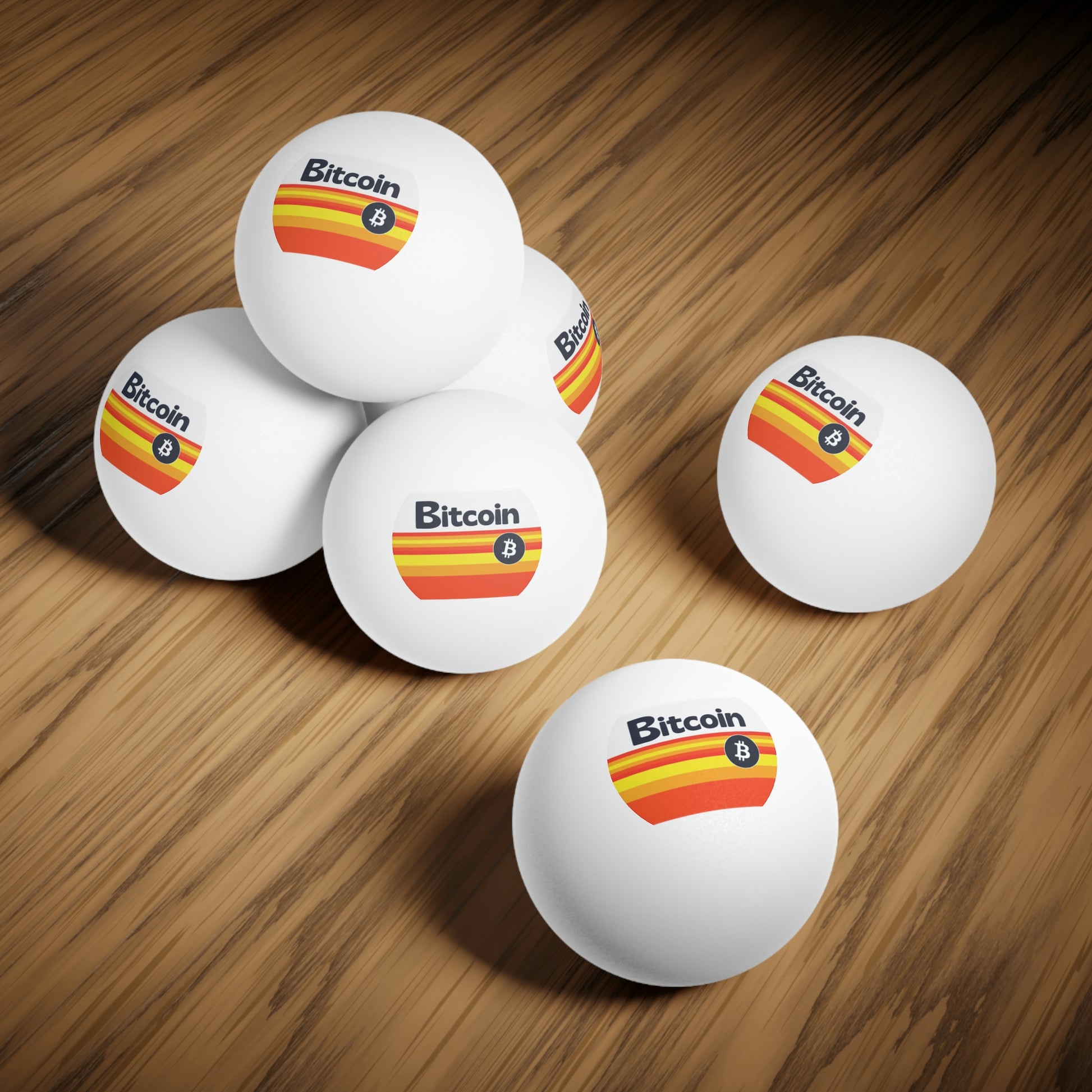 Ping pong games just got cooler, all thanks to these Bitcoin ping pong balls. Each set includes 6 ping pong balls. All balls measure in standard size (1.57") and are available in white or orange colors.