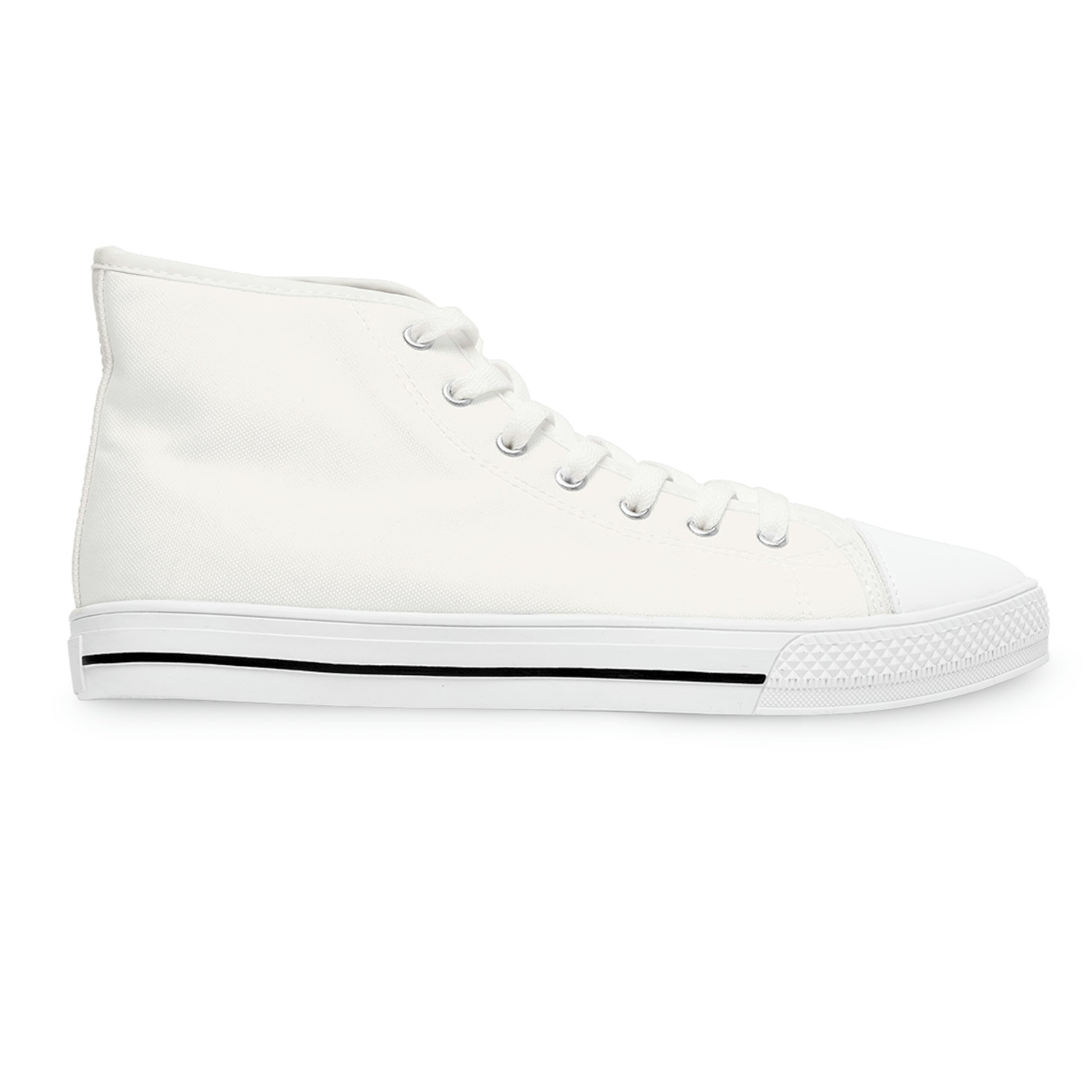 Made with breathable polyester canvas and featuring hi-poly deodorant memory foam insoles, these women's high top sneakers bear all the marks of an awesome shoe. Choose between black or white sole and laces, and enjoy the silver metal eyelets along with the lace-up closure. Add your designs and bring a bespoke staple to life.