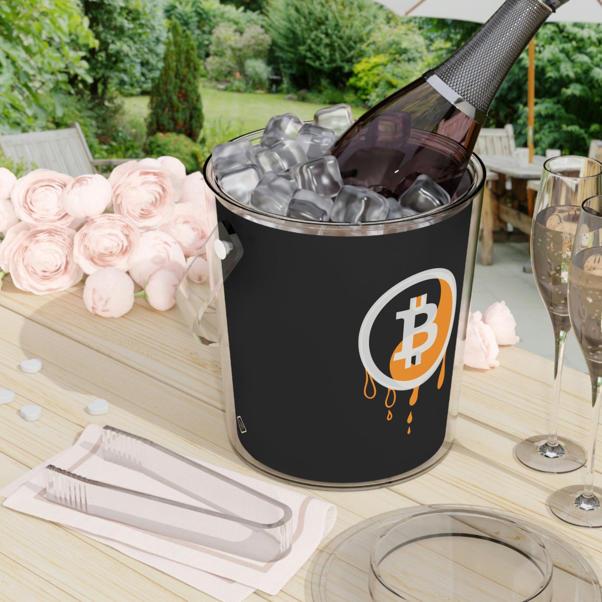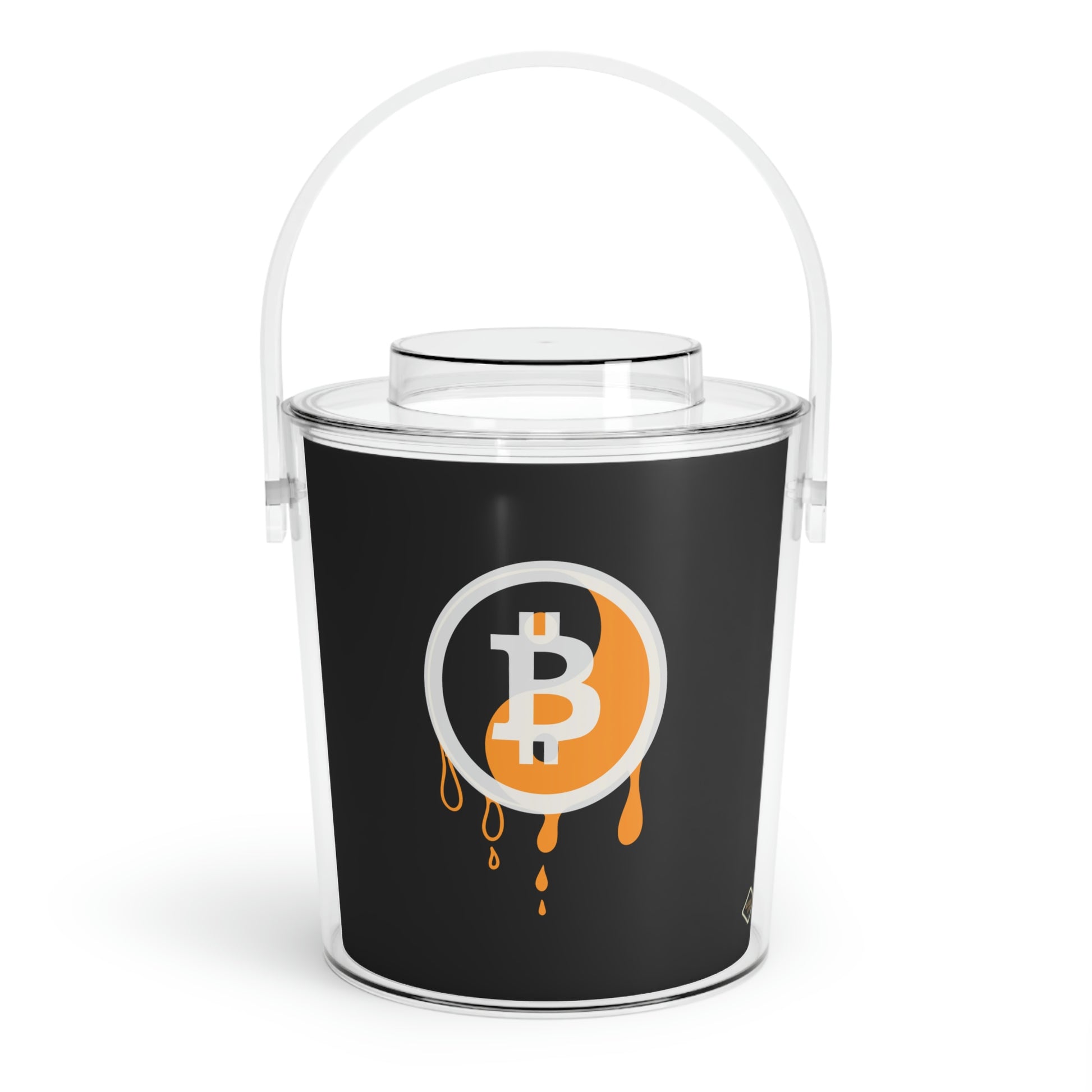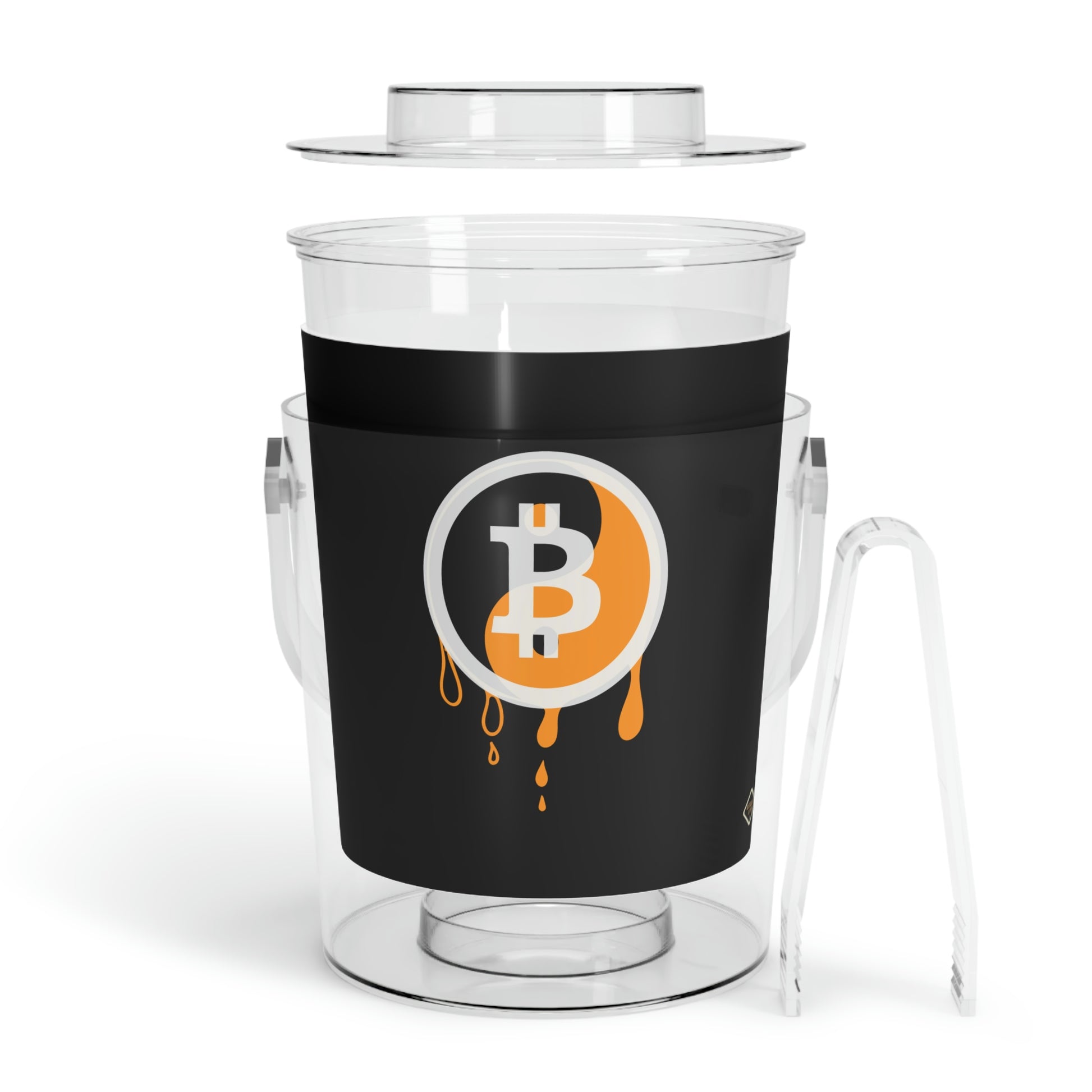 Add this Bitcoin touch to any gathering that requires frosty beverages. Each Bitcoin acrylic ice bucket comes with its own tongs and has a 3 QT (96oz) capacity. What's more, you also get an easily removable lid that adds convenient handling to the mix.