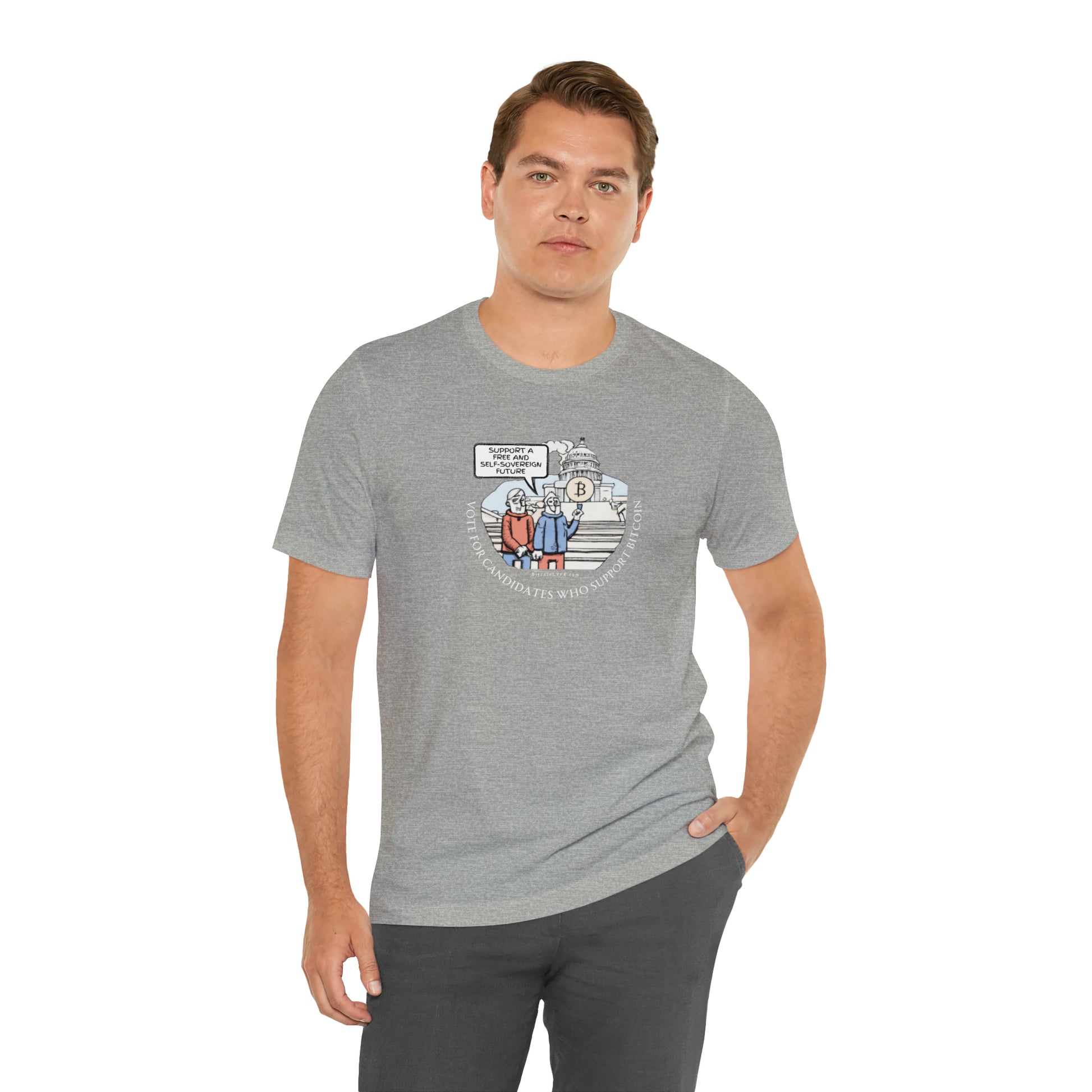 Make no mistake...Bitcoin is on the ballot! Show off your conviction in Bitcoin and help spread voter awareness about the importance to choose candidates that recognize the importance of Bitcoin. ...or just wear the t-shirt because it is comfortable and looks pretty cool! There reason for wearing is all yours, but we hope you like it!