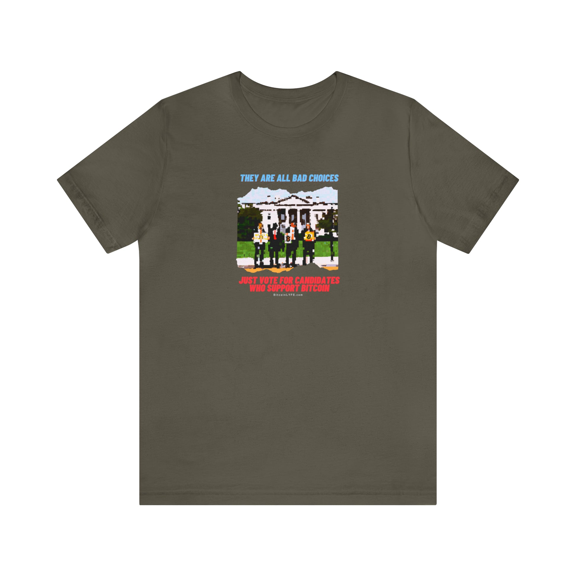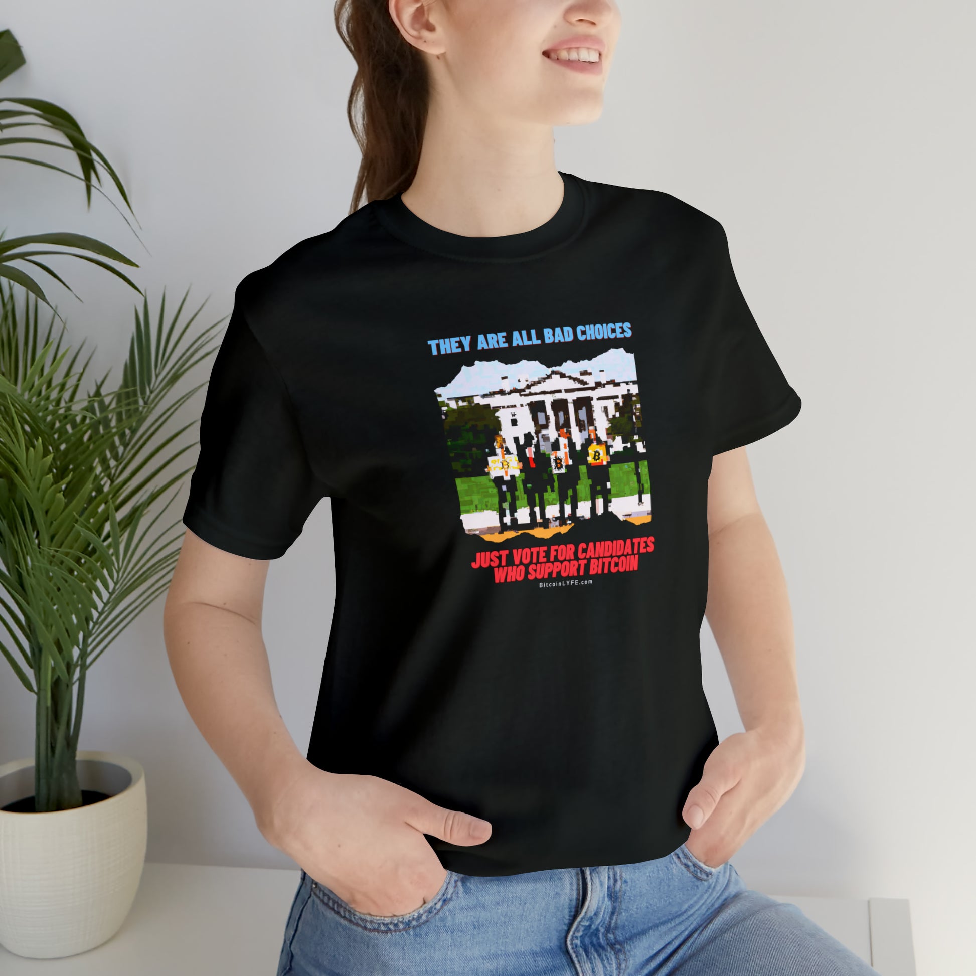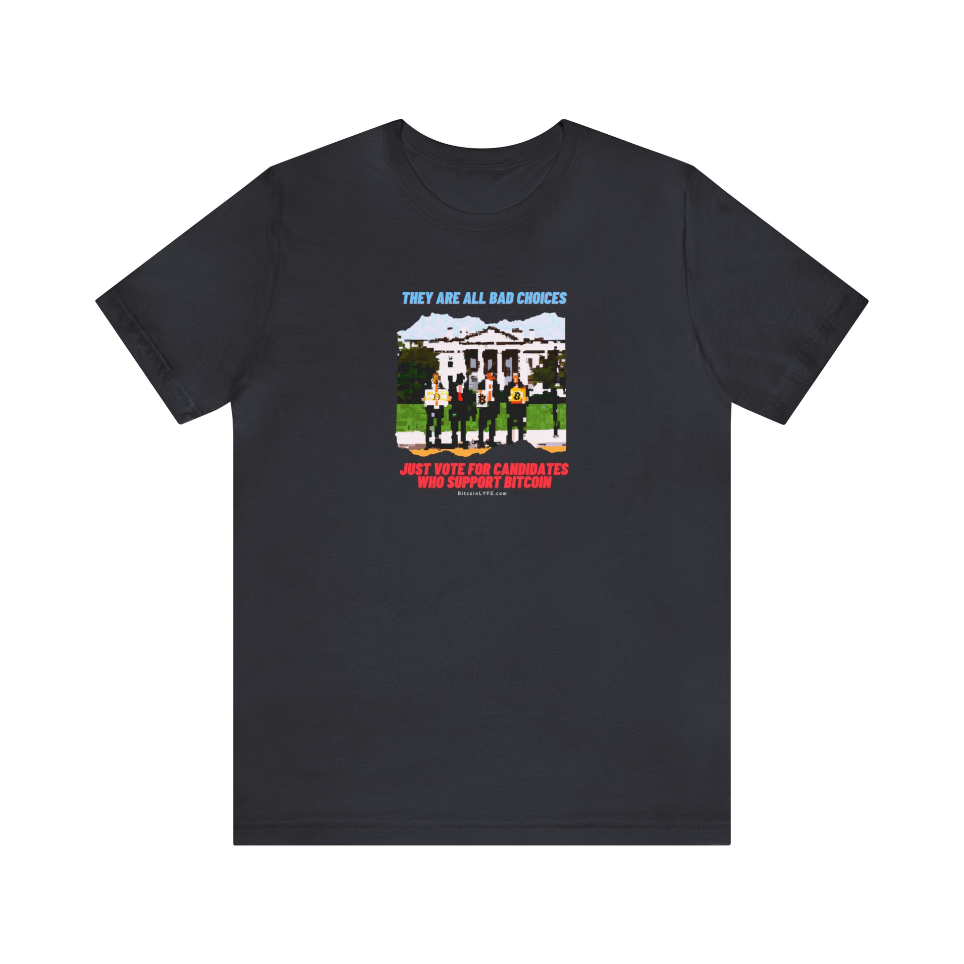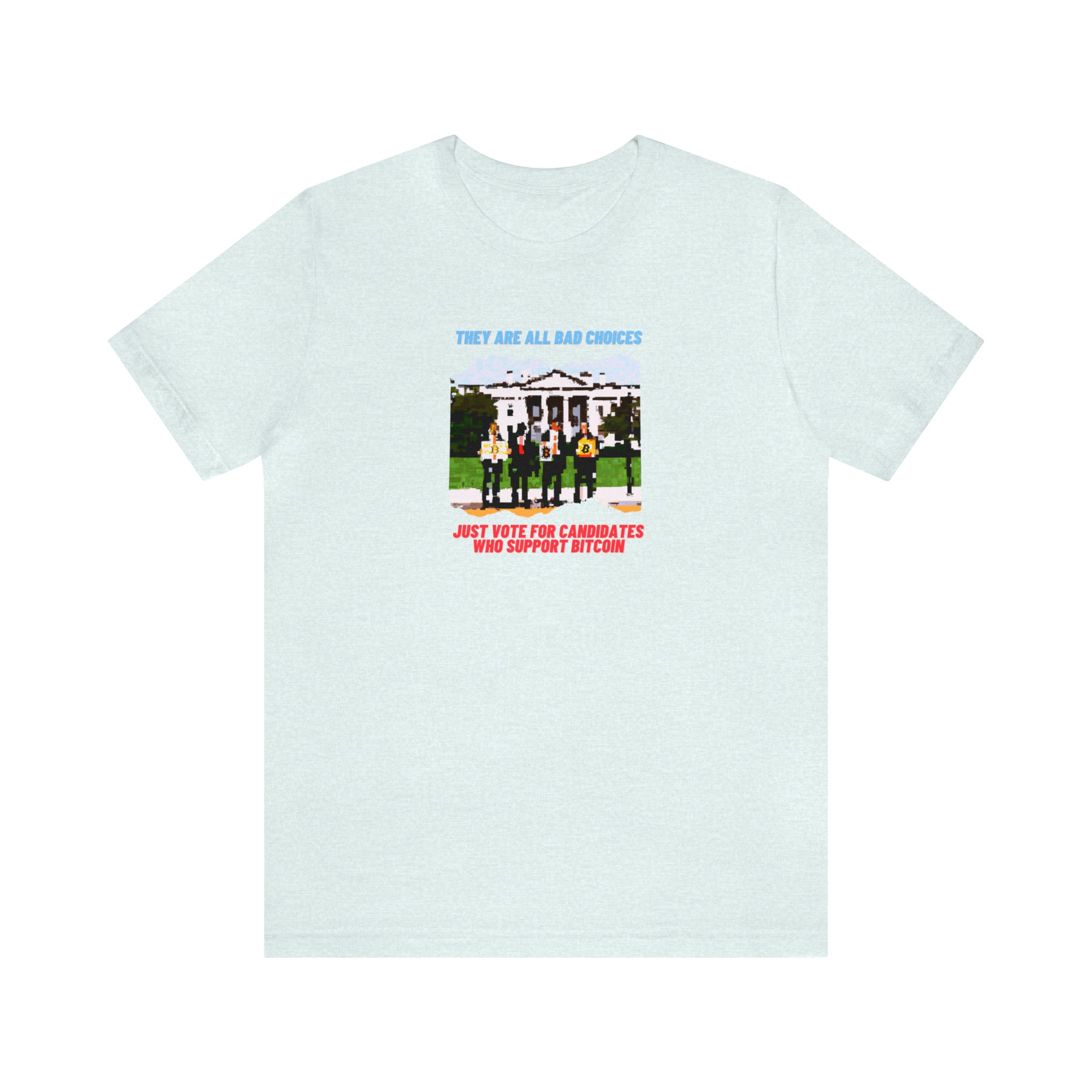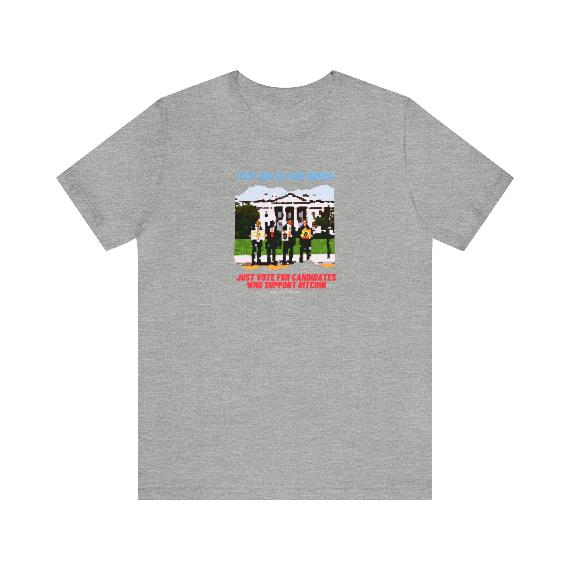 Make no mistake...Bitcoin is on the ballot! Show off your conviction in Bitcoin and help spread voter awareness about the importance to choose candidates that recognize the importance of Bitcoin. ...or just wear the t-shirt because it is comfortable and looks pretty cool! There reason for wearing is all yours, but we hope you like it!