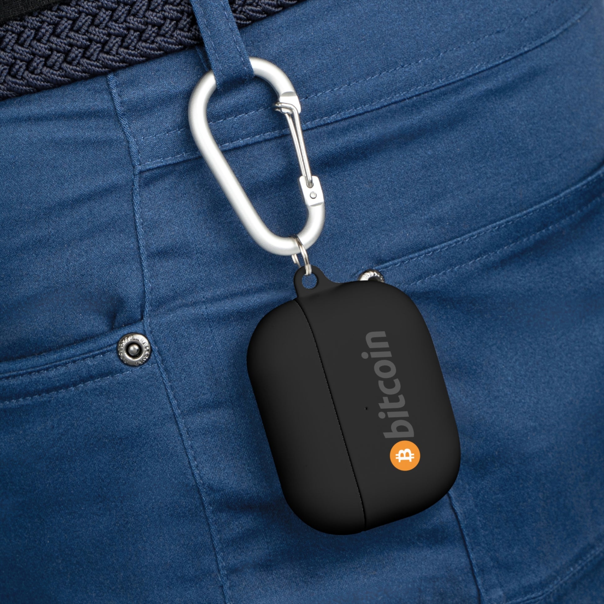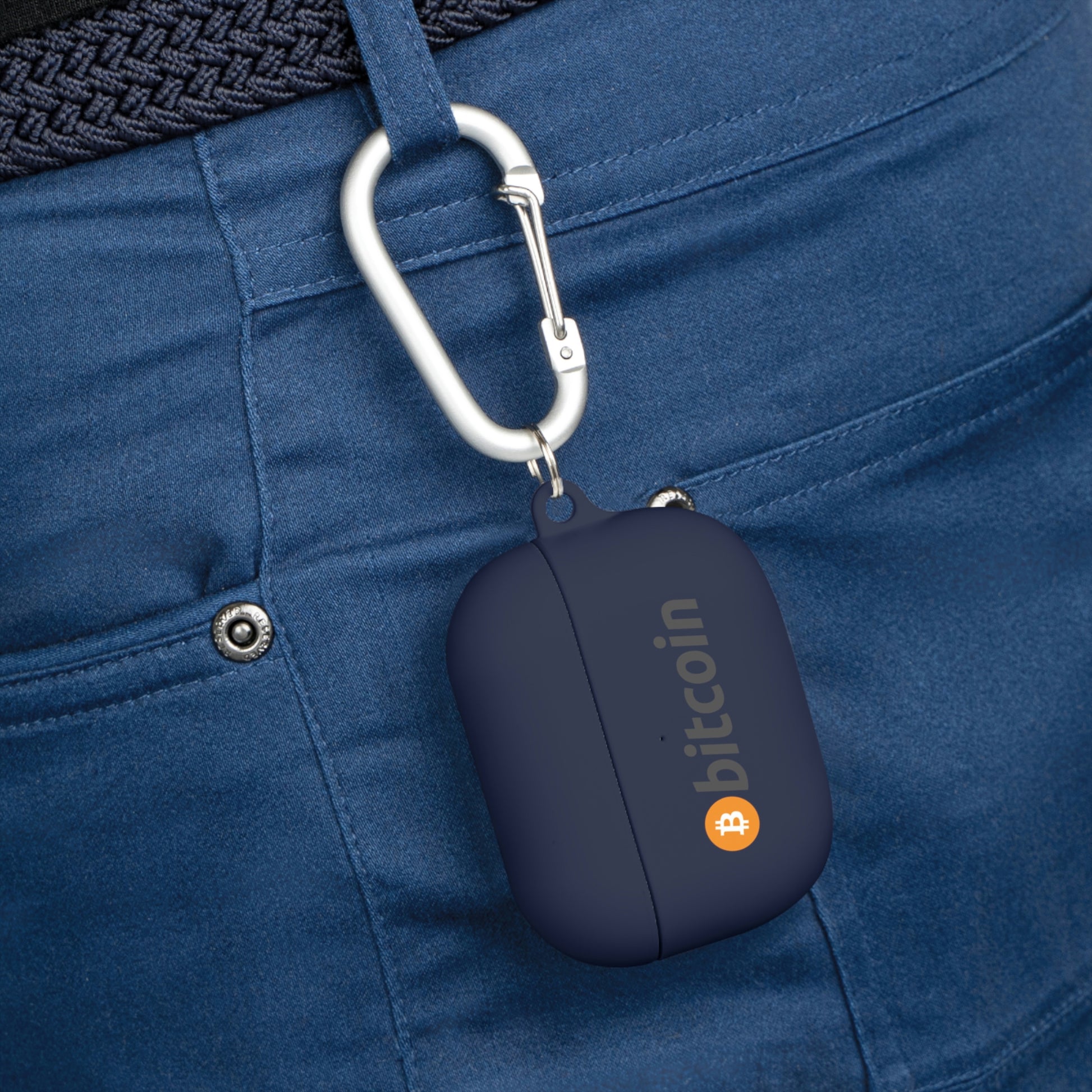 This custom Bitcoin AirPods cover safeguards your AirPods/AirPods Pro against bumps, scratches, and drops. With each Bitcoin AirPod case you also get a metal carabiner for secure, effortless transportation. Compatible with the regular and wireless charging case for Airpods and AirPods Pro. Both AirPod and Airpod Pro cases are available in 5x colors: White, Navy, Pink, Mint, and Black.