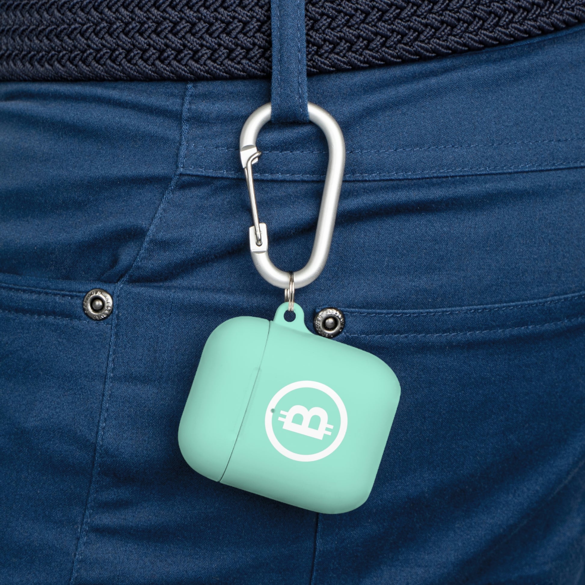 This custom Bitcoin AirPods cover safeguards your AirPods/AirPods Pro against bumps, scratches, and drops. With each Bitcoin AirPod case you also get a metal carabiner for secure, effortless transportation. Compatible with the regular and wireless charging case for Airpods and AirPods Pro. Both AirPod and Airpod Pro cases are available in 5x colors: White, Navy, Pink, Mint, and Black.