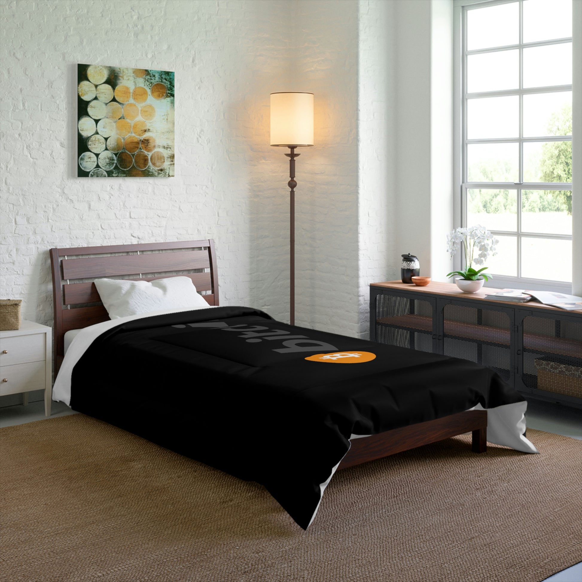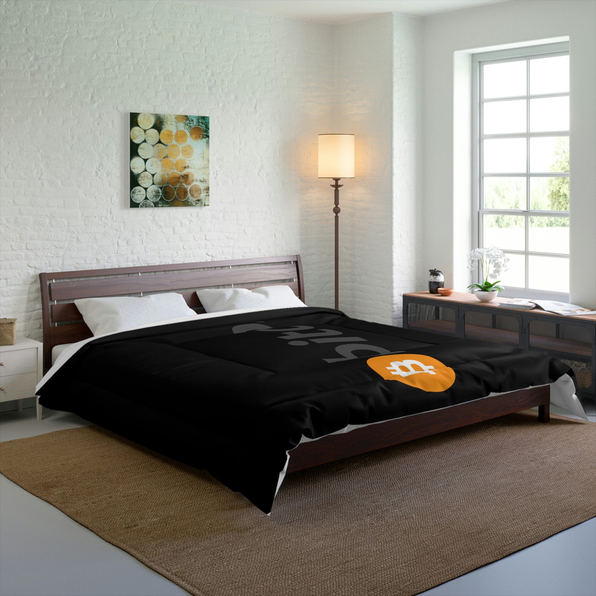 Comfy, fluffy, and warm. Cozy up underneath our snug comforter for a deep and relaxing sleep. This Bitcoin comforter is the perfect solution for cold days in bed with coffee, waiting for the morning light to peak through the window and wake up the house.