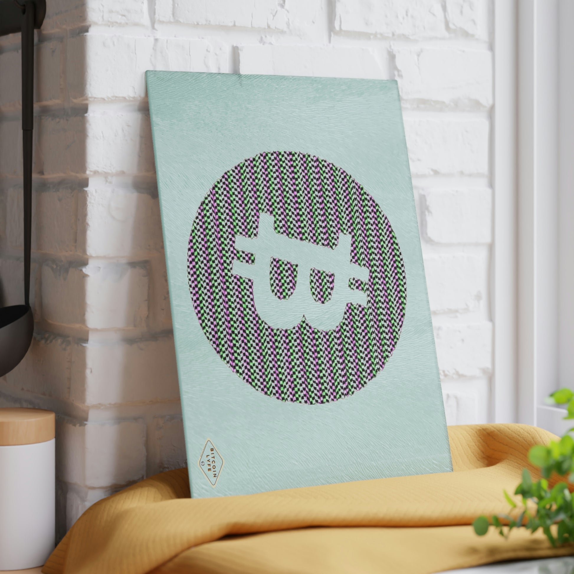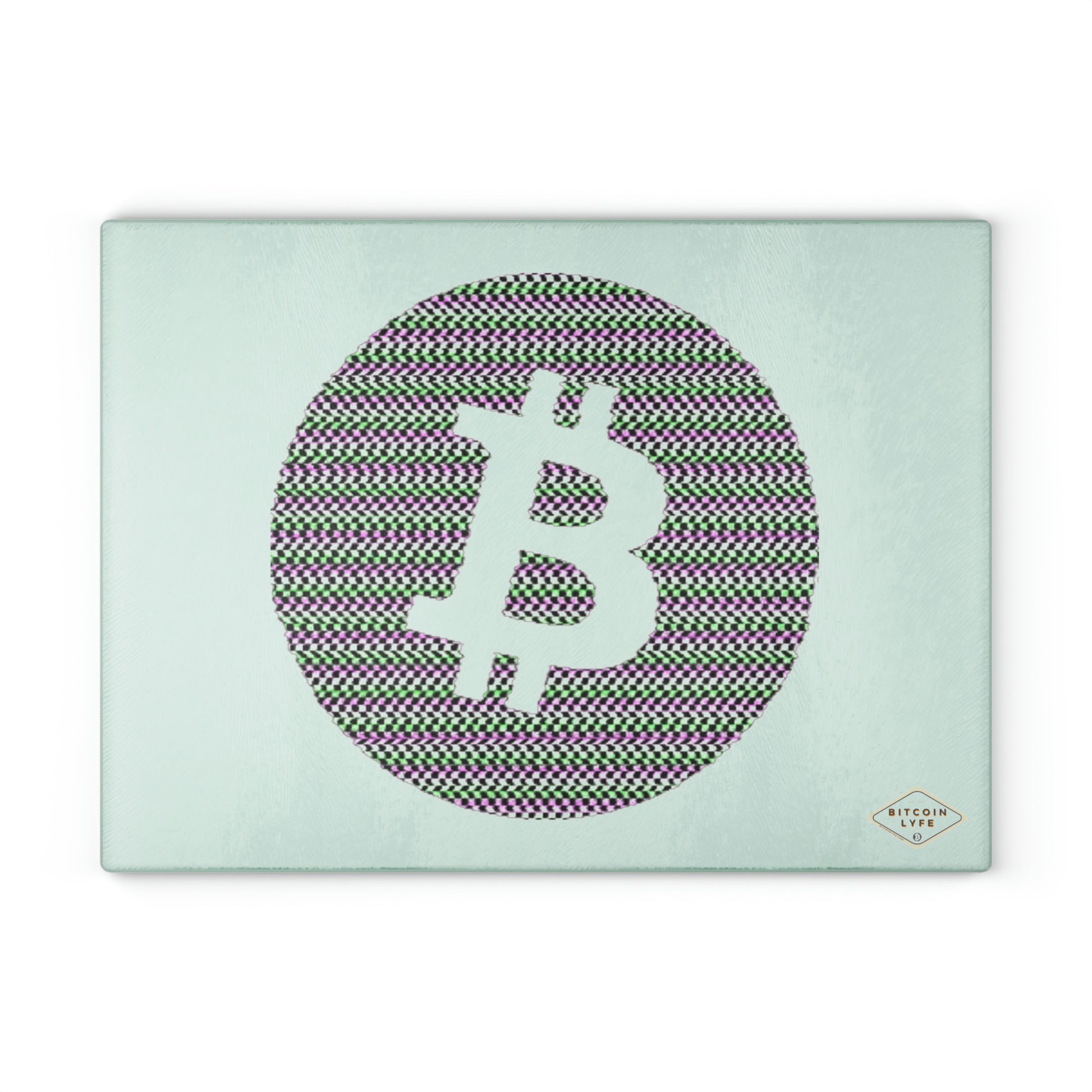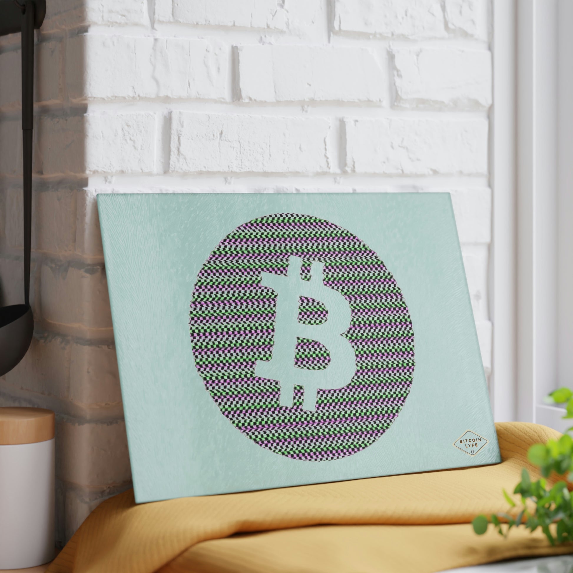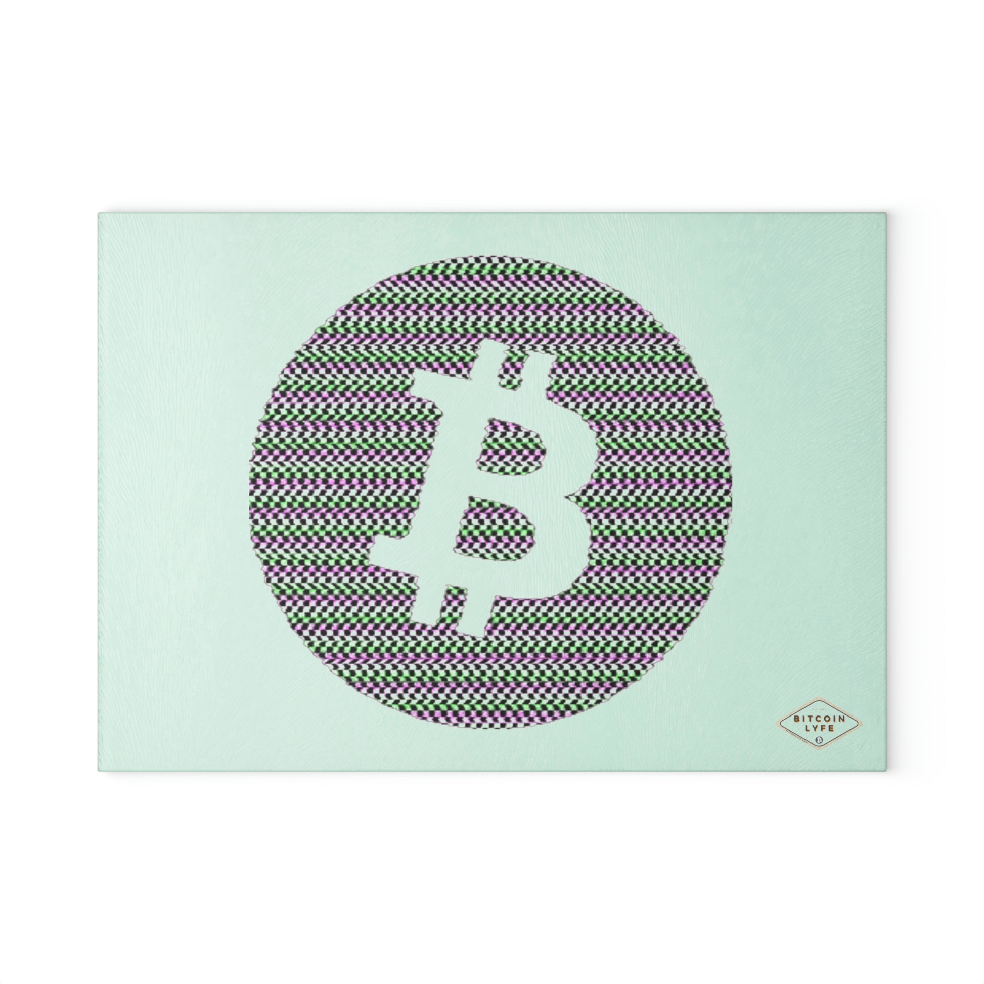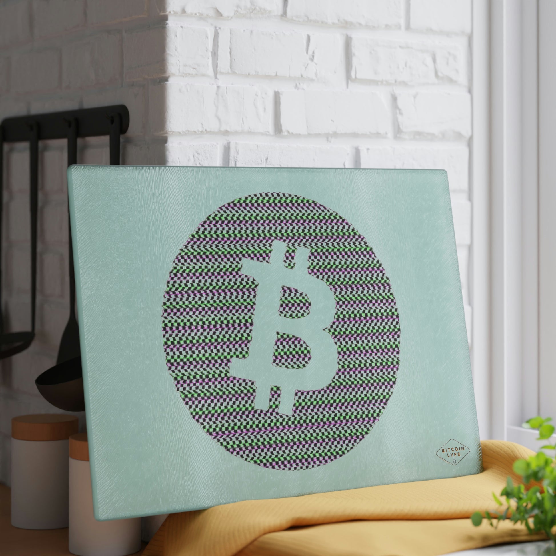 Bring a touch of character into any kitchen with this Bitcoin glass cutting board. Its tampered glass material is robust and helps prepare many a tasty meal for a long time to come. The textured surface makes it an ideal chopping, slicing, and dicing area. Available in two sizes: 8" x 11" and 11" x 15".