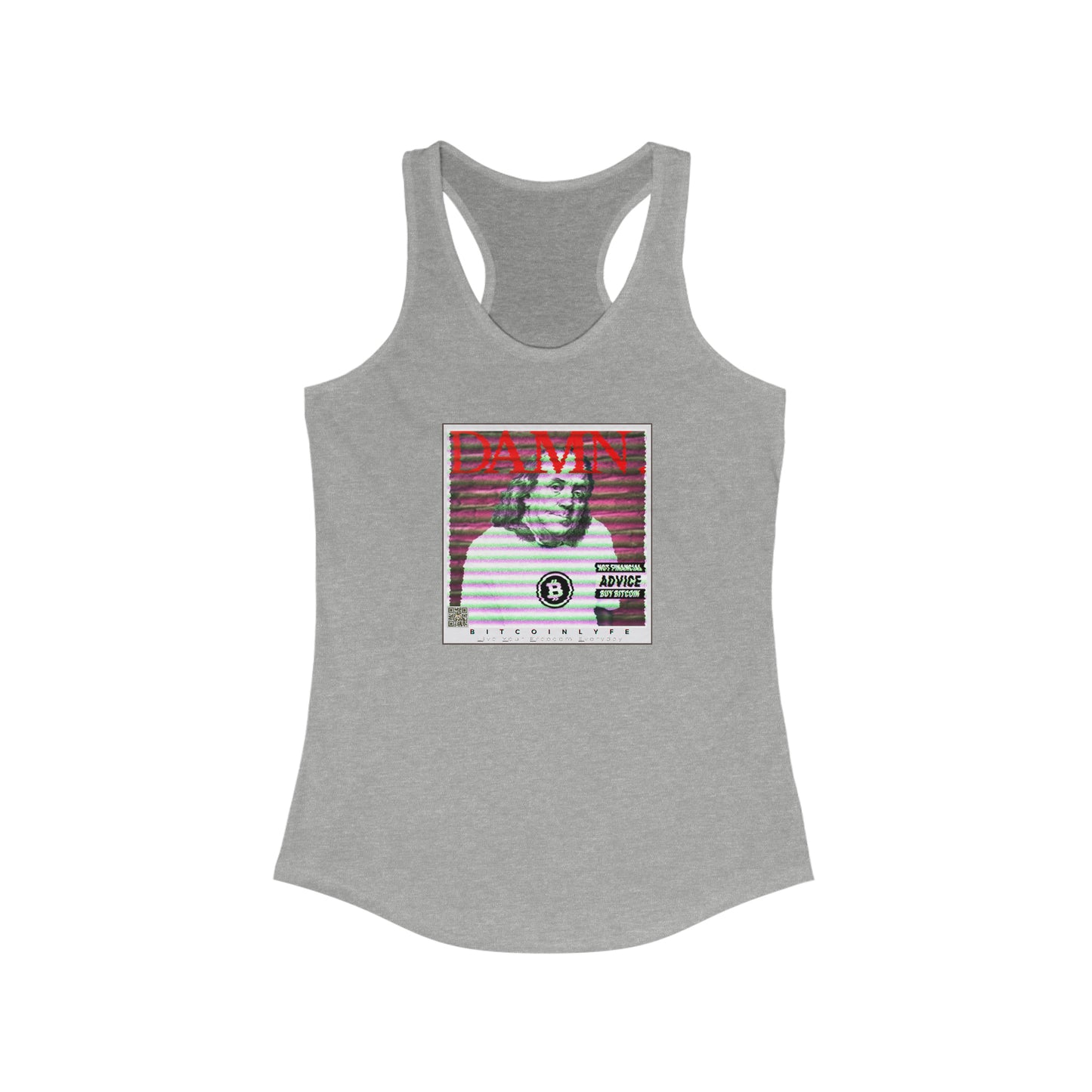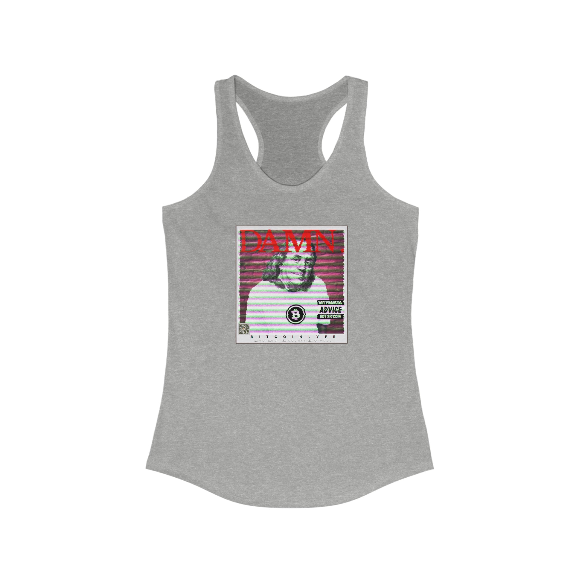 A high-quality print of this slim fit tank-top will turn heads. Bystanders won't be disappointed - the racerback cut looks good on any woman's shoulders.