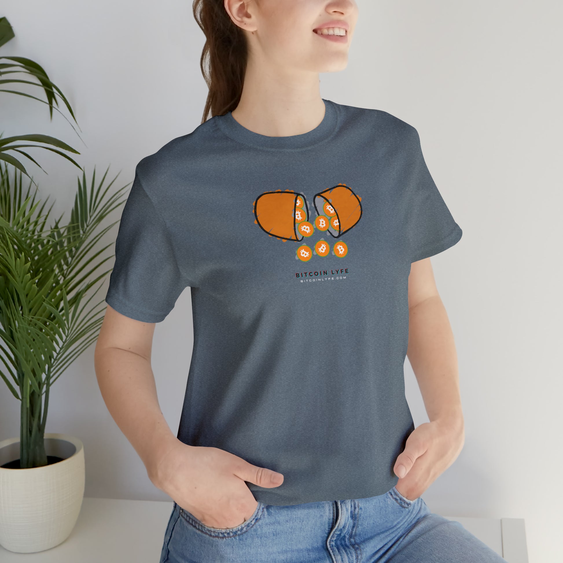 Anyways....this classic unisex jersey short sleeve tee fits like a well-loved favorite. Soft cotton and the evolving orange pill movement will make you fall in love with it over and over again. These t-shirts have-ribbed knit collars to bolster shaping. The shoulders have taping for better fit over time. Dual side seams hold the garment's shape for longer.