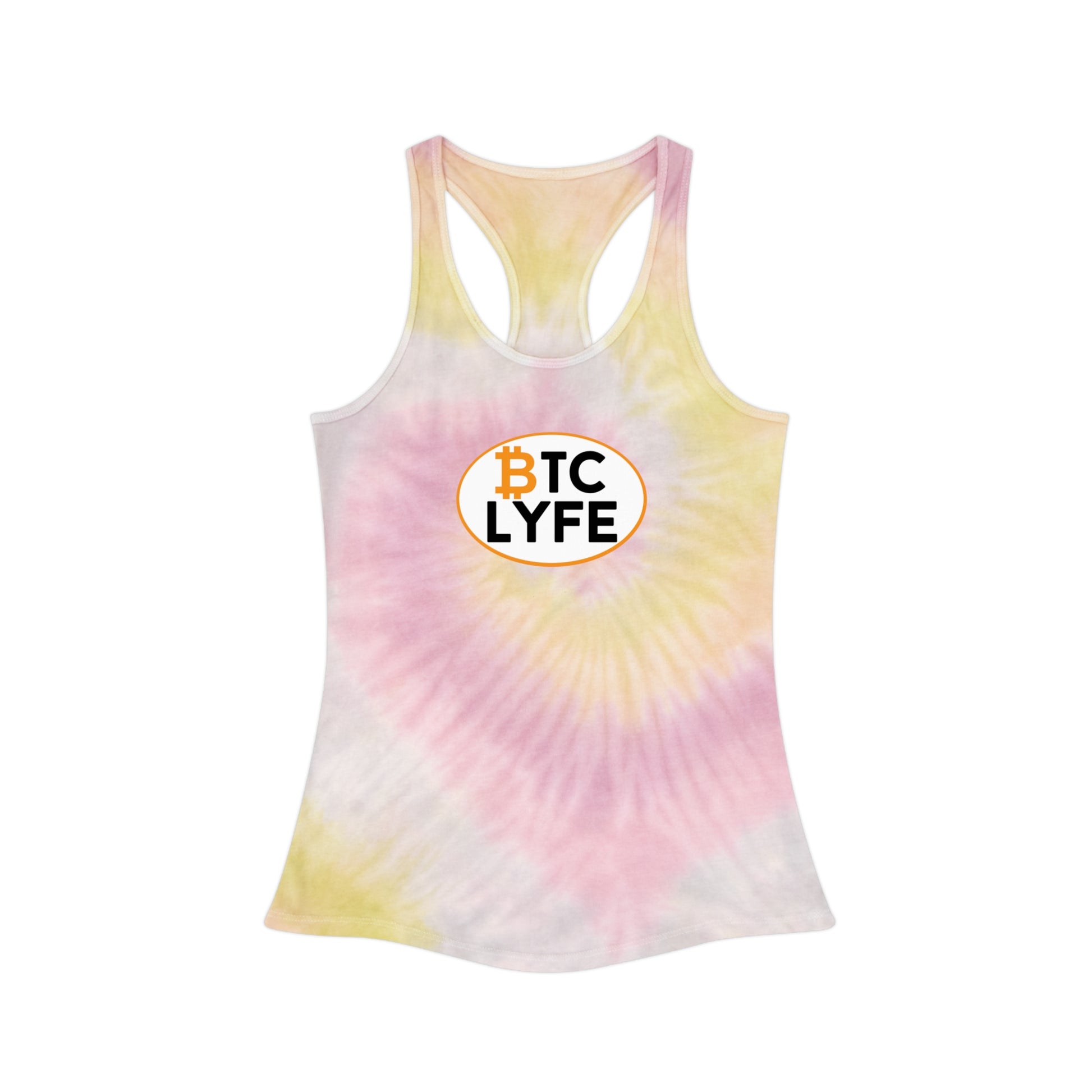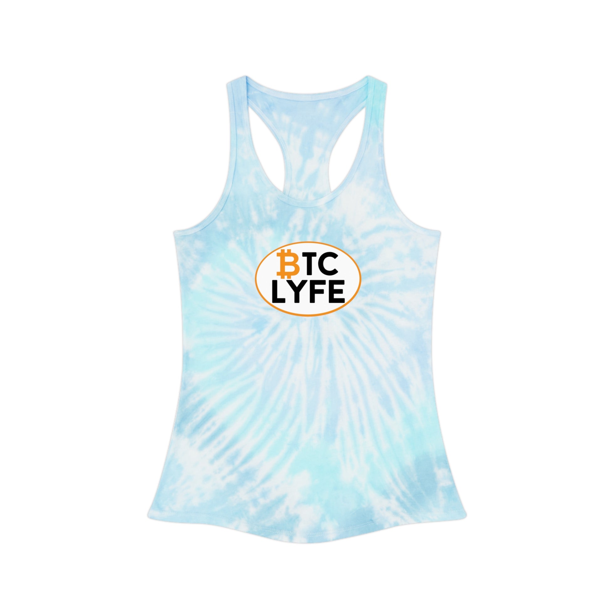 Bitcoin LYFE (Oval) Tie Dye Racerback Tank Top