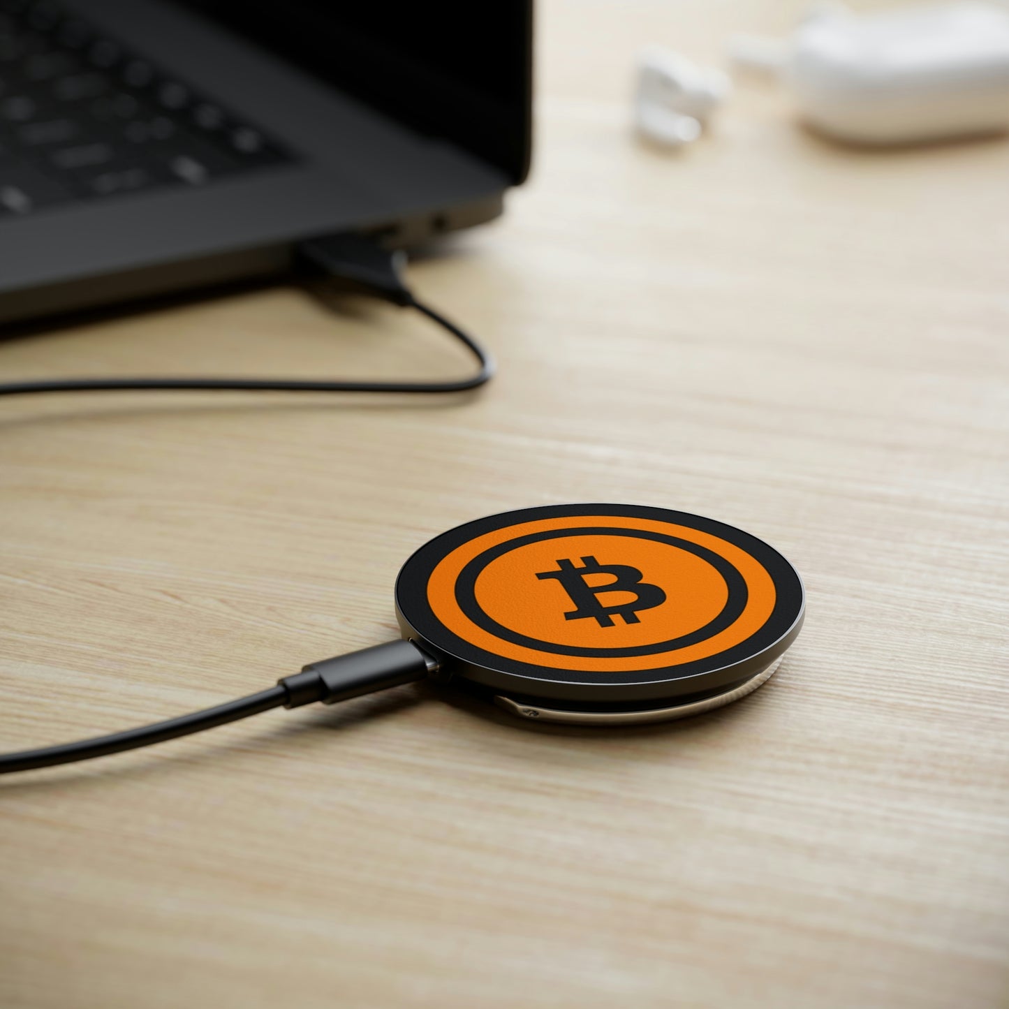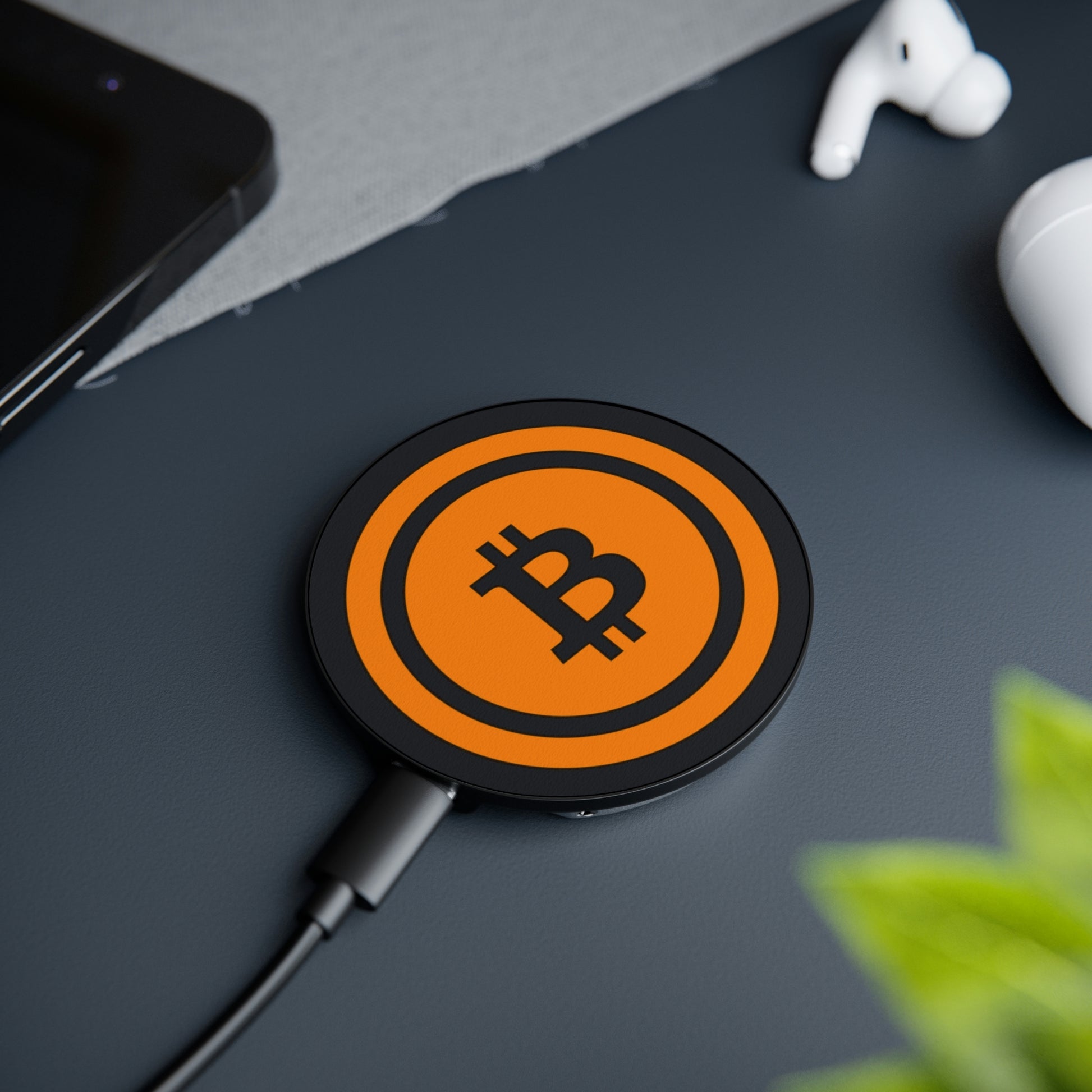 Created to satisfy gadget fans around the world, this Bitcoin wireless charger works universally with all wireless charging-compatible smartphones. With a slick black body, a matte white top, and a silver metal ring, it's a perfect way to subtlety plant a reminder of you conviction for Bitcoin in a tasteful and useful way. Comes with a built-in ring holder, supports Qi wireless charging standard and MagSafe function, and ships with a USB-C cable included.