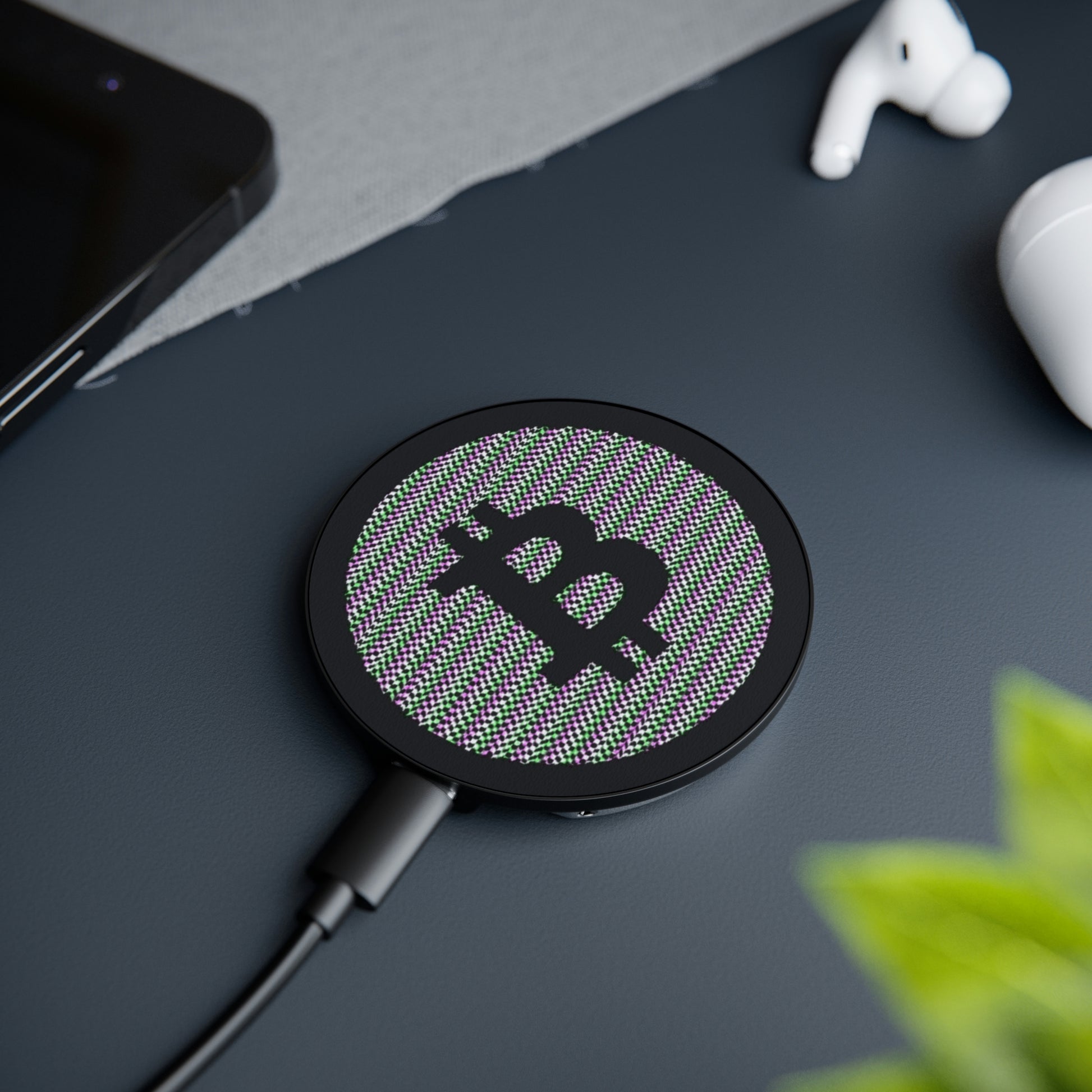 Created to satisfy gadget fans around the world, this Bitcoin wireless charger works universally with all wireless charging-compatible smartphones. With a slick black body, a matte white top, and a silver metal ring, it's a perfect way to subtlety plant a reminder of you conviction for Bitcoin in a tasteful and useful way. Comes with a built-in ring holder, supports Qi wireless charging standard and MagSafe function, and ships with a USB-C cable included.