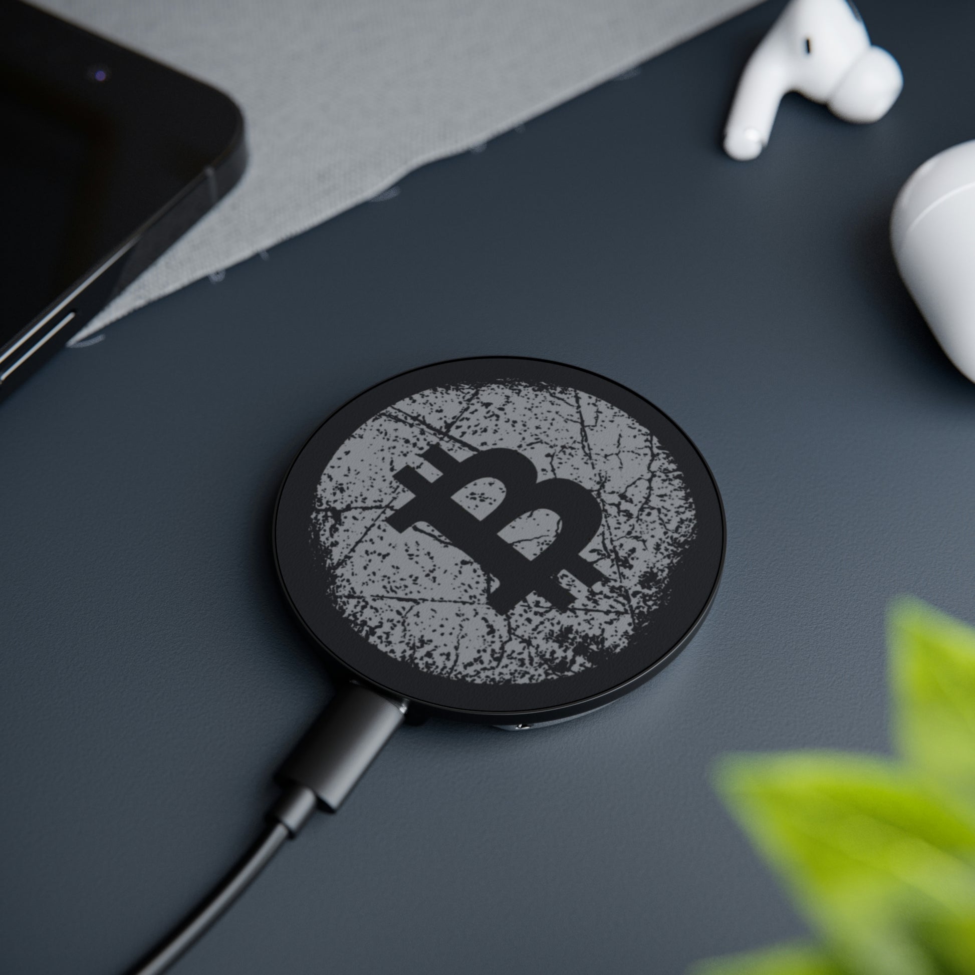 Created to satisfy gadget fans around the world, this Bitcoin wireless charger works universally with all wireless charging-compatible smartphones. With a slick black body, a matte white top, and a silver metal ring, it's a perfect way to subtlety plant a reminder of you conviction for Bitcoin in a tasteful and useful way. Comes with a built-in ring holder, supports Qi wireless charging standard and MagSafe function, and ships with a USB-C cable included.