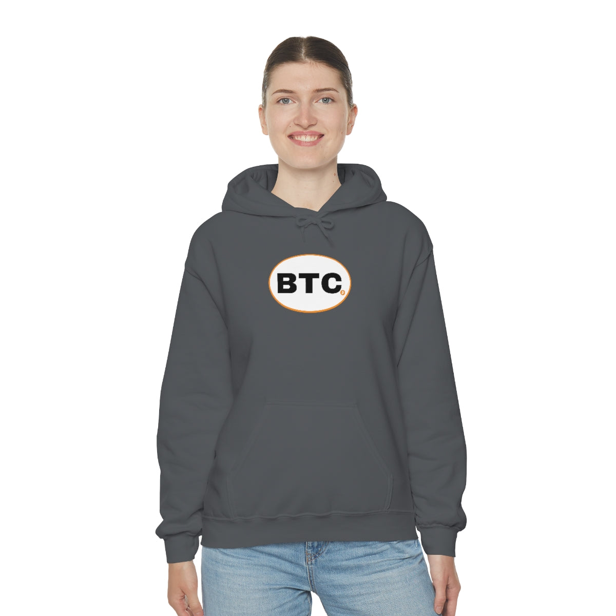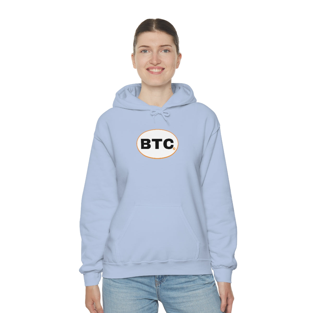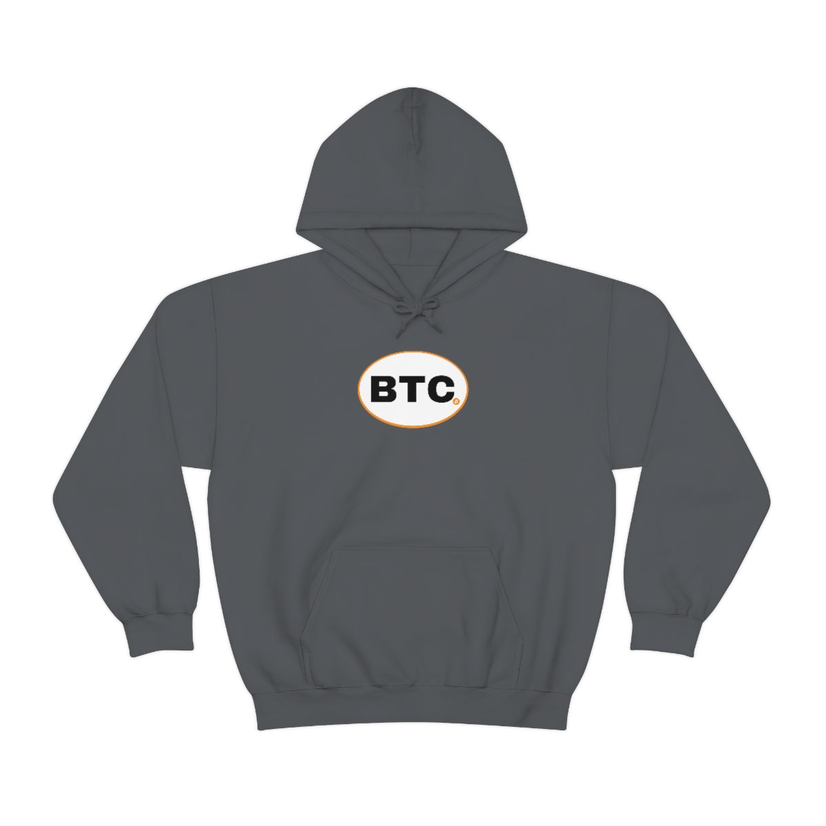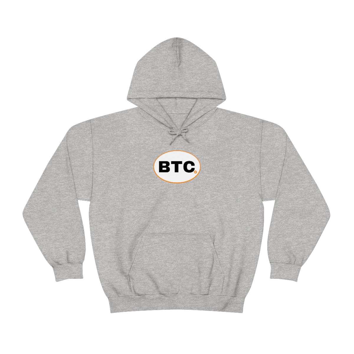 Show your pride in Bitcoin with this awesome hoodie with BTC logo inspired by the European country code decals. This unisex heavy blend hooded sweatshirt is relaxation itself. Made with a thick blend of cotton and polyester, it feels plush, soft and warm, a perfect choice for any cold day. In the front, the spacious kangaroo pocket adds daily practicality while the hood's drawstring is the same color as the base sweater for extra style points.