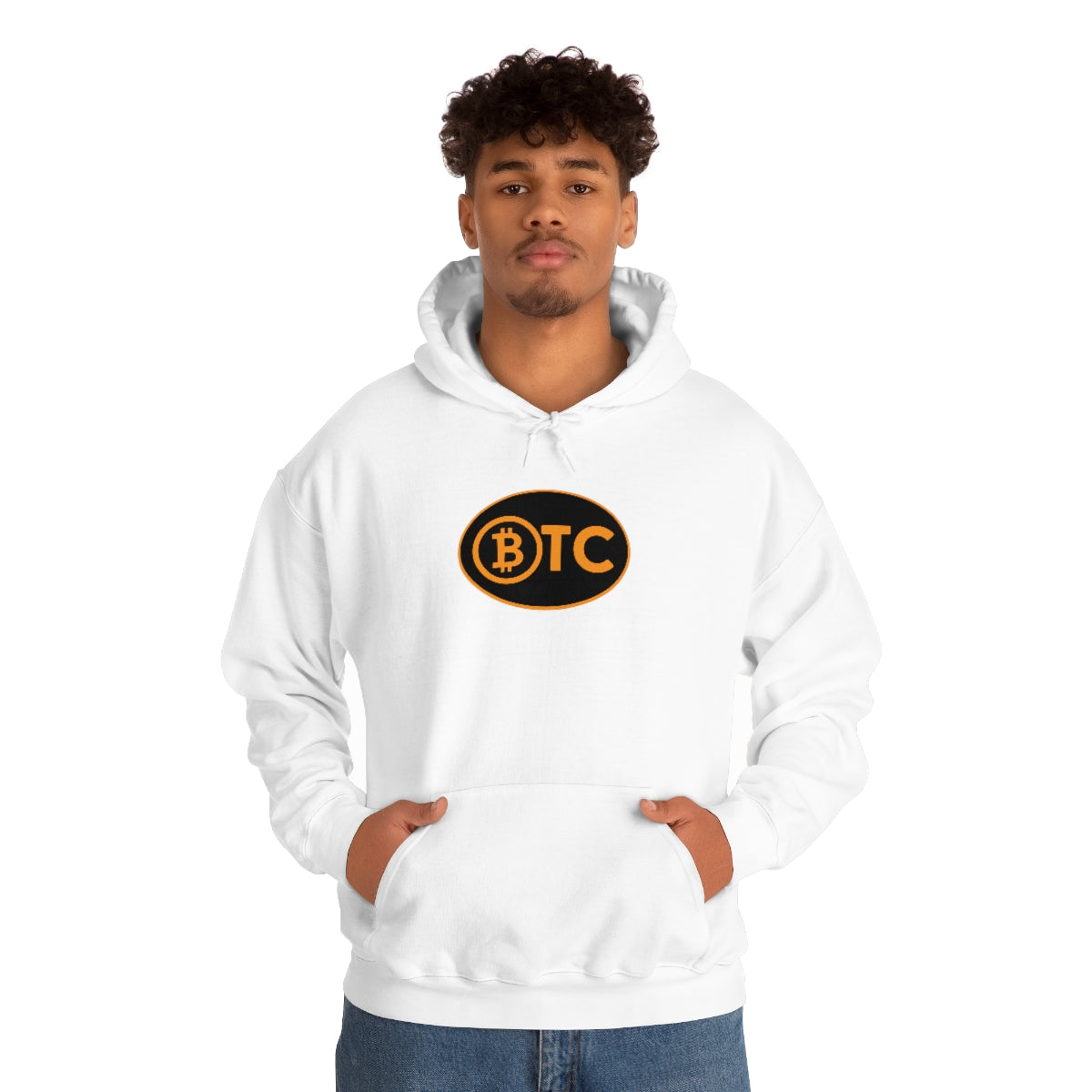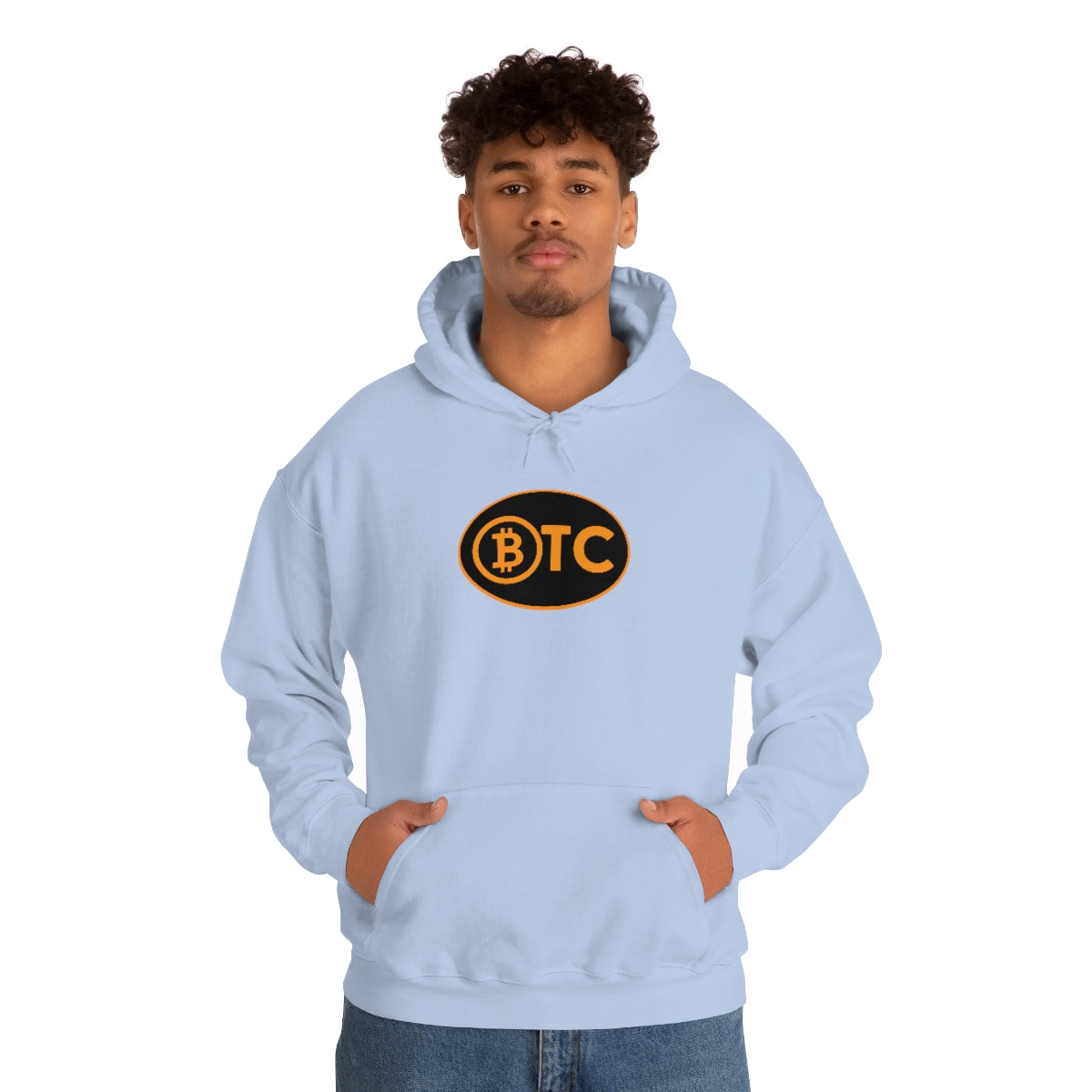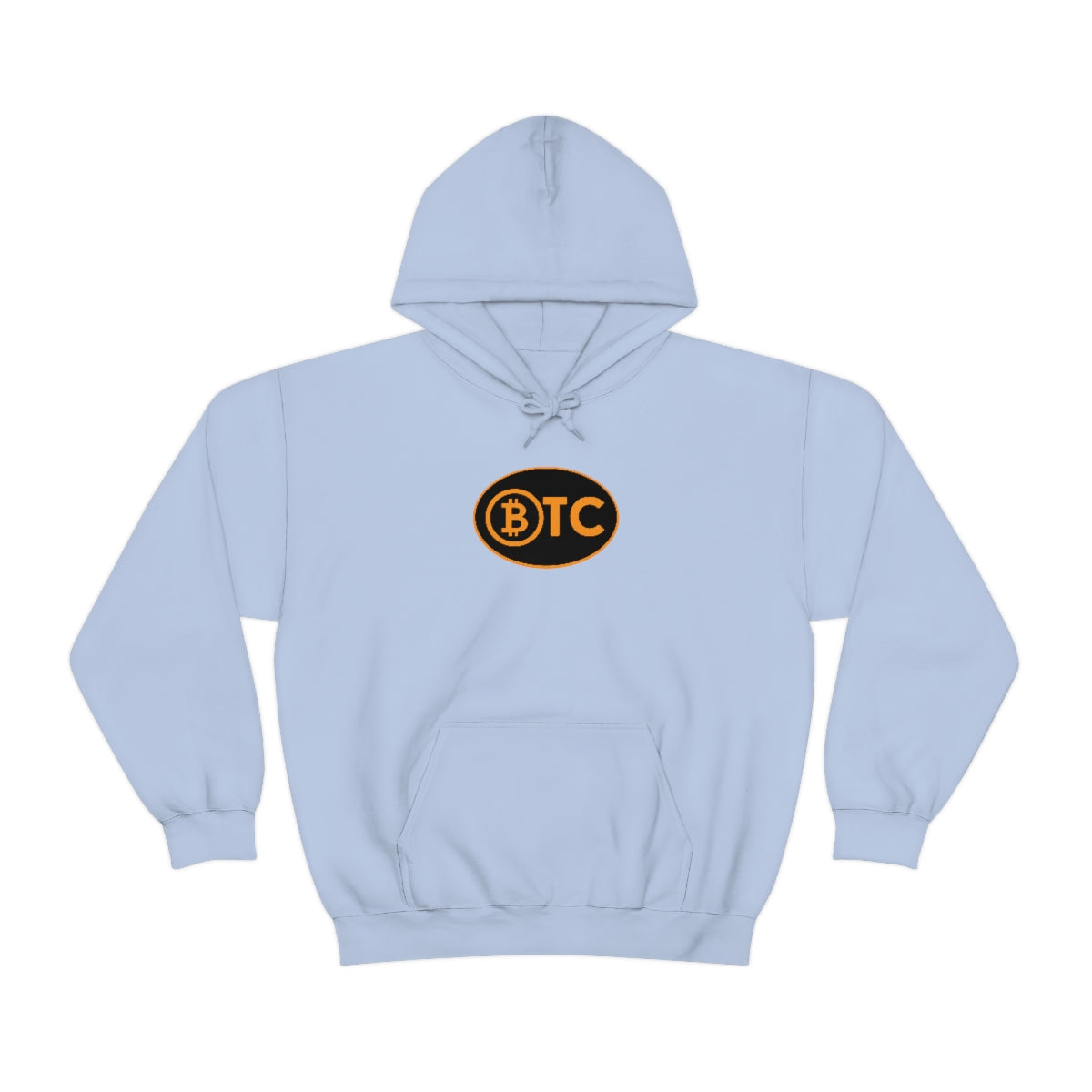 Show your pride in Bitcoin with this awesome hoodie with BTC logo inspired by the European country code decals. This unisex heavy blend hooded sweatshirt is relaxation itself. Made with a thick blend of cotton and polyester, it feels plush, soft and warm, a perfect choice for any cold day. In the front, the spacious kangaroo pocket adds daily practicality while the hood's drawstring is the same color as the base sweater for extra style points.